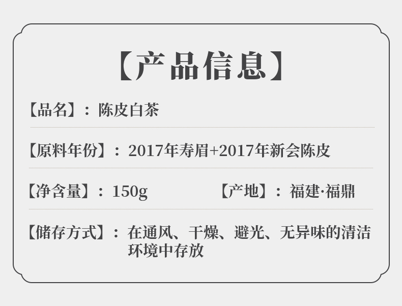 鼎茗荟丨2017年陈皮白茶 新会陈皮+福鼎白茶 小圆片 150g(5g*30片) 滋味协调,果香醇甜