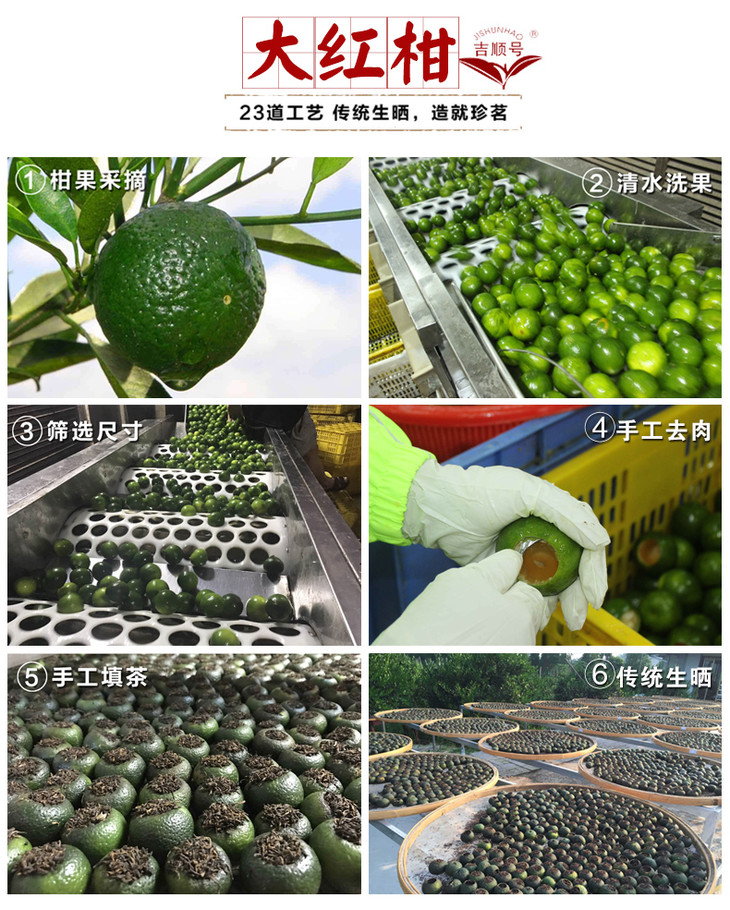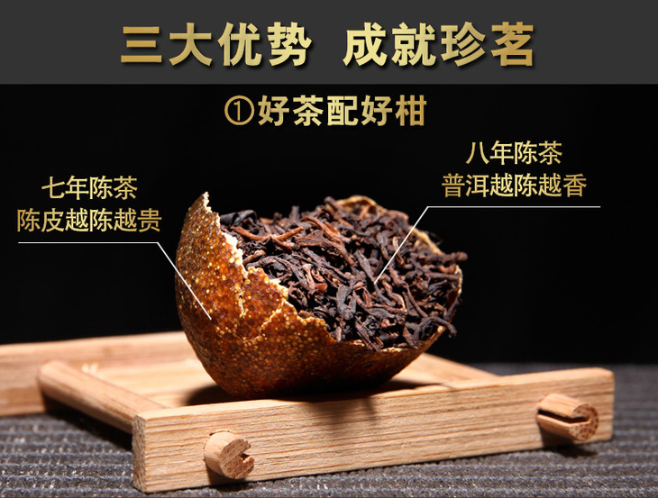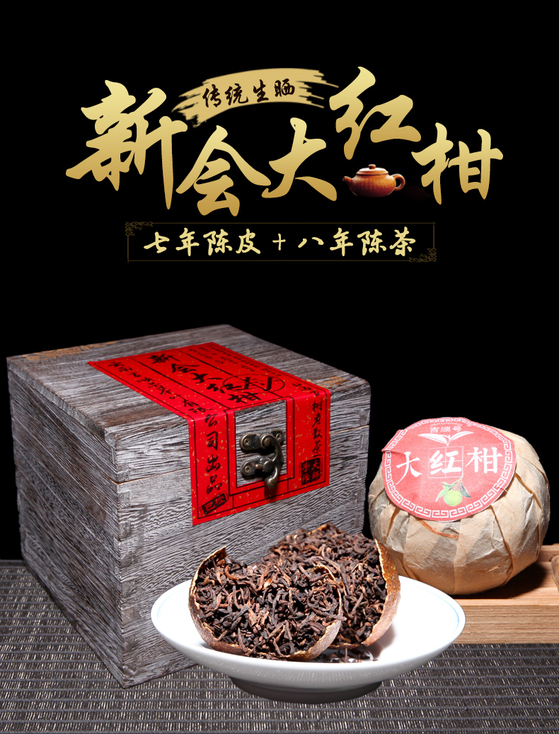 【柑普茶】吉顺号 新会天马大红柑 普洱宫廷散茶 七年陈皮橘普茶一品大红柑450g 木箱装