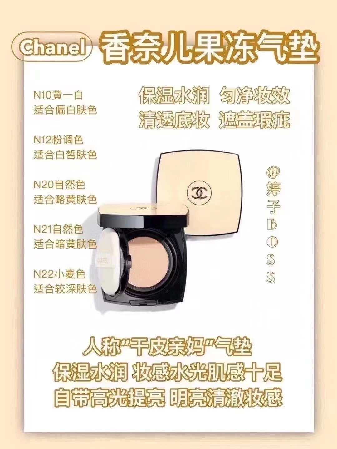 正装香奶奶果冻气垫~自然妆容就是她~一款自带磨皮滤镜的气垫,轻薄水润到不行~简直就是感觉像涂了水粉霜~清淡的山茶花香,干皮和油皮用起来都毫无压力!