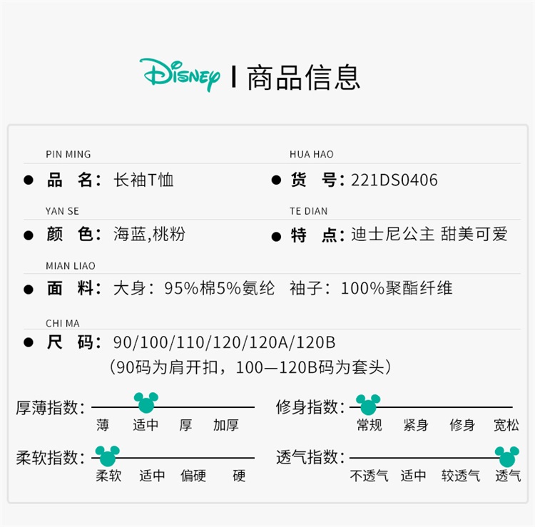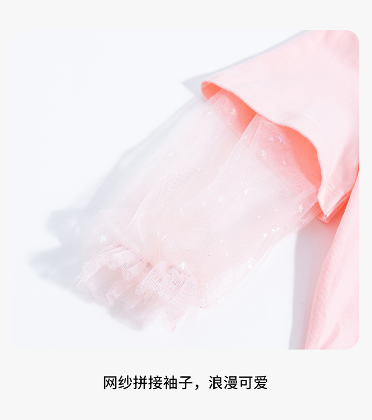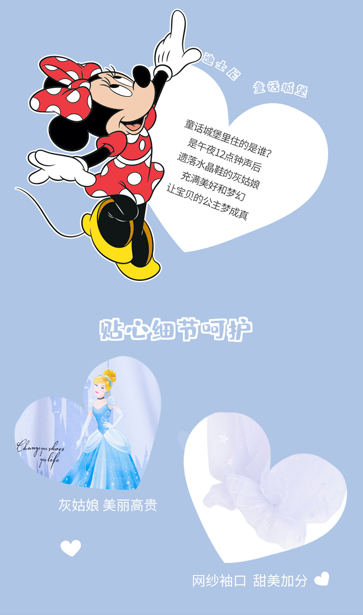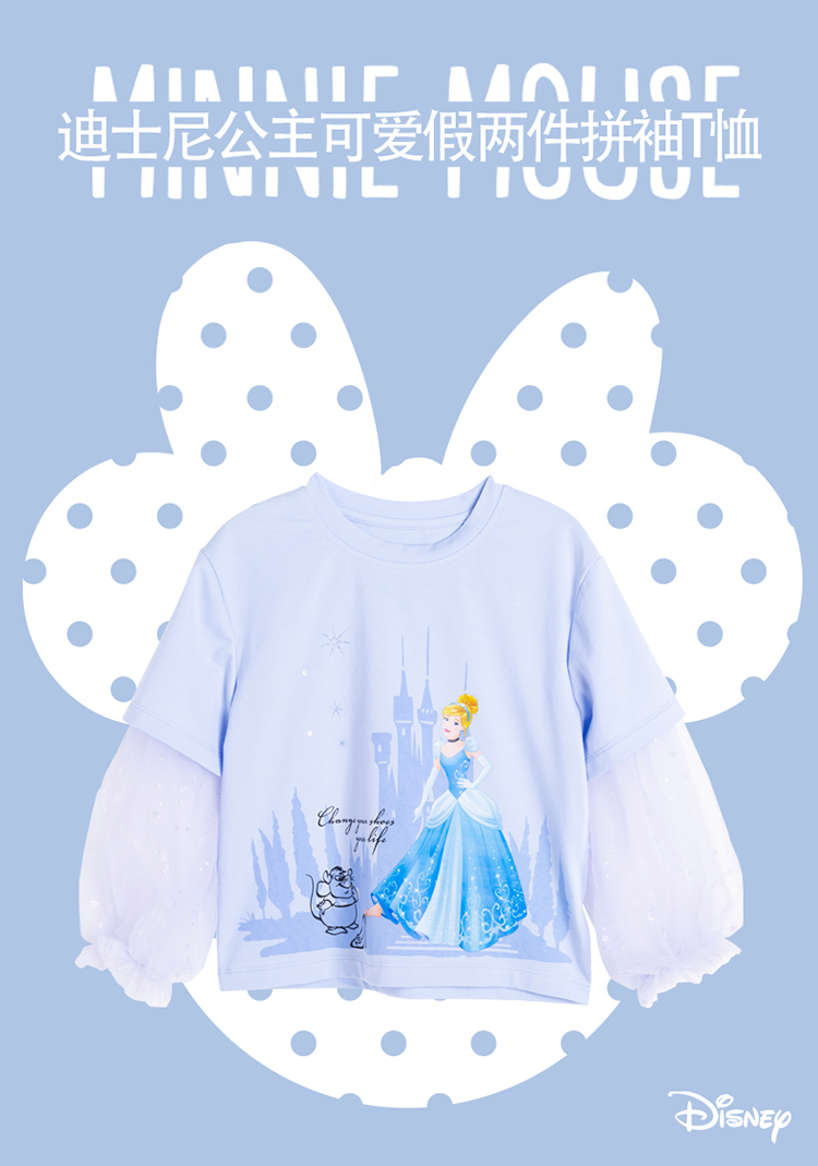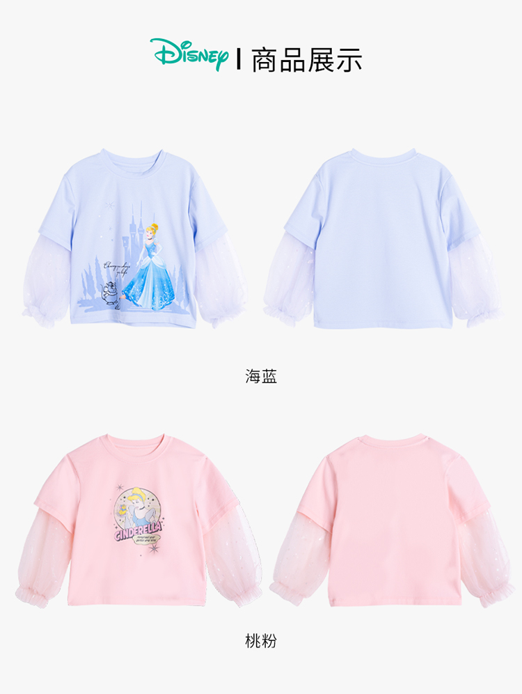 【商场同款】迪士尼童装女童长袖T恤假两件春秋网纱拼接袖子中小童灰姑娘上衣221DS0406