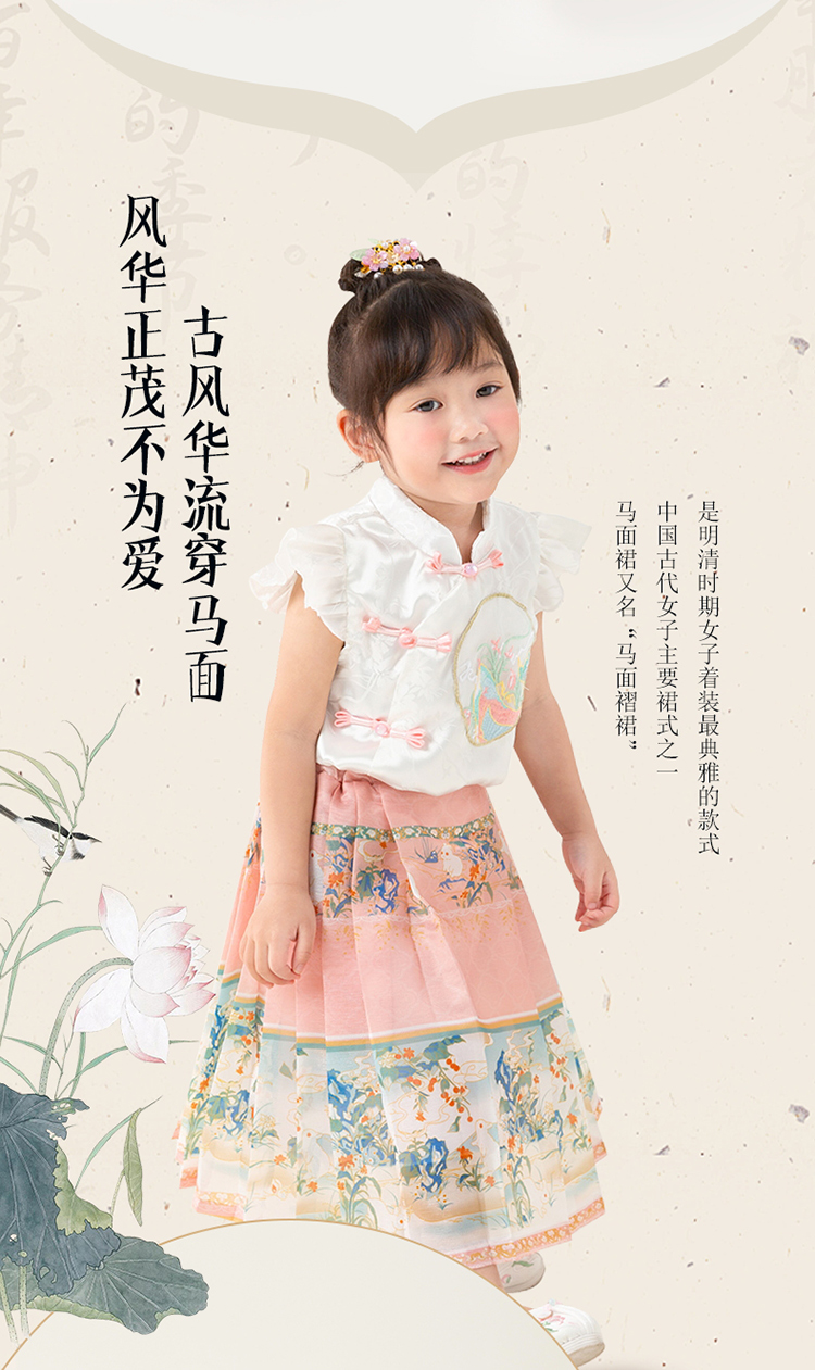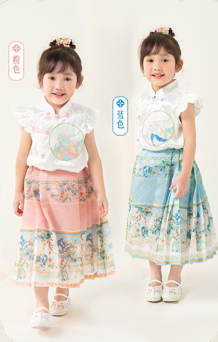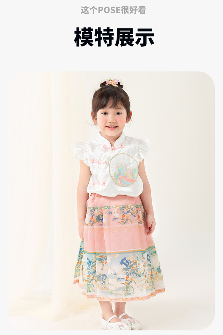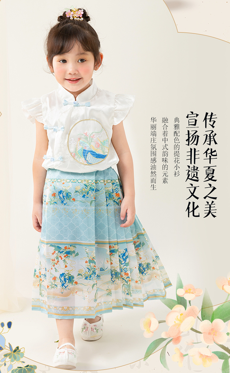 贝贝怡女童夏季马面裙套装2024儿童国风汉服新中式夏装两件套童装