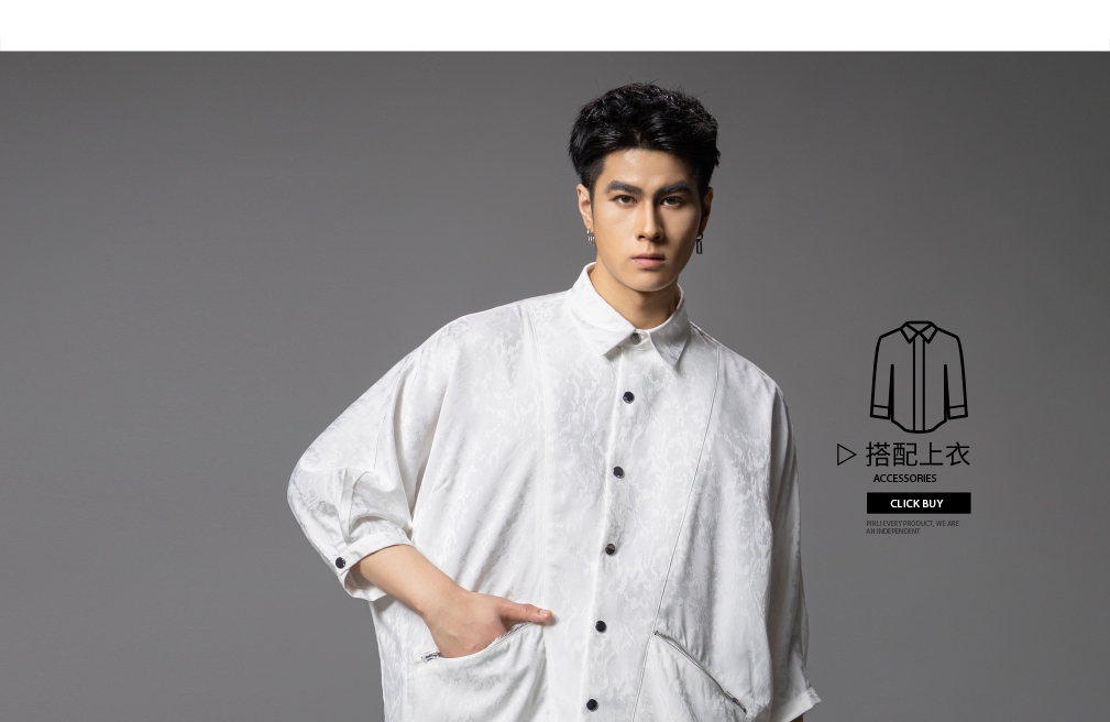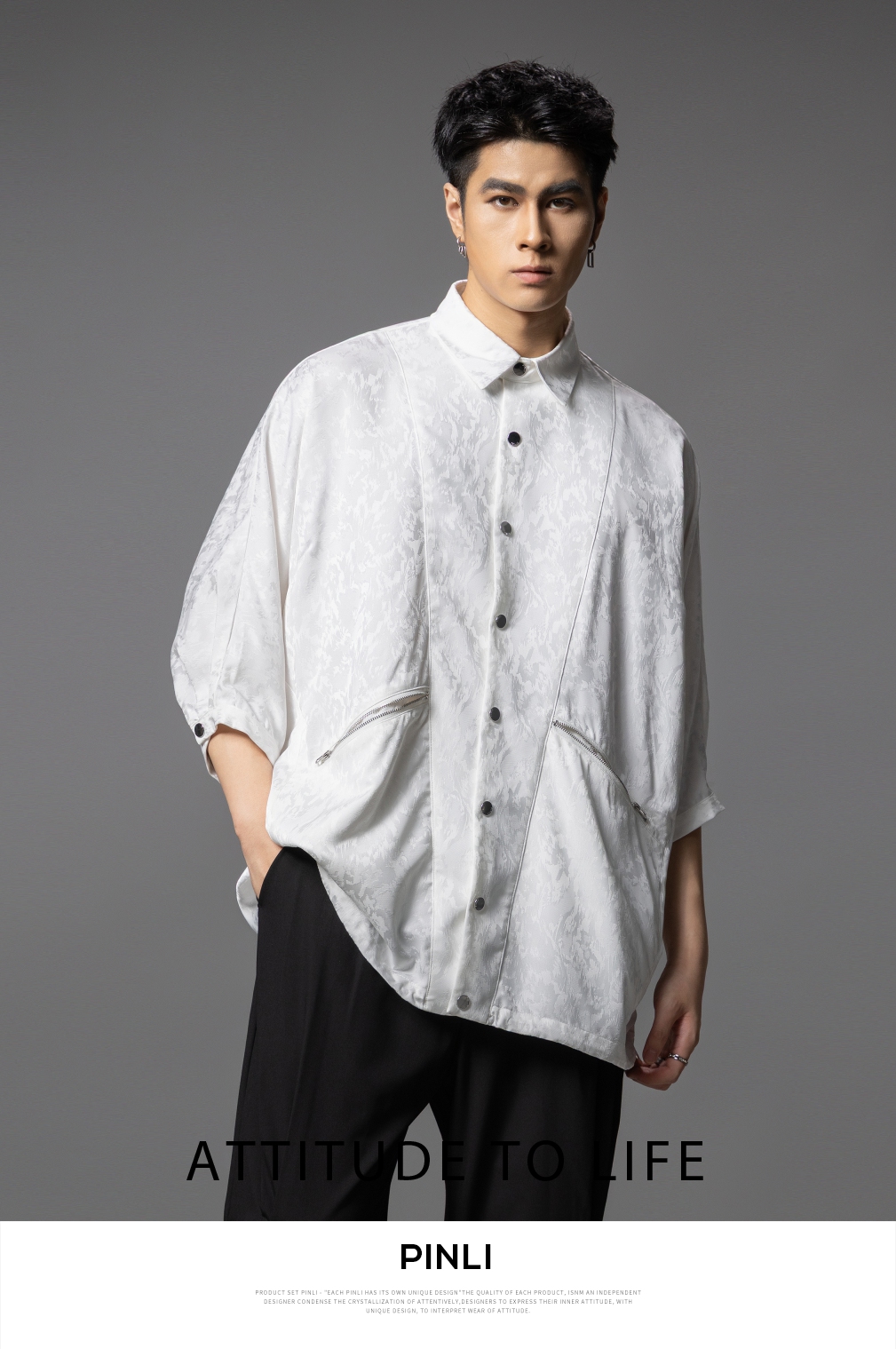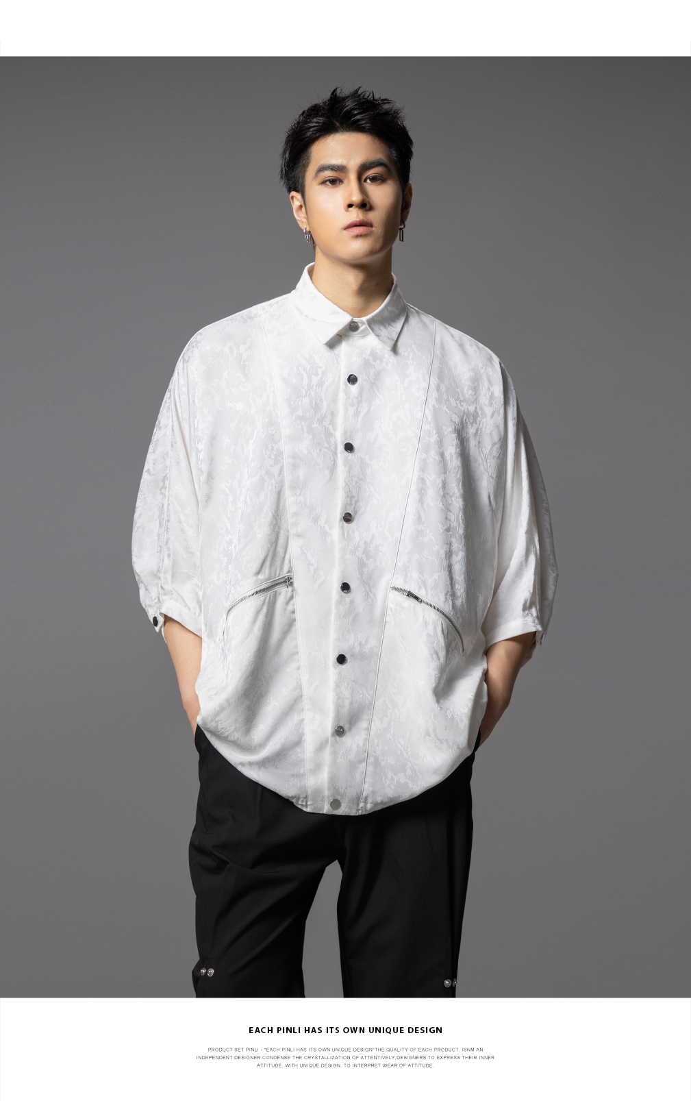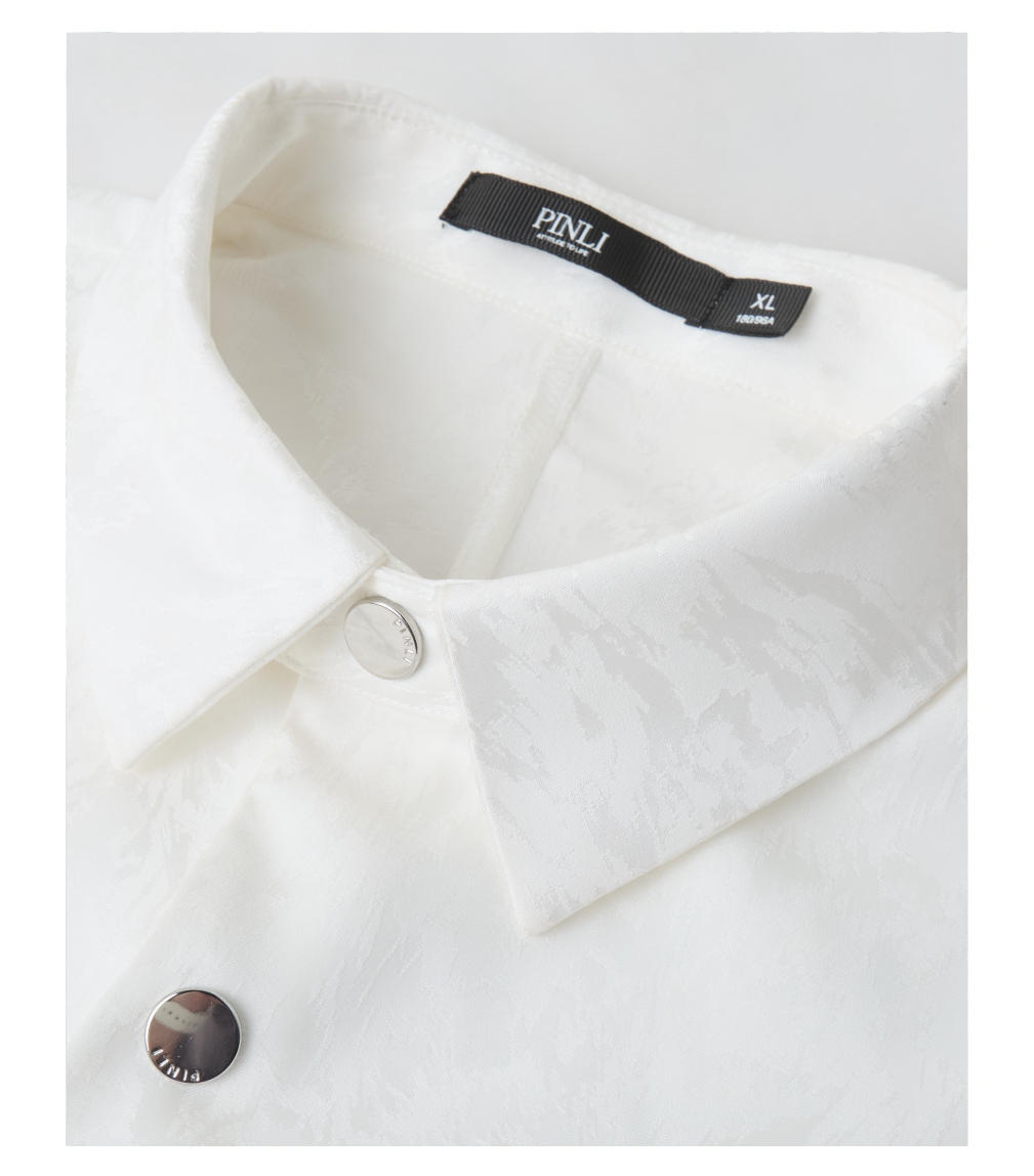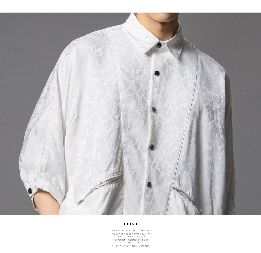 PINLI品立春季新款宽松五分袖衬衣提花蝙蝠袖潮牌男中袖衬衫B253113002