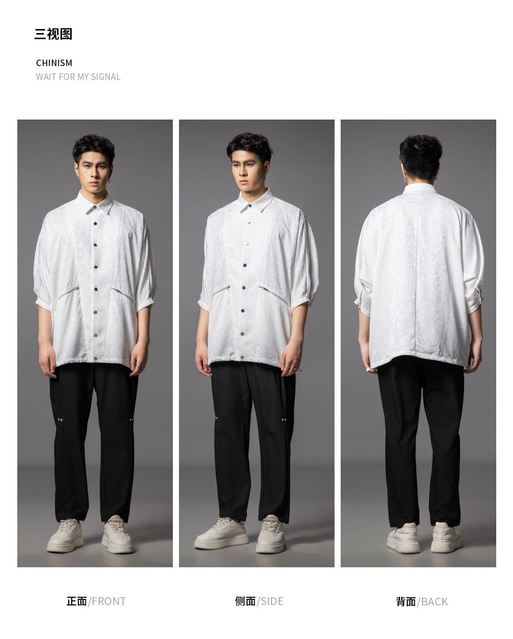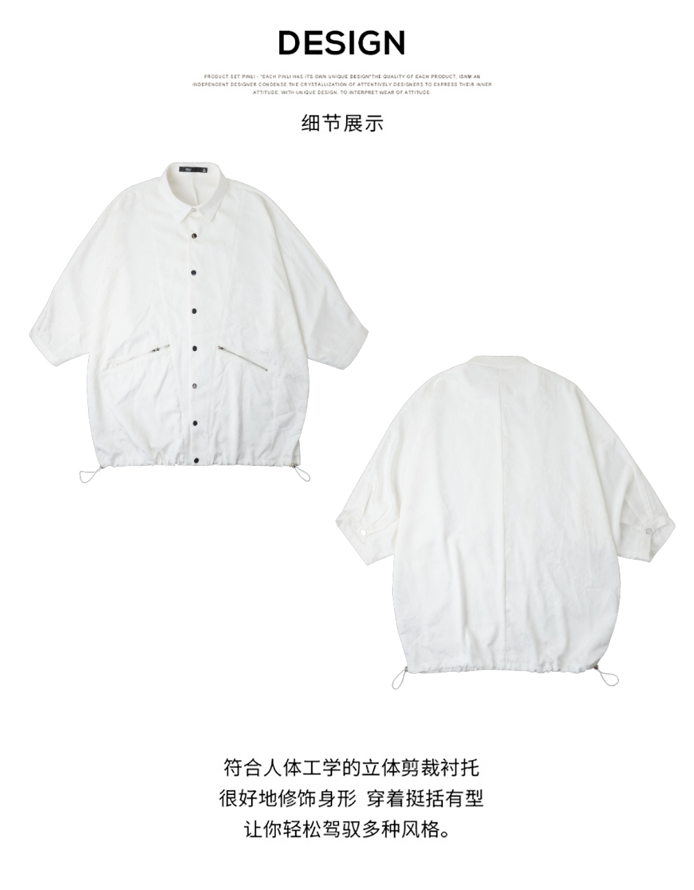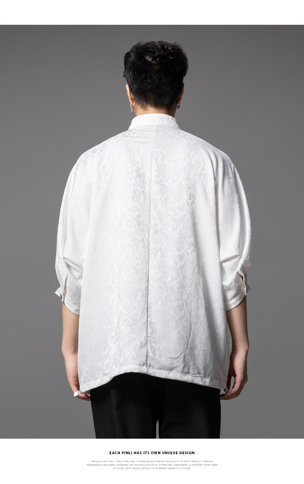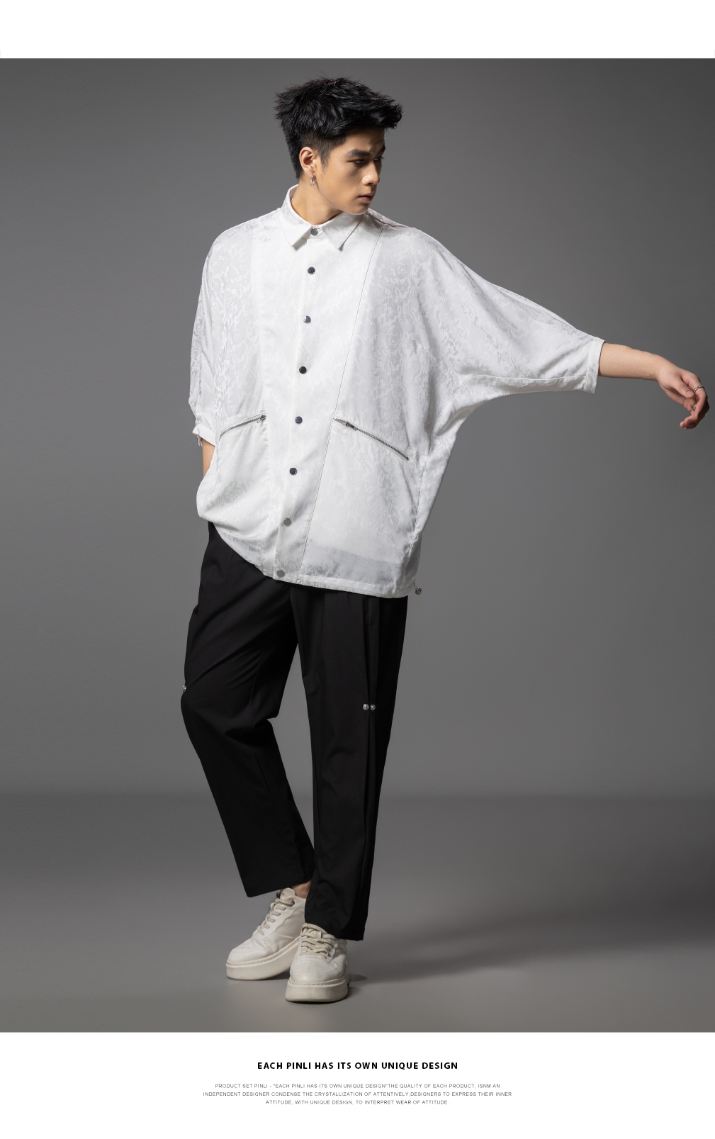 PINLI品立春季新款宽松五分袖衬衣提花蝙蝠袖潮牌男中袖衬衫B253113002