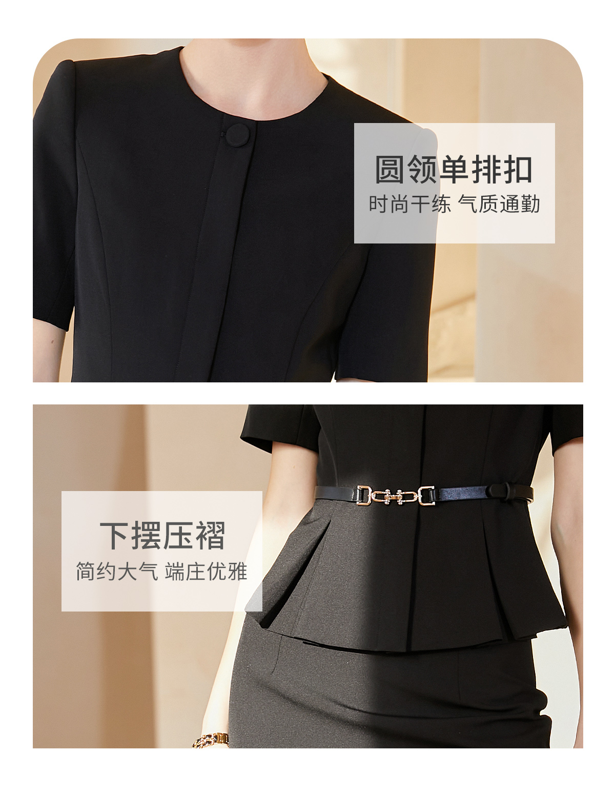 AD韩版名媛范套装女时尚气质两件套黑色正装高级感职业装工作服夏