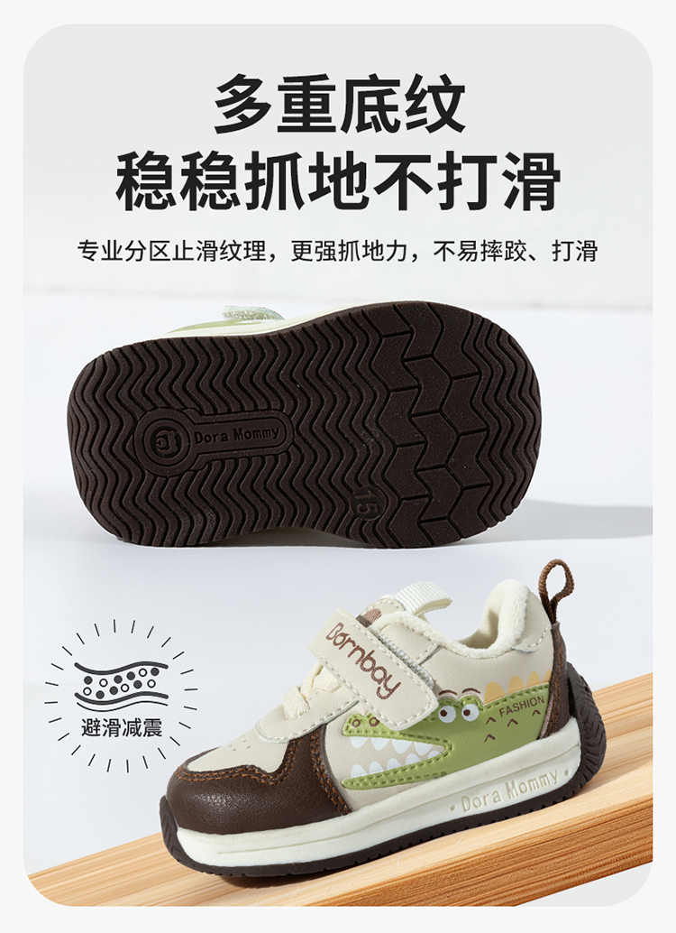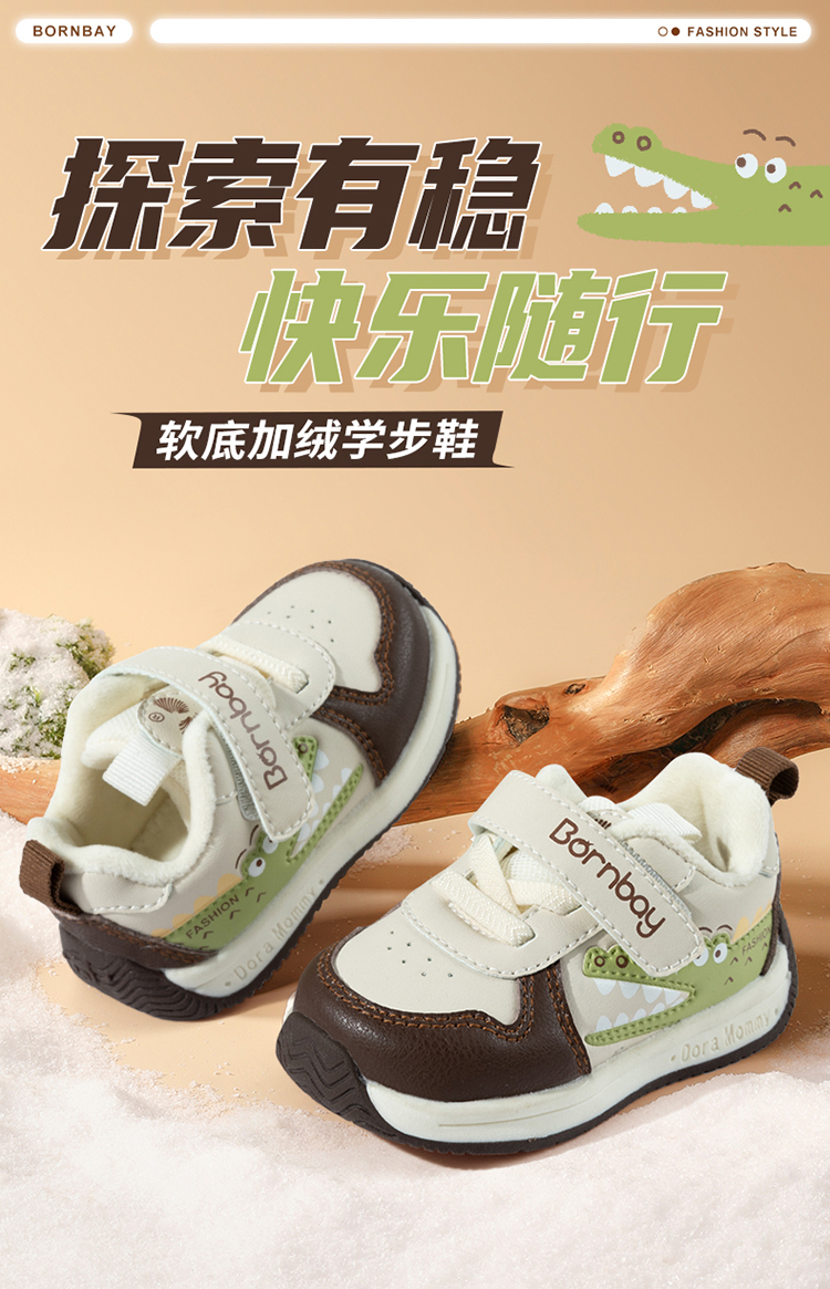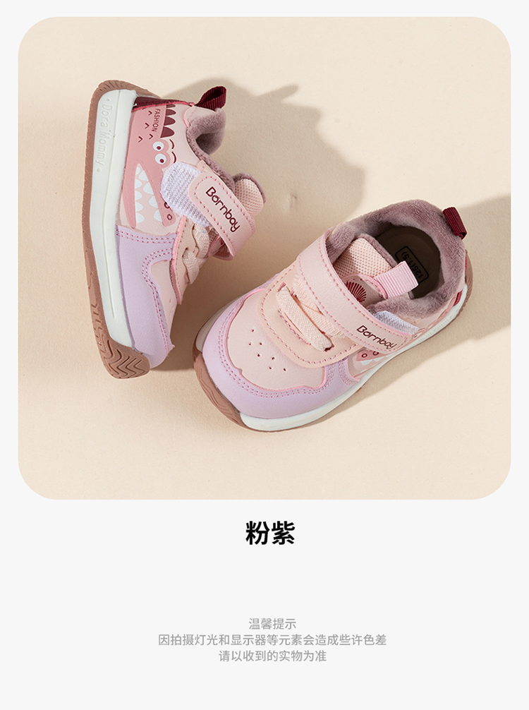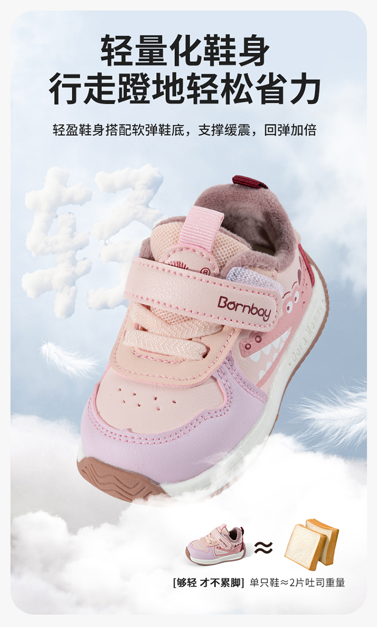 贝贝怡25冬季新款男女童鞋儿童加绒学步鞋魔术贴运动鞋跑步鞋ZB4EX019