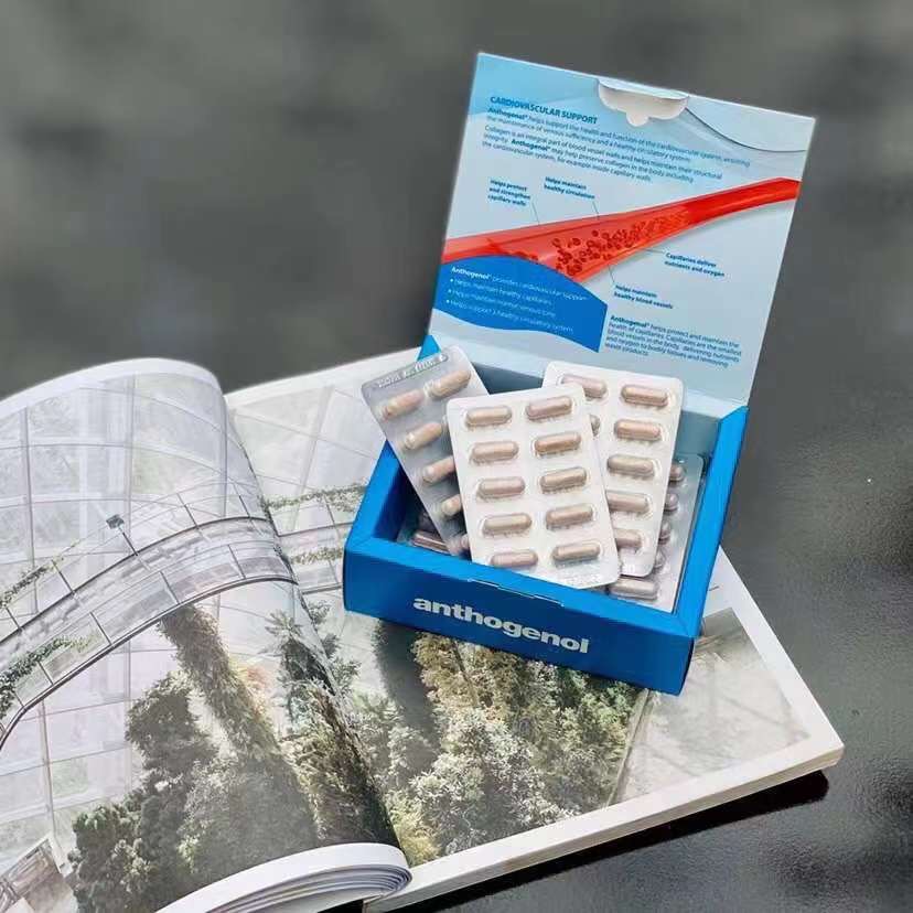 Anthogenol高浓度花青素胶囊属于全食营养草本膳食补充剂,富含专利浓缩技术萃取的葡萄籽精华,激发身体天生的运动细胞,提高活力及耐力。有助于肌肤的抗氧化性。能防止胶原和弹性蛋白的分解,刺激胶原蛋白的合成,支持健康的头发和指甲。能减退老年斑,减少腿部疼痛,沉重感症状,肿胀诸如静脉曲张;还能保护眼睛的视网膜,为眼睛健康提供营养支持。