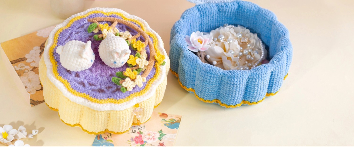 苏苏姐家月饼收纳盒手工diy毛线编织材料包冰条线自制钩针小物预