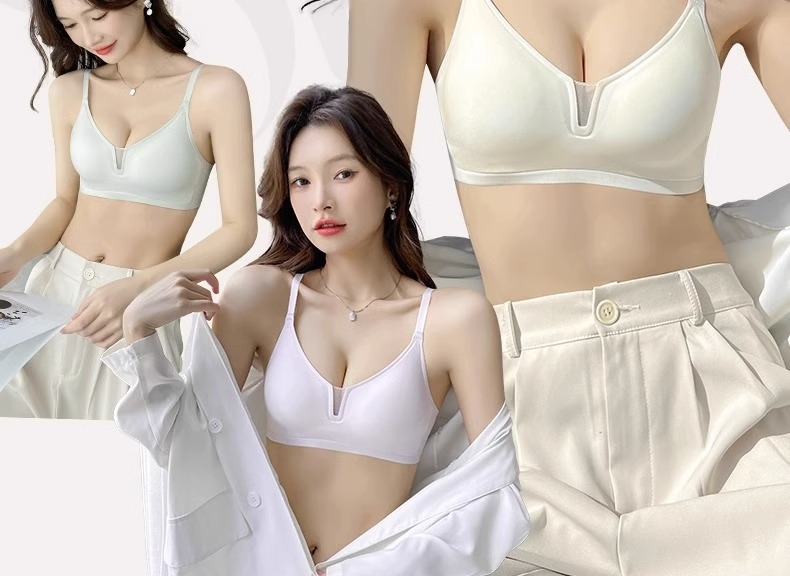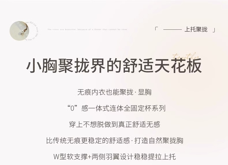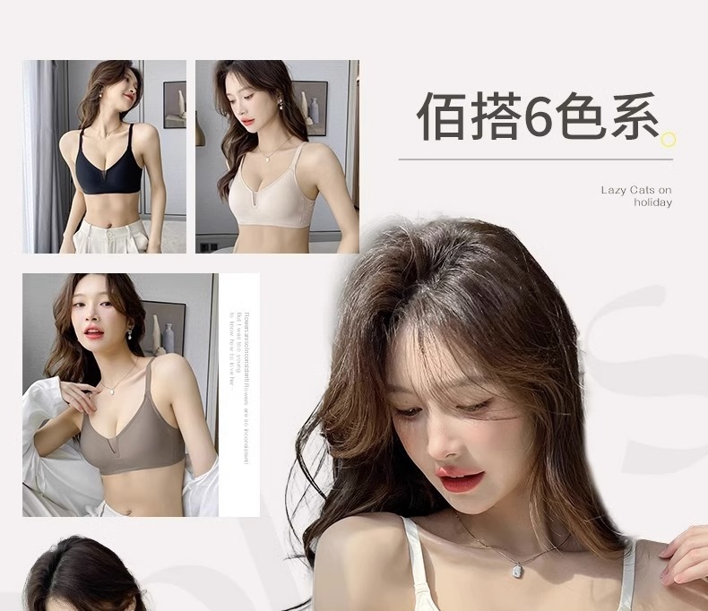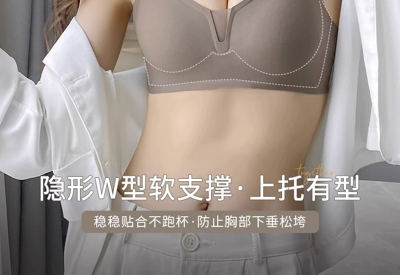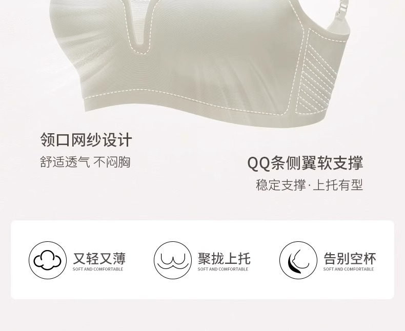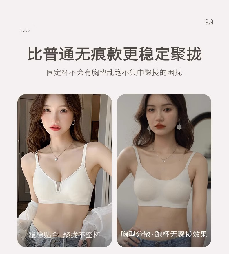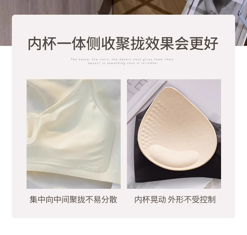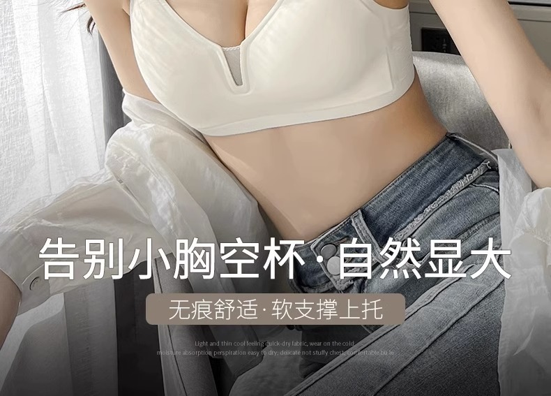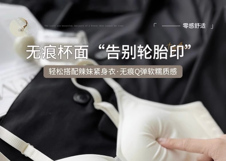 【一体式0感无痕舒适!内衣女小胸聚拢】柔软舒适。无钢圈,果冻条设计,上托胸型,防止下垂。无痕内衣女小胸聚拢收副乳文胸罩