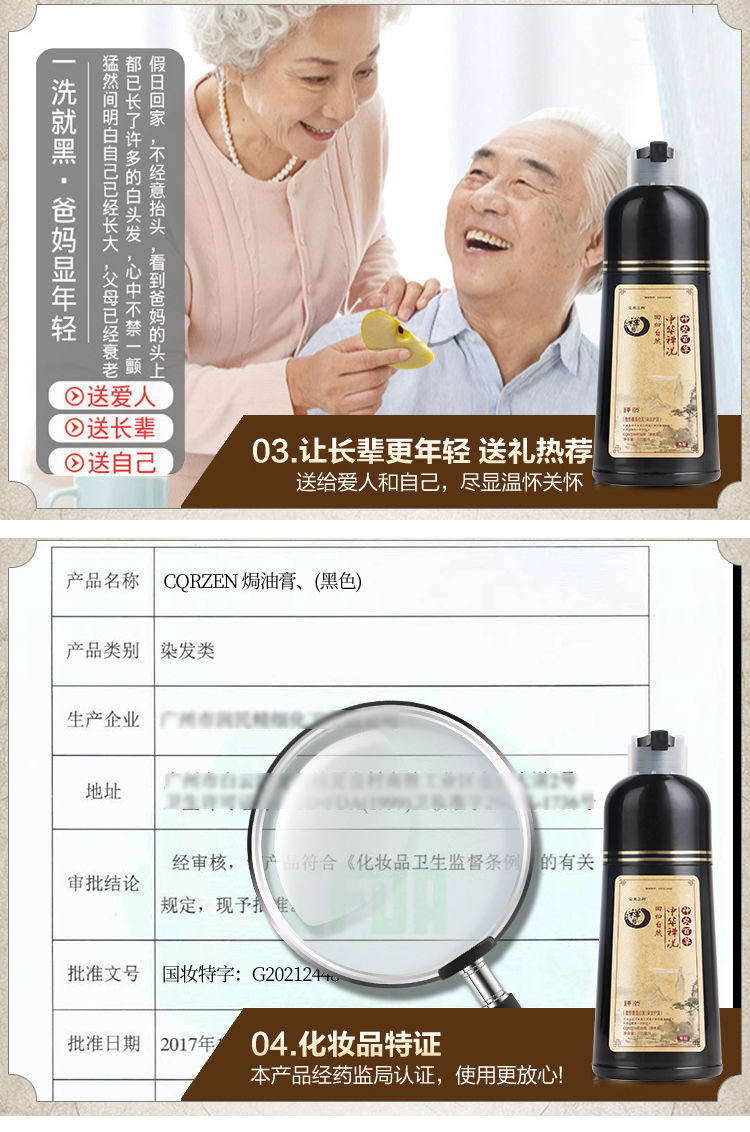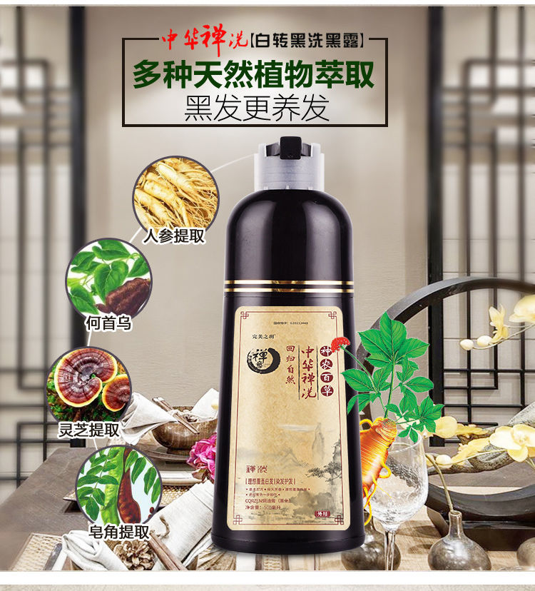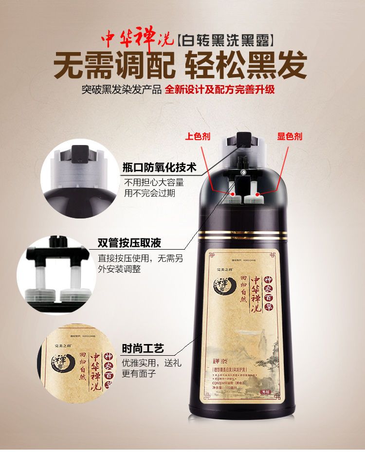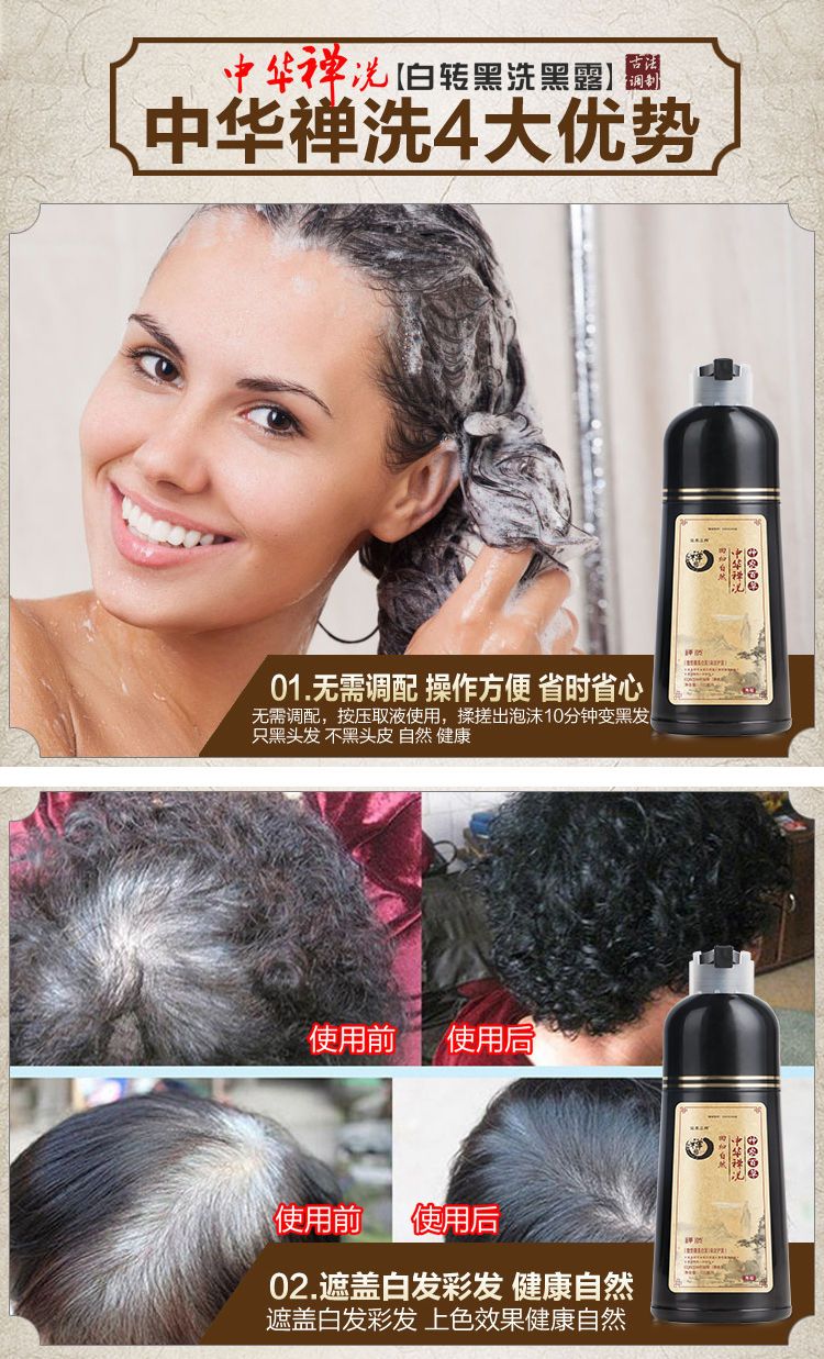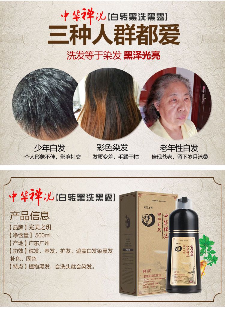 【洗发=染发!中华禅洗植物染发膏】多种天然植物萃取,不沾头皮,洗发、染发、护发、养发四效合一!一揉一搓,白发变黑发!中老年人白转黑洗黑露健康一支黑,自己在家染发剂