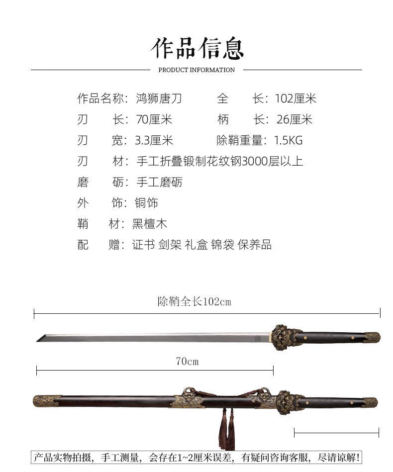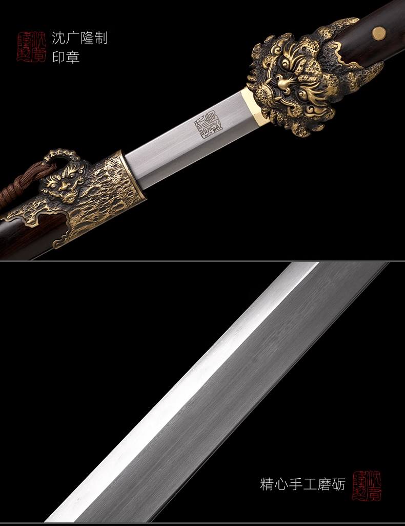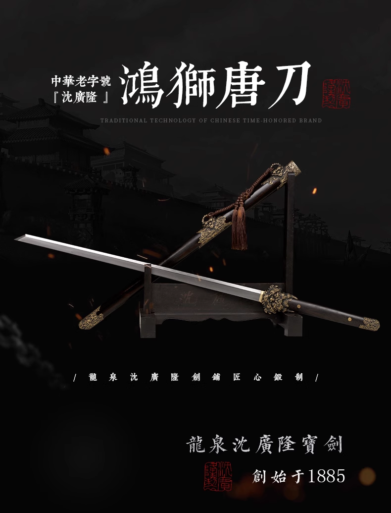 鸿狮唐横刀剑传统宝剑 汉唐宝剑 龙泉沈广隆宝剑 花纹钢 未开刃
