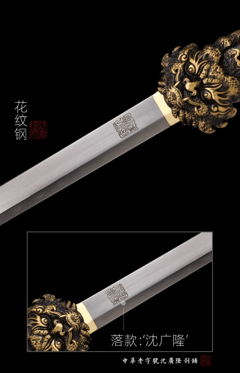 傲龙汉剑 大汉剑 唐剑 龙泉沈广隆宝剑 花纹钢汉剑传统剑 工艺品 未开刃