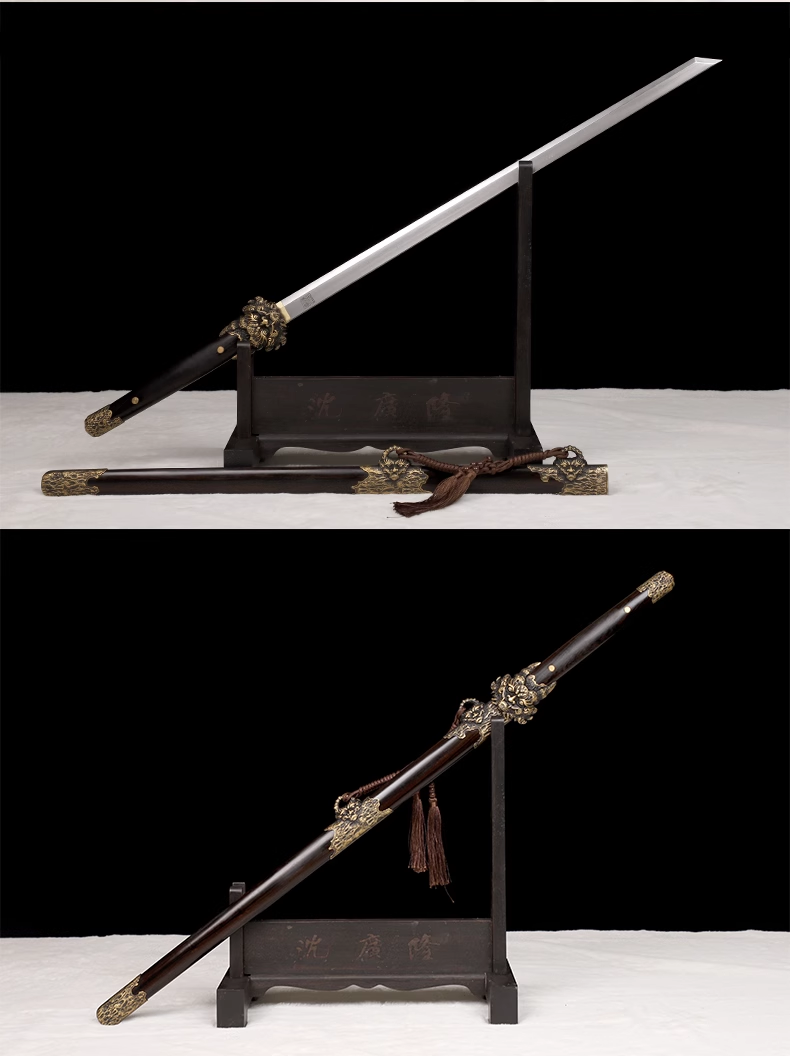 将军剑 手工短剑 龙泉传统剑 收藏品 沈广隆中式短剑中正剑花纹钢 工艺品 未开刃