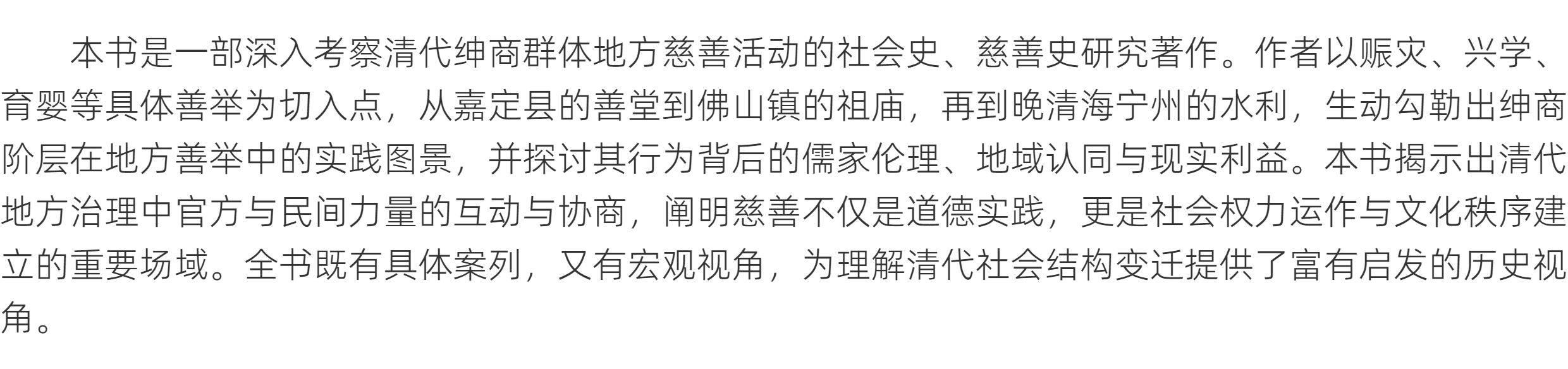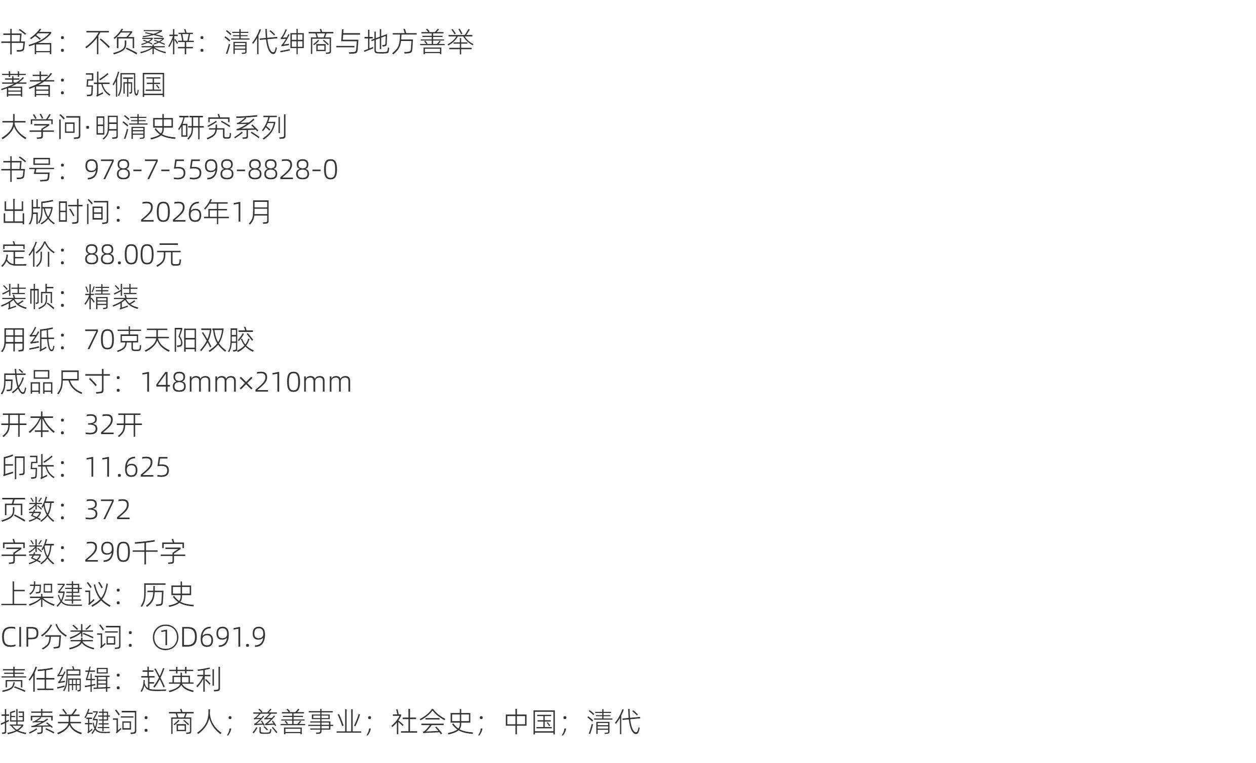 大学问 明清史研究系列 不负桑梓:清代绅商与地方善举 张佩国/著 商人;慈善事业;社会史;中国