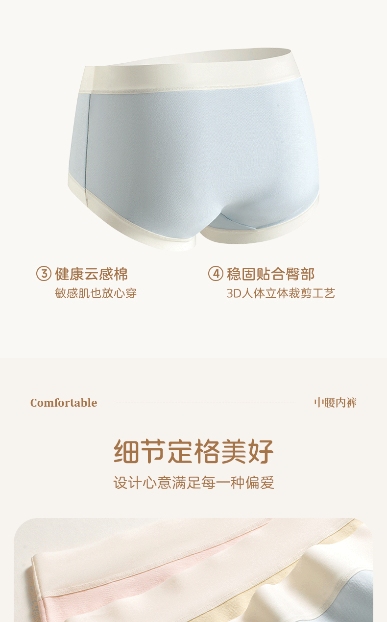 【39.9元4条】轻存7A抑菌云感棉女士内裤