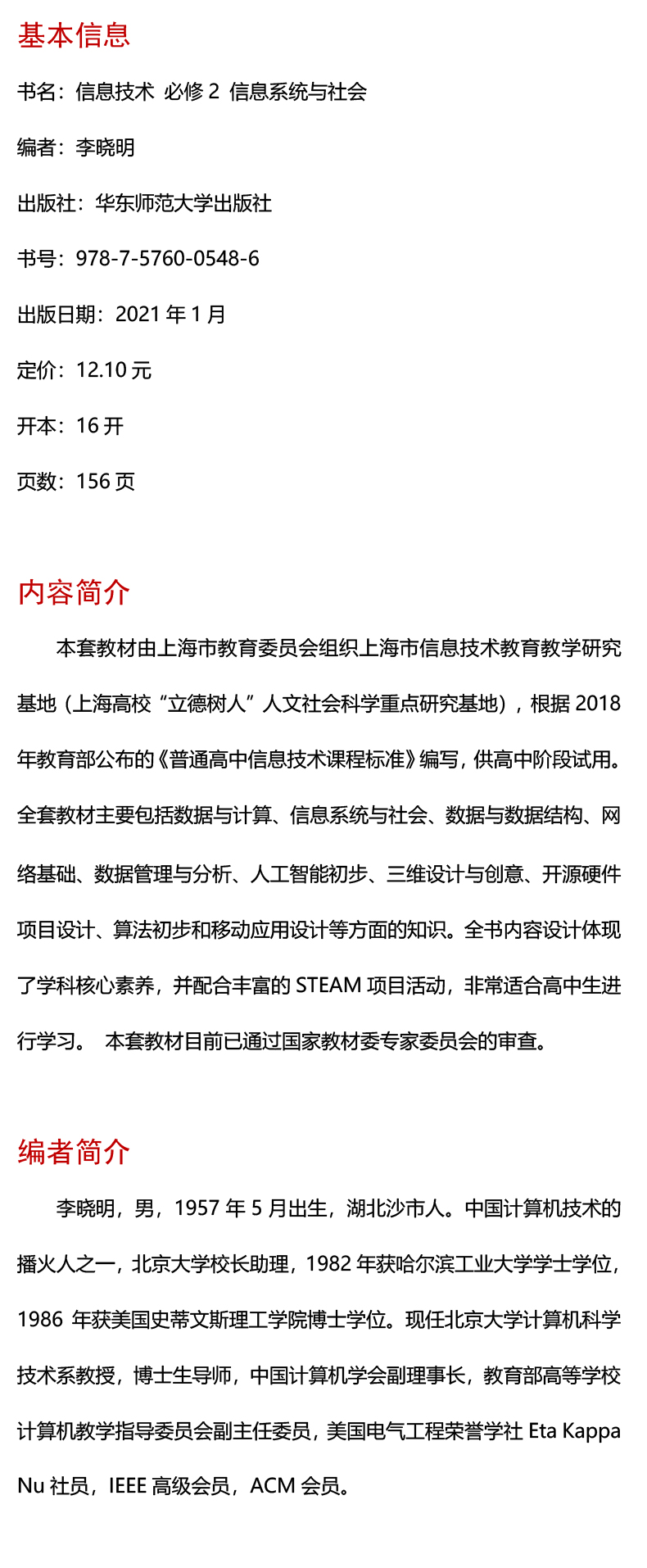 信息技术 必修2 信息系统与社会 普通高中教科书 正版 华东师范大学出版社