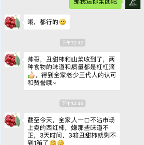 一年后积累了一批铁粉,其中有很多孕产妇和宝妈。她们非常需要安全又好吃的西红柿用于自己减肥和宝宝的辅食。