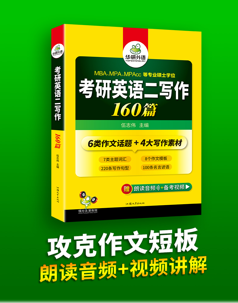 1.考研英语二写作160个易考话题分类写作训练,均提供精品范文和译文;