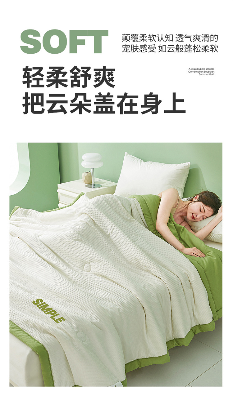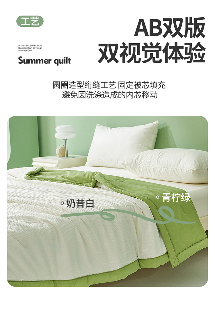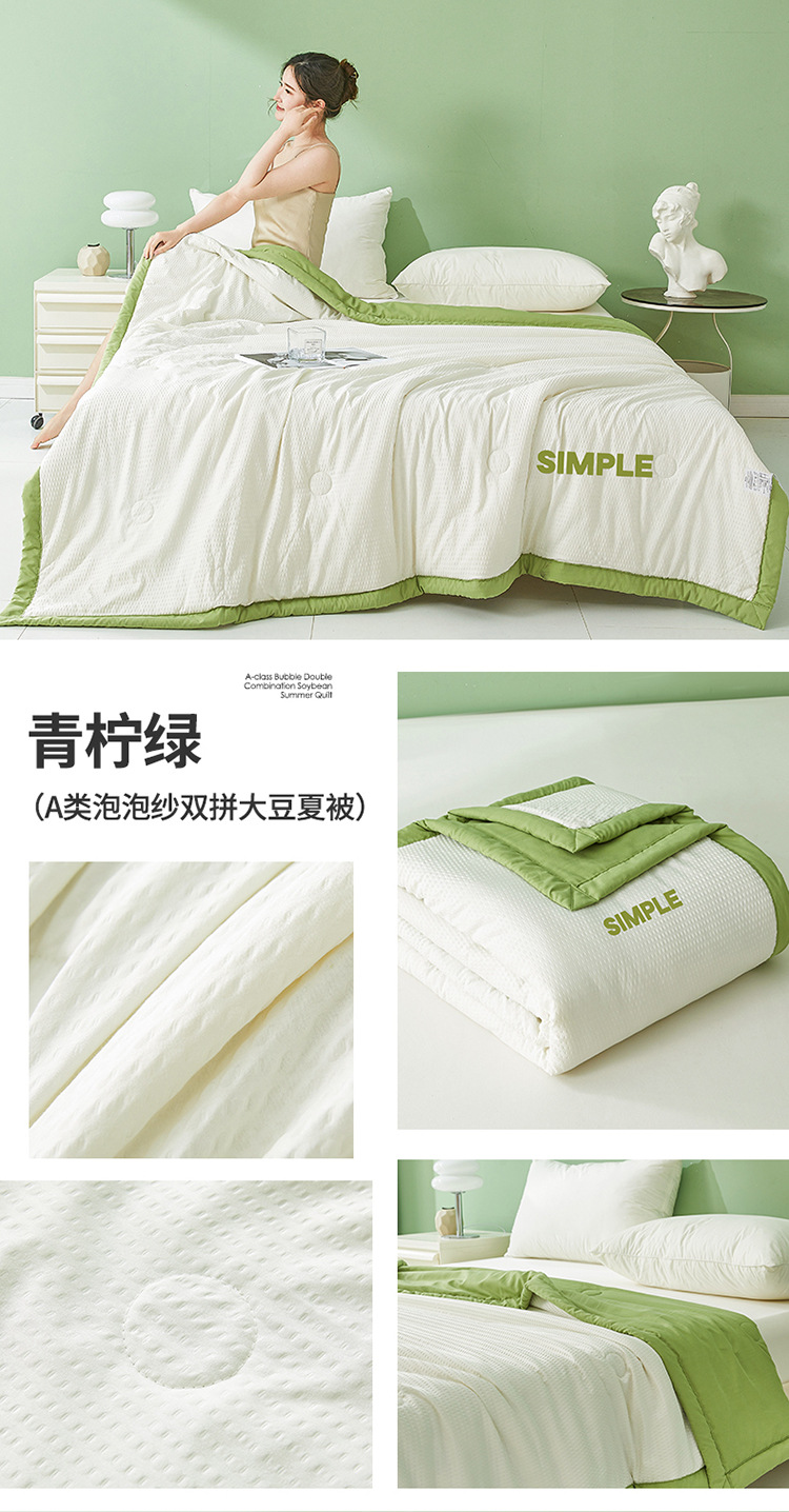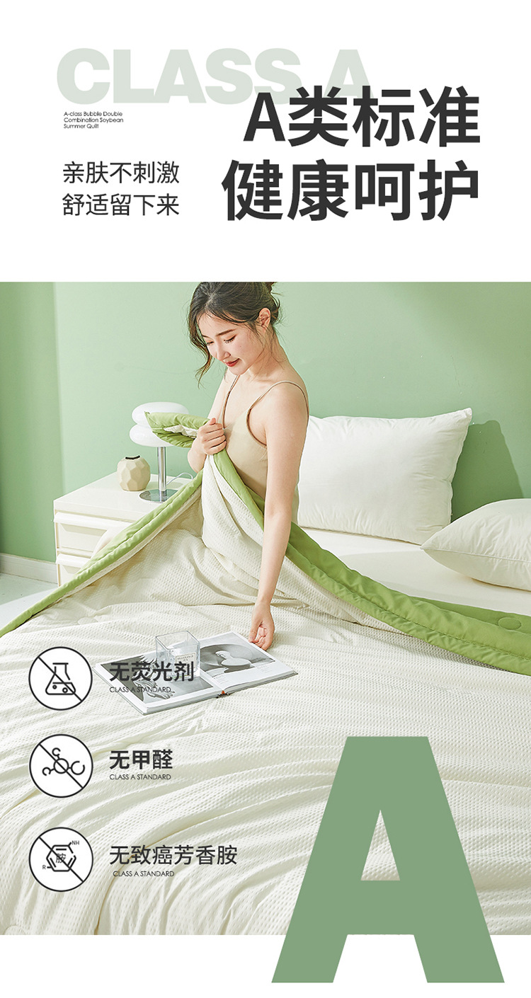 【泡泡纱空调被】大豆夏凉被 a类可水洗 儿童单双人薄被子 泡泡纱双拼大豆夏被_ZSY