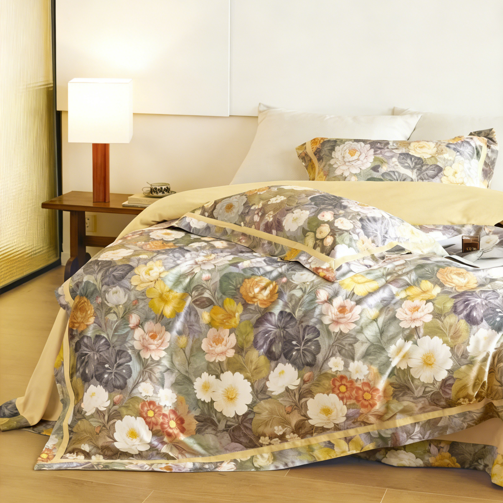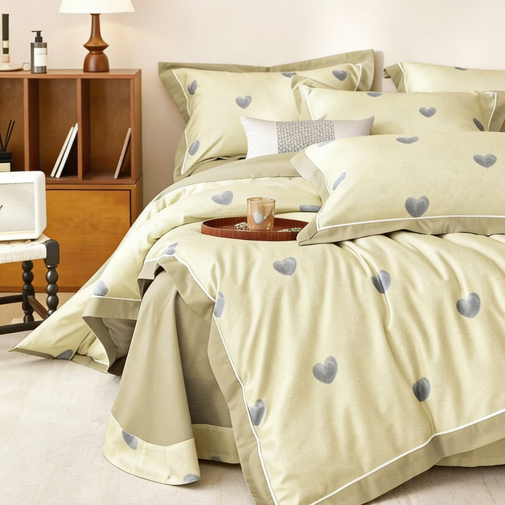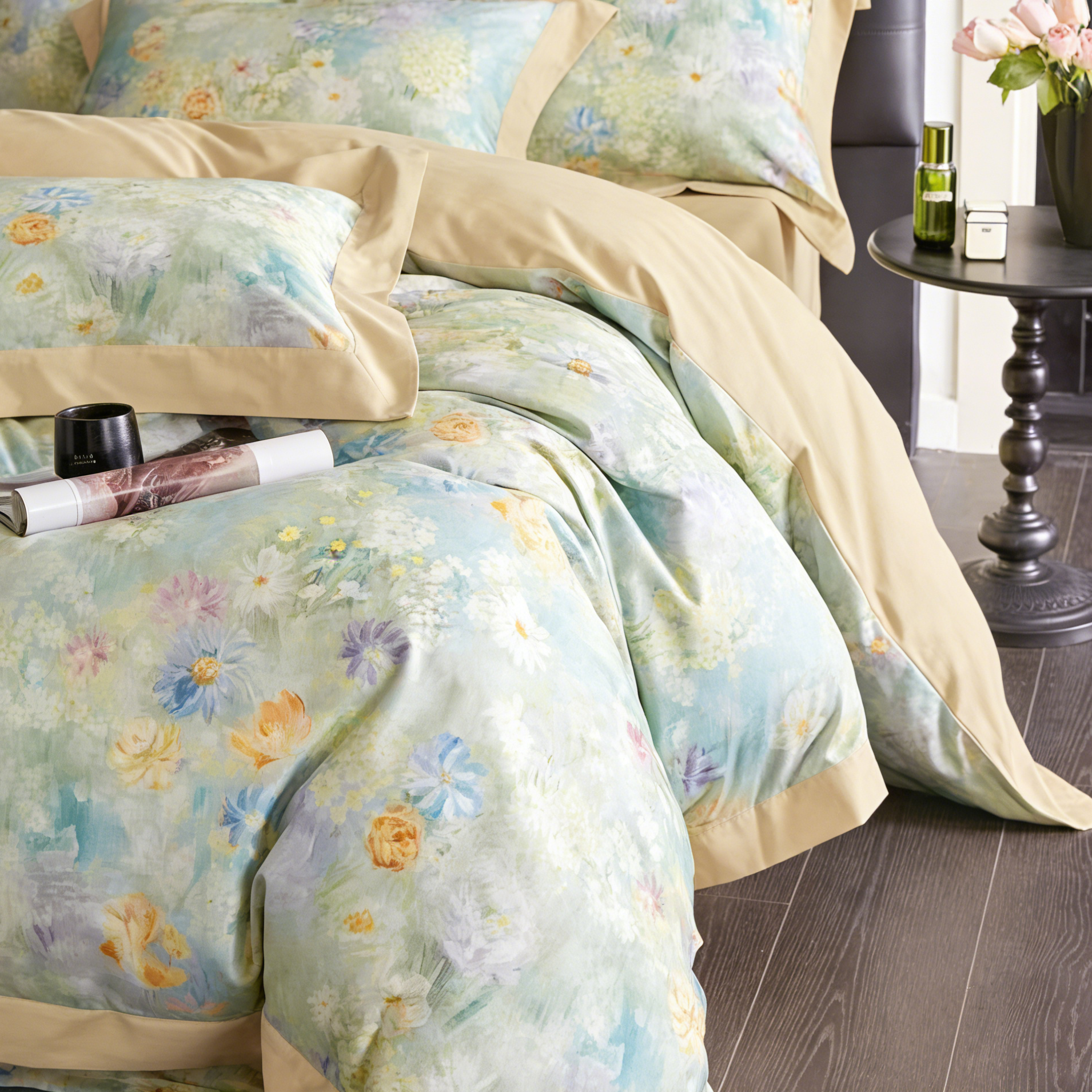鎏金澳棉四件套 春樱漱雪(奶白绿)