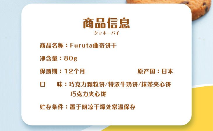 日本进口富璐达曲奇饼干牛乳味73.7g/盒