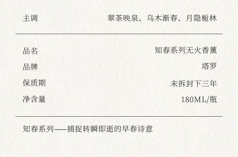 【品名】塔罗 知春系列无火香薰 自然之息 满室芳香 180ml/瓶 【规格】乌木渐春、月隐栀林、翠茶映泉 【产地】国内 【发货包装】独立包装 【发货地】山东 【发货快递】中通、申通、韵达随机发 【不发货区域】新疆、西藏、港澳台 【补邮费地区】广西、云南、甘肃、青海、宁夏、内蒙、海南+5元 北京+1.5元 上海+2元 【发货时效】48-72小时,周末节假日顺延 |