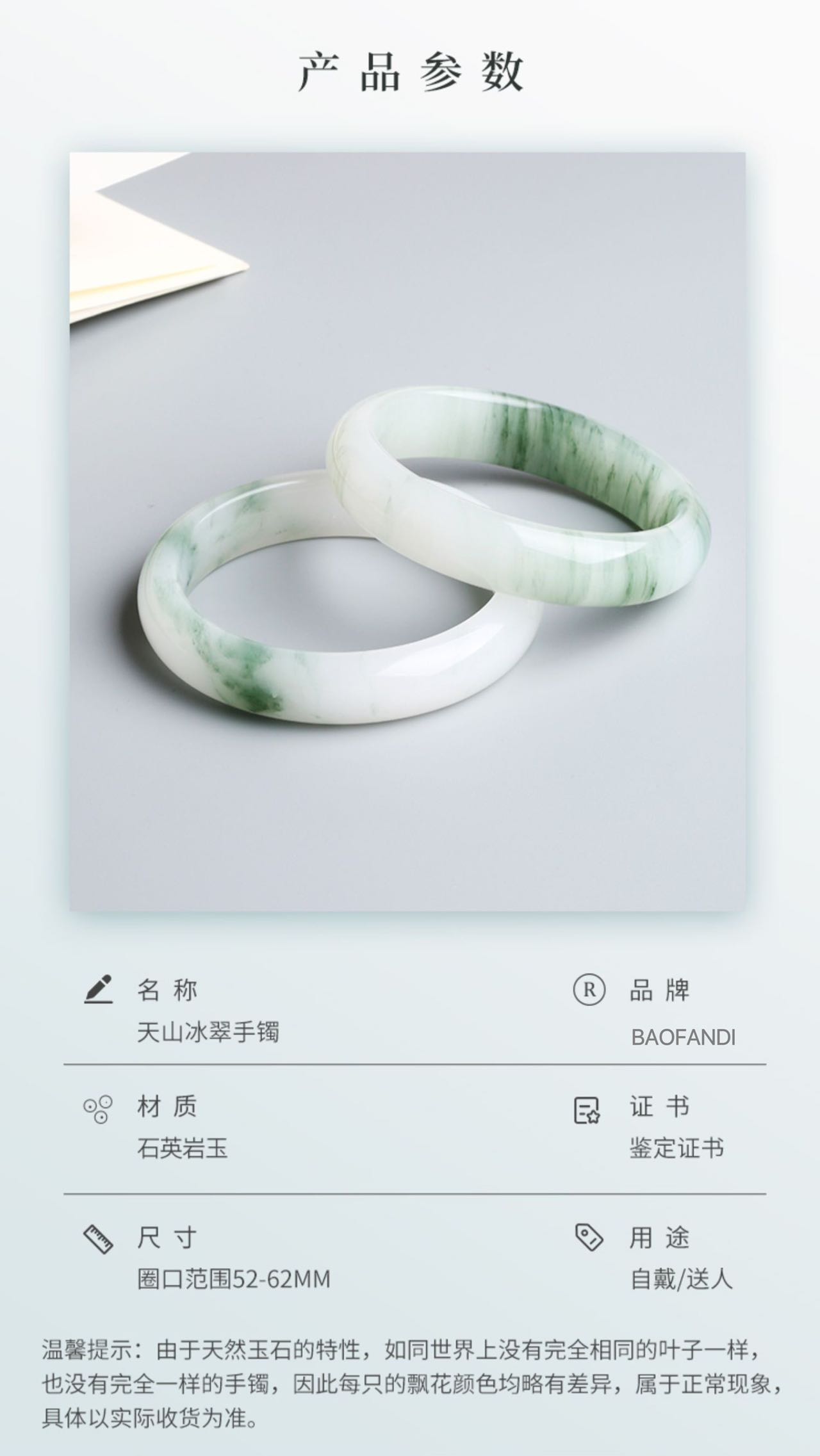【前200位下单即送天山翠平安扣!】宝梵迪天山冰翠手镯天然玉石镯子优雅气质手镯 民族风