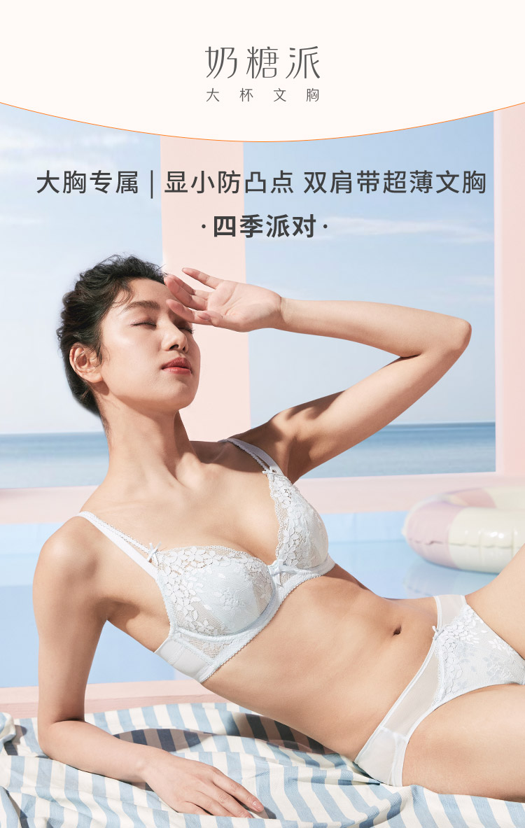 奶糖派大杯文胸告白分胸型4.0经典款撞色防下垂蕾丝上托大胸内衣