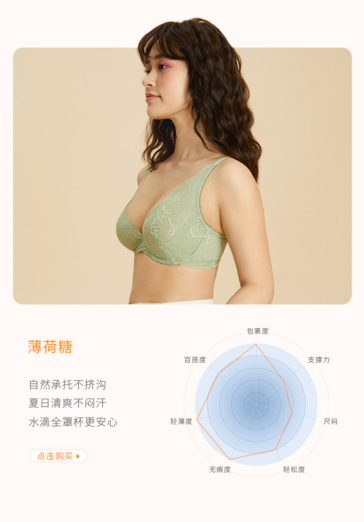 奶糖派线雕软支撑果冻条大胸侧收提拉文胸隐形无痕光面内衣