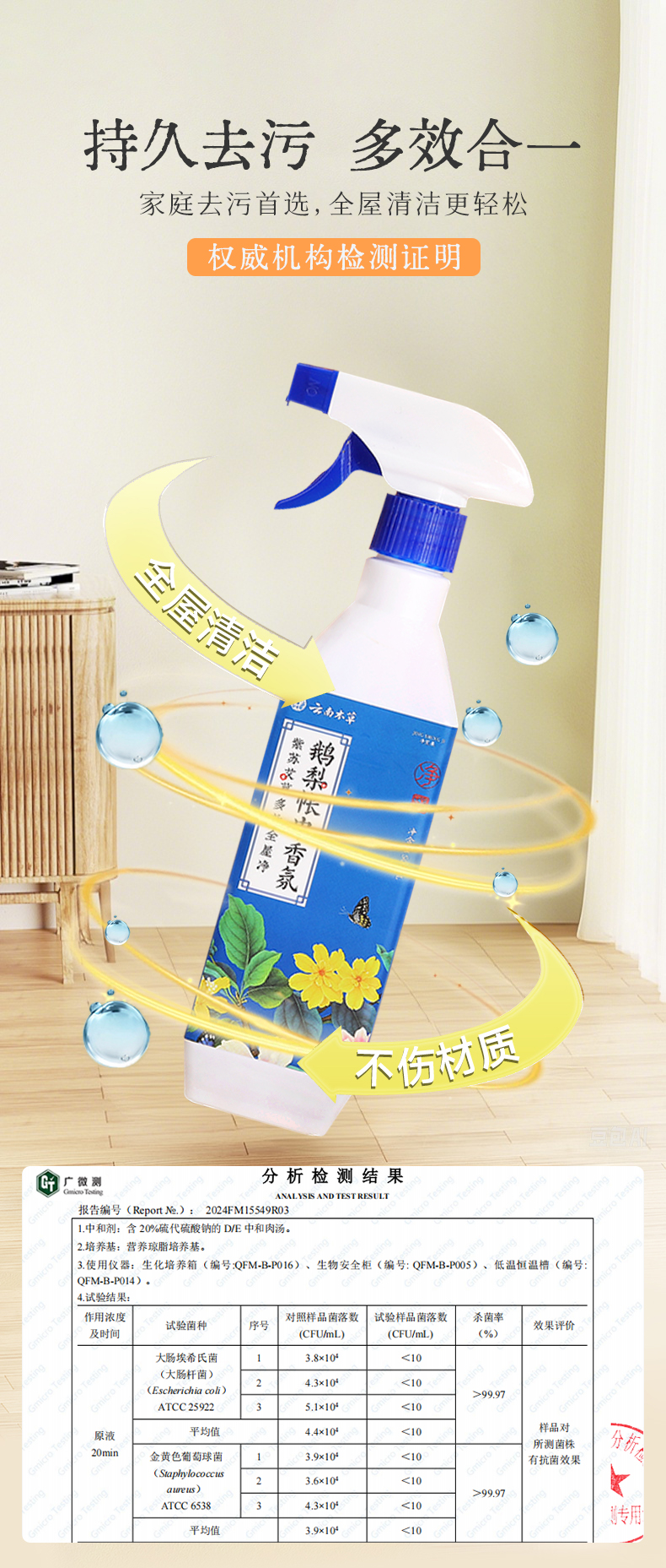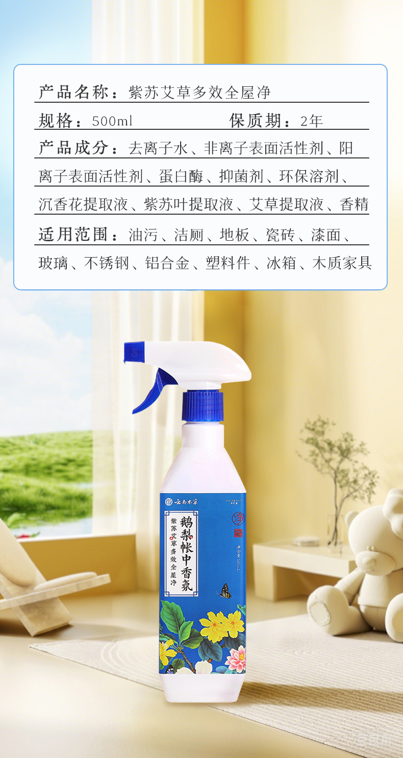 云南本草出品 紫苏艾草多效全屋净(鹅梨帐中香氛) 温和配方 不损器具 一瓶多效 去污抗菌 全屋清洁