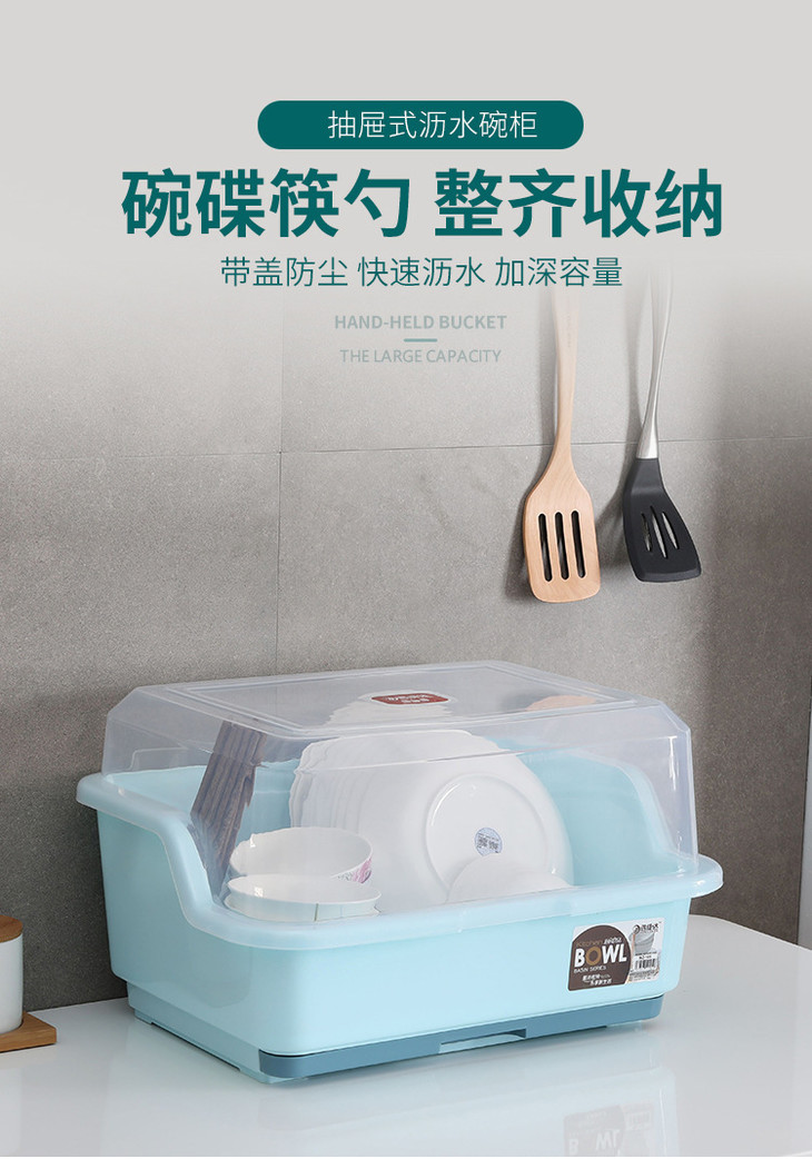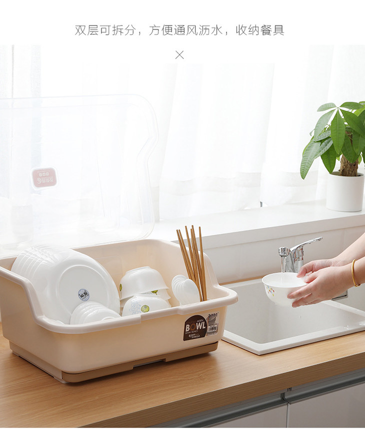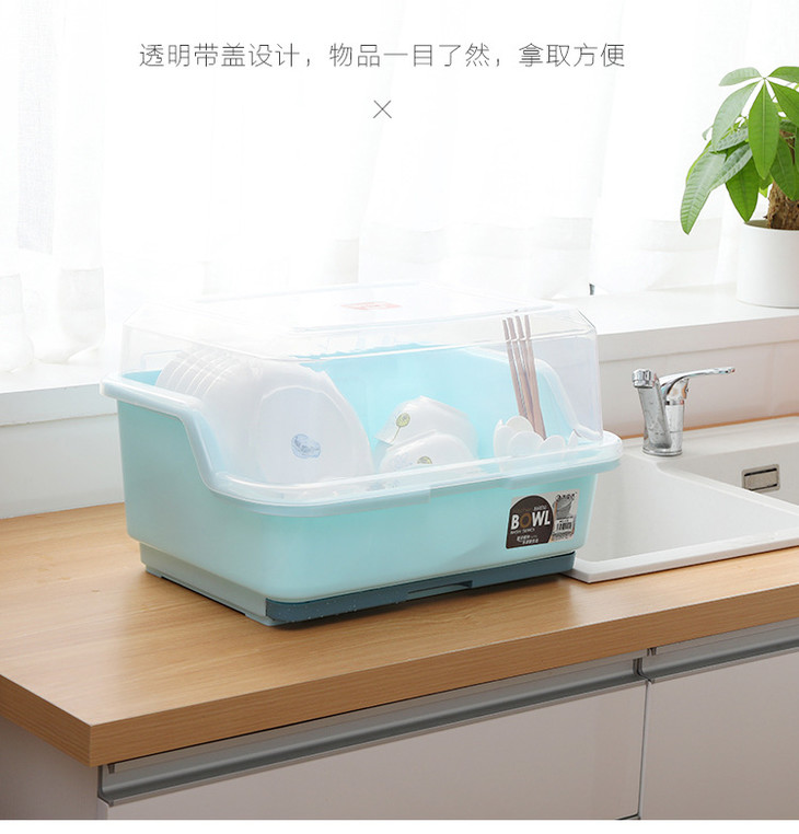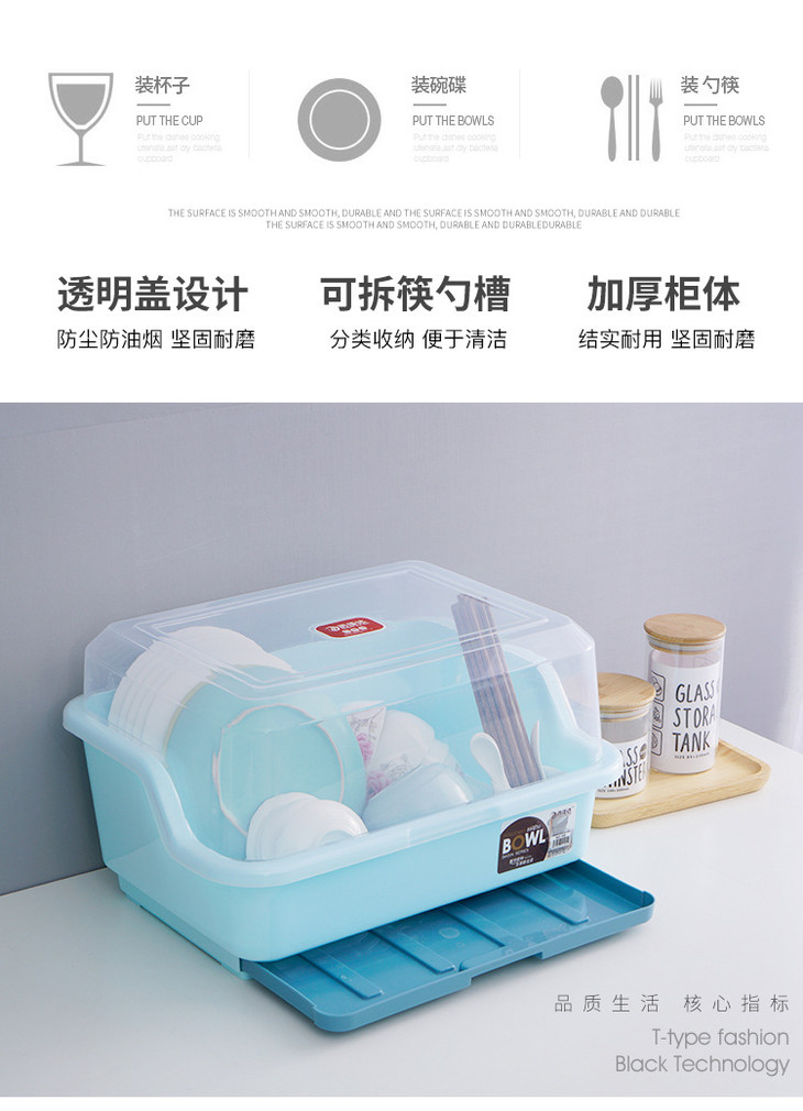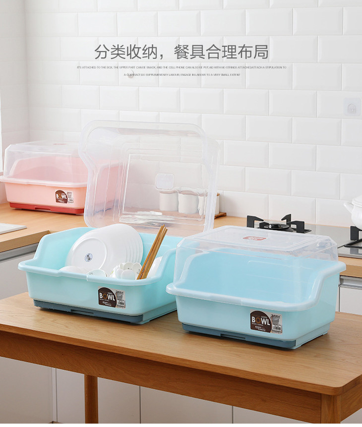 【厨房用品】装碗筷收纳盒放碗箱沥水碗架厨房家用带盖碗盆碗碟置物架塑料碗柜