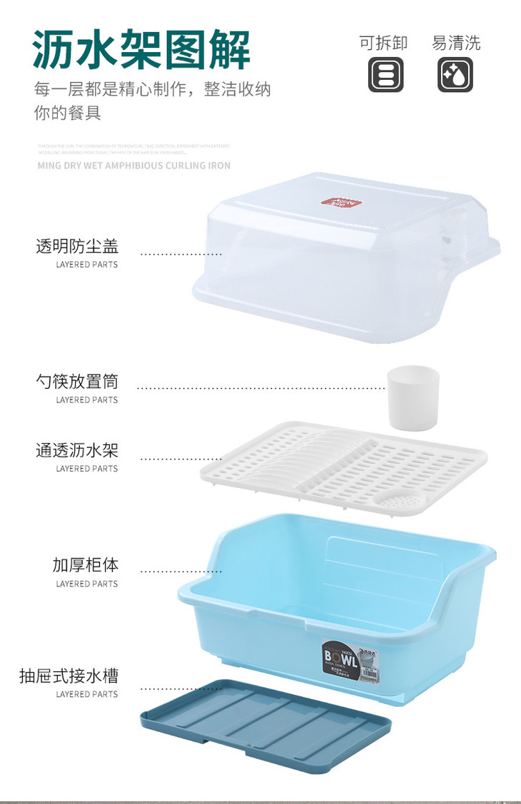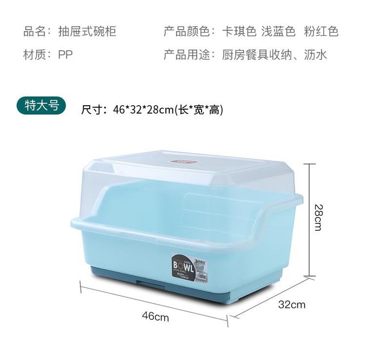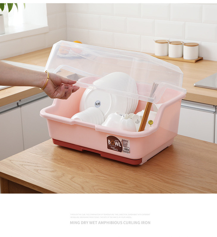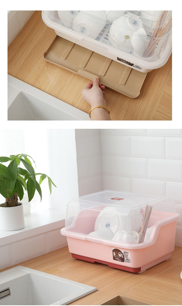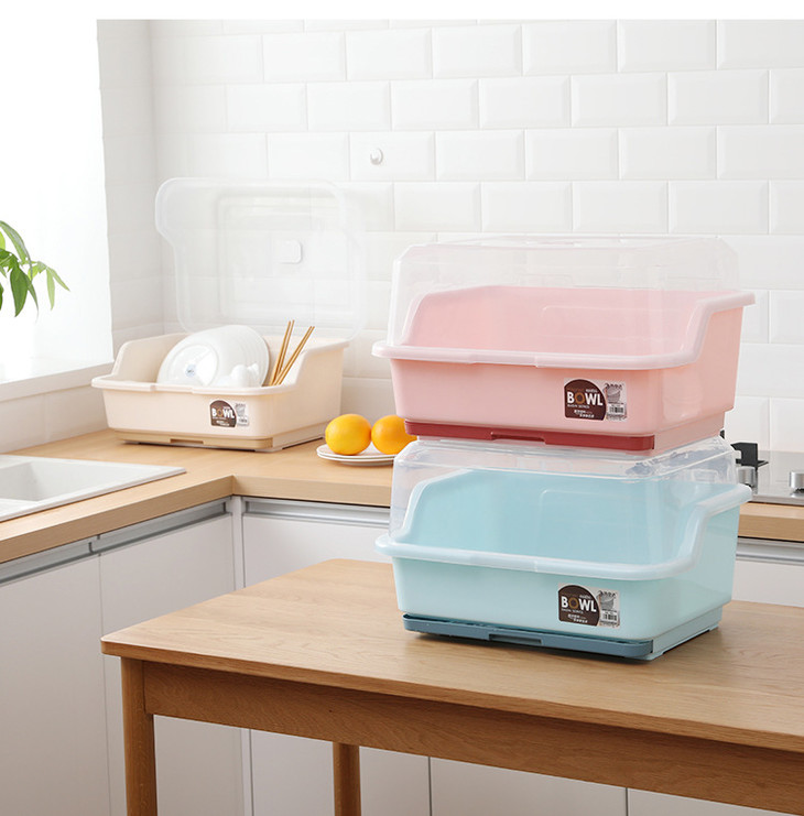 【厨房用品】装碗筷收纳盒放碗箱沥水碗架厨房家用带盖碗盆碗碟置物架塑料碗柜