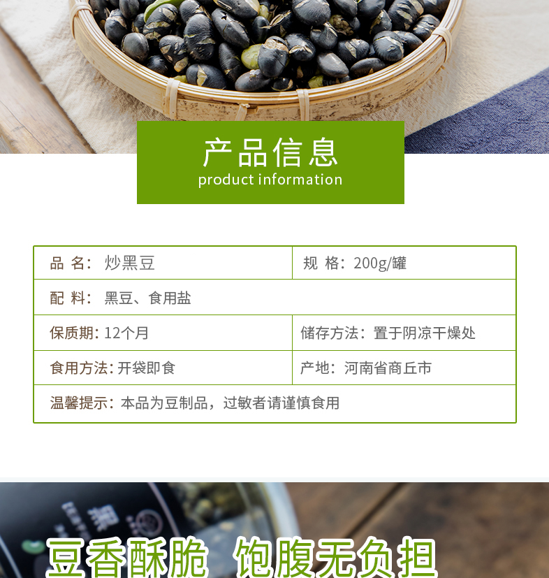 香酥绿芯炒黑豆 无油干炒更健康,健康高蛋白 即食备孕零食 3罐装