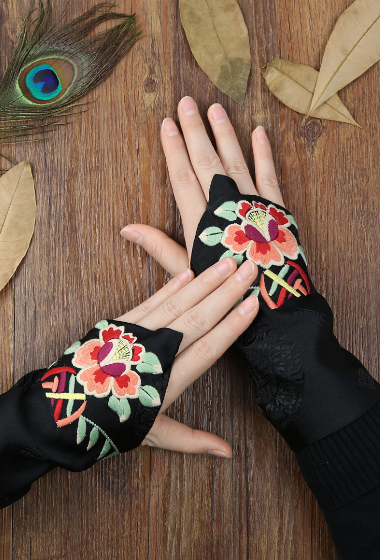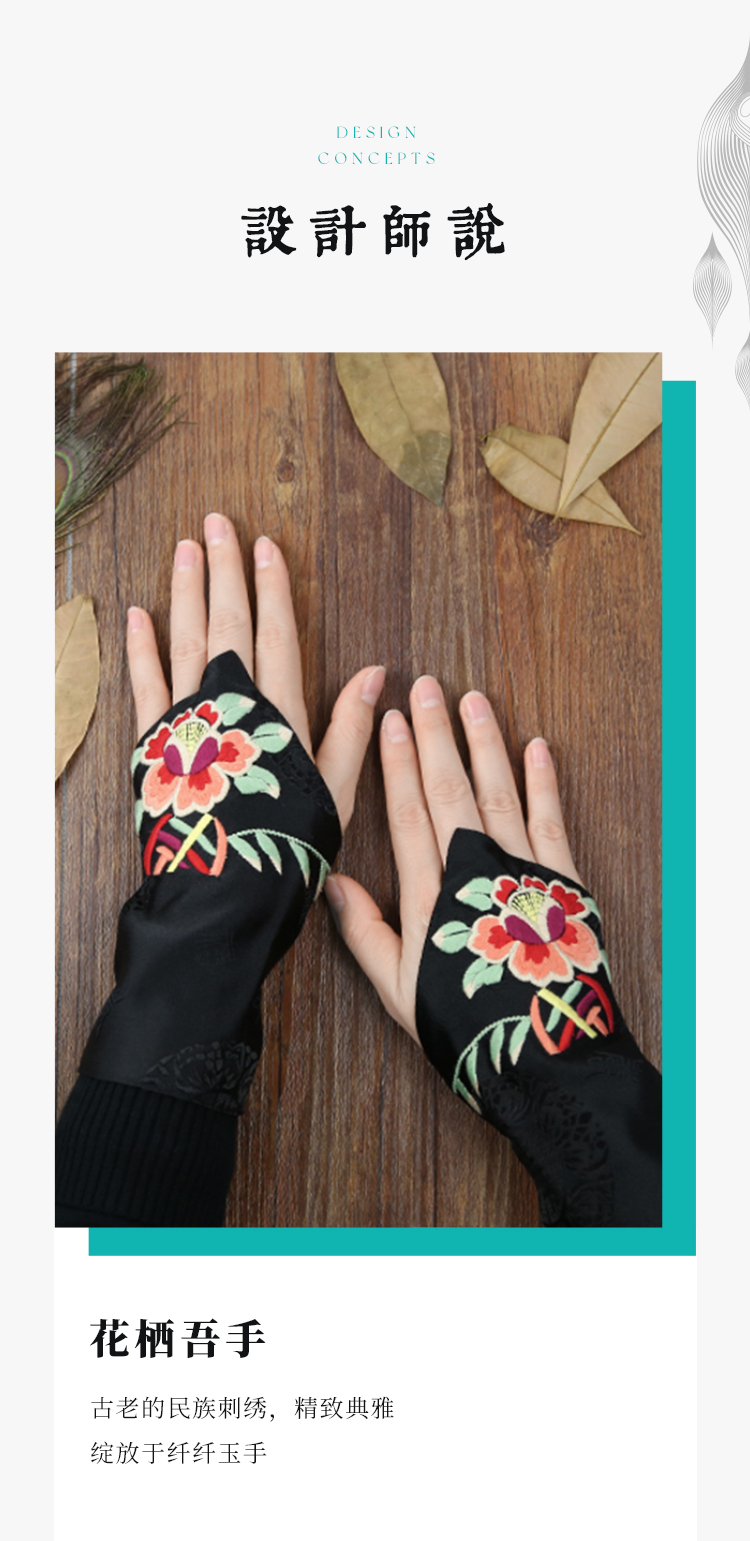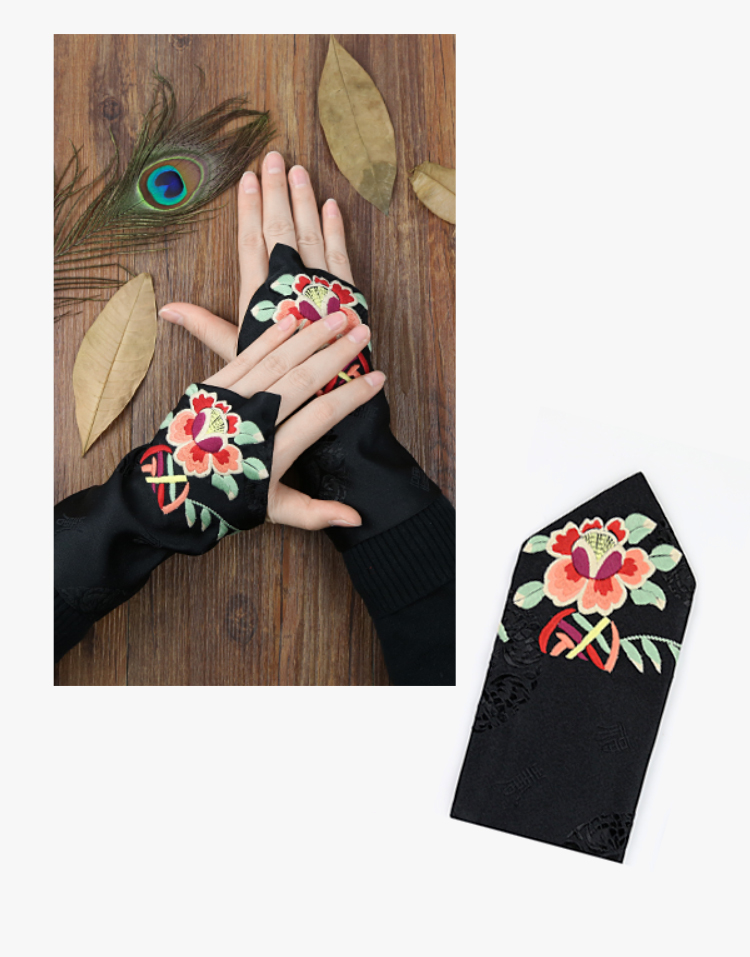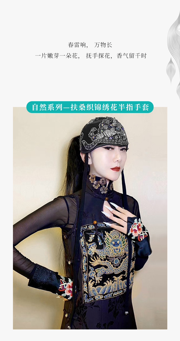 杨丽萍老师同款 | 扶桑织锦绣花半指手套