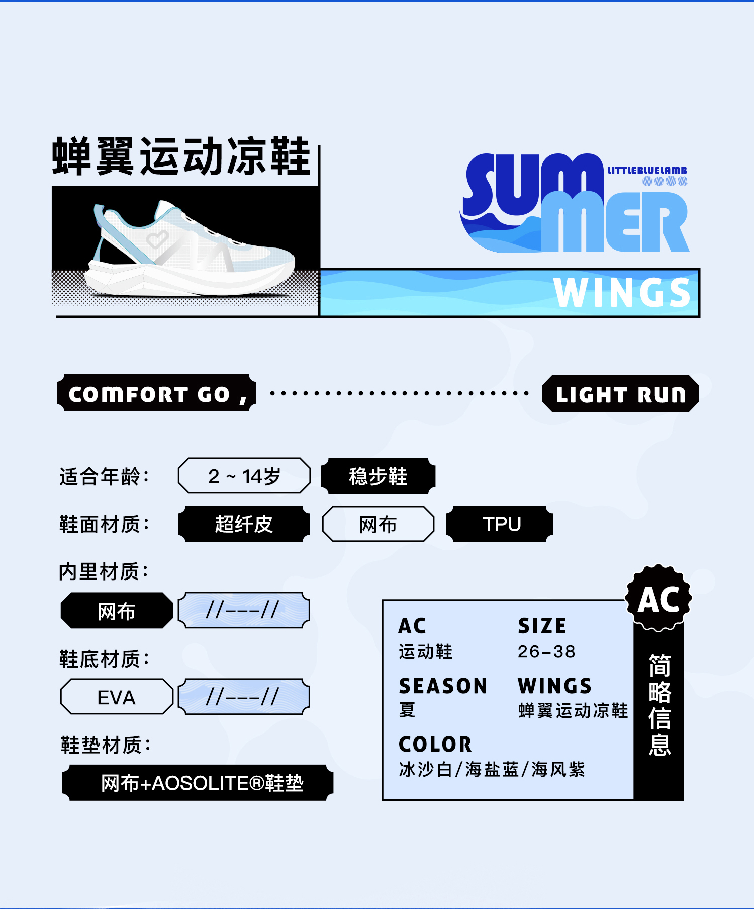 【26-38码】小蓝羊2025夏蝉翼运动凉鞋——儿童凉鞋校园鞋超轻缓震跑步鞋