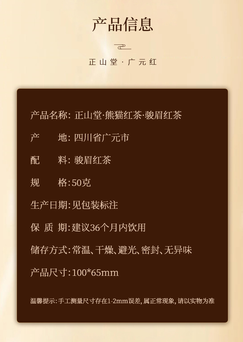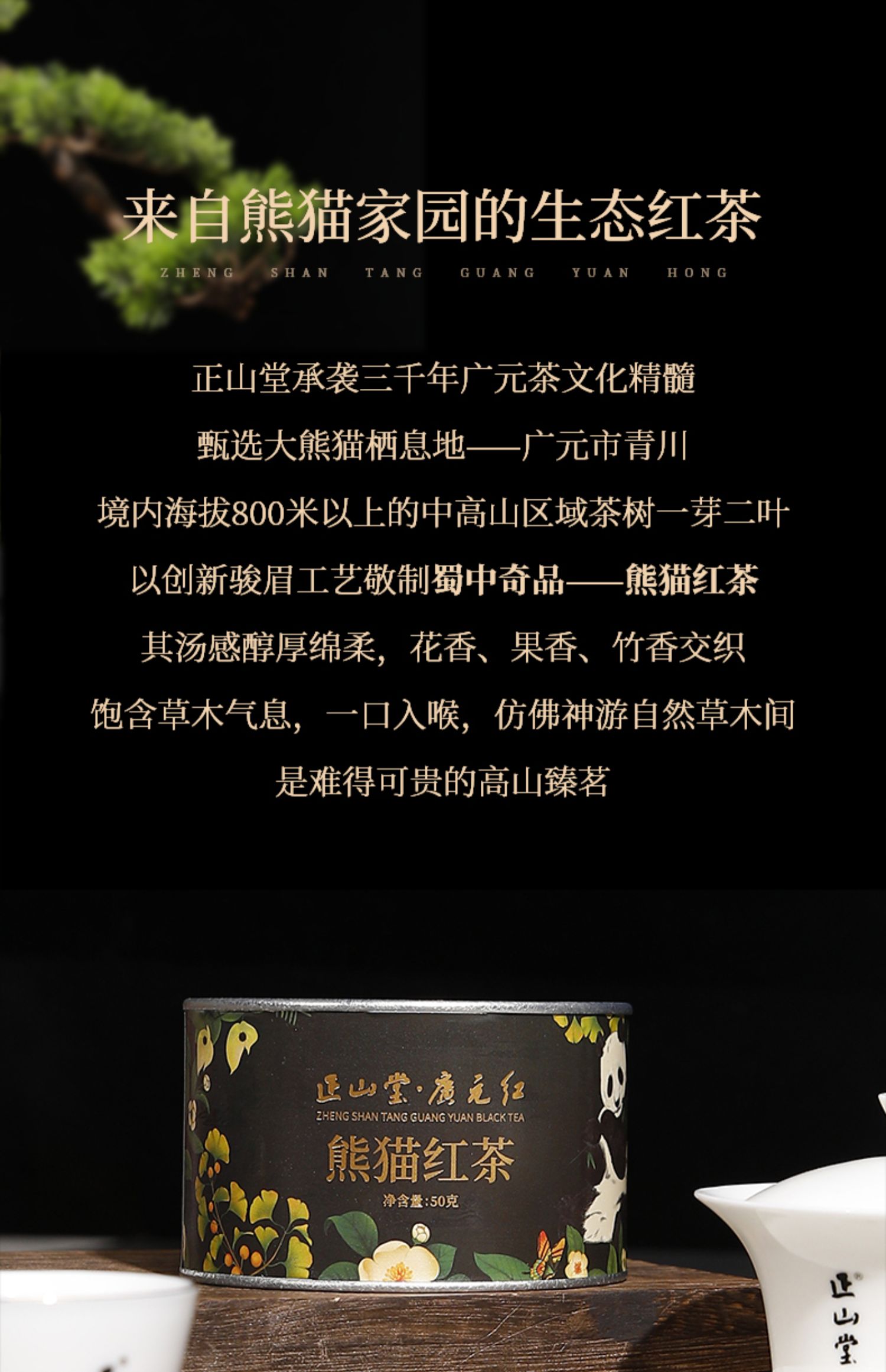 正山堂骏眉中国 广元红熊猫红茶 四川特级茶叶罐装50g