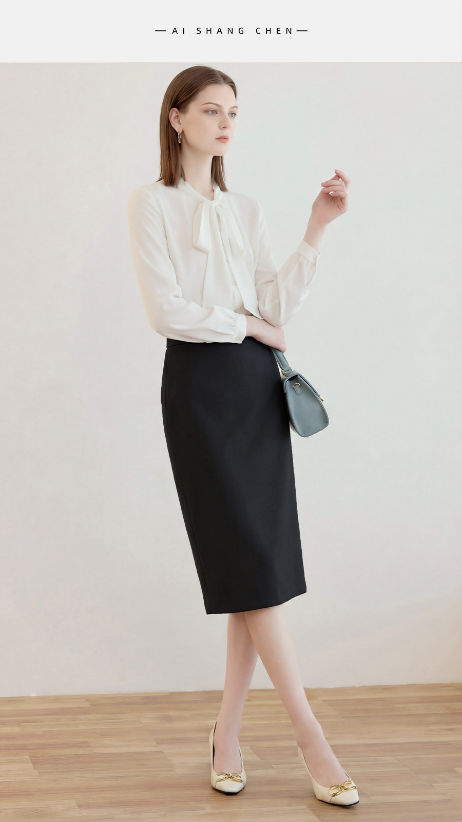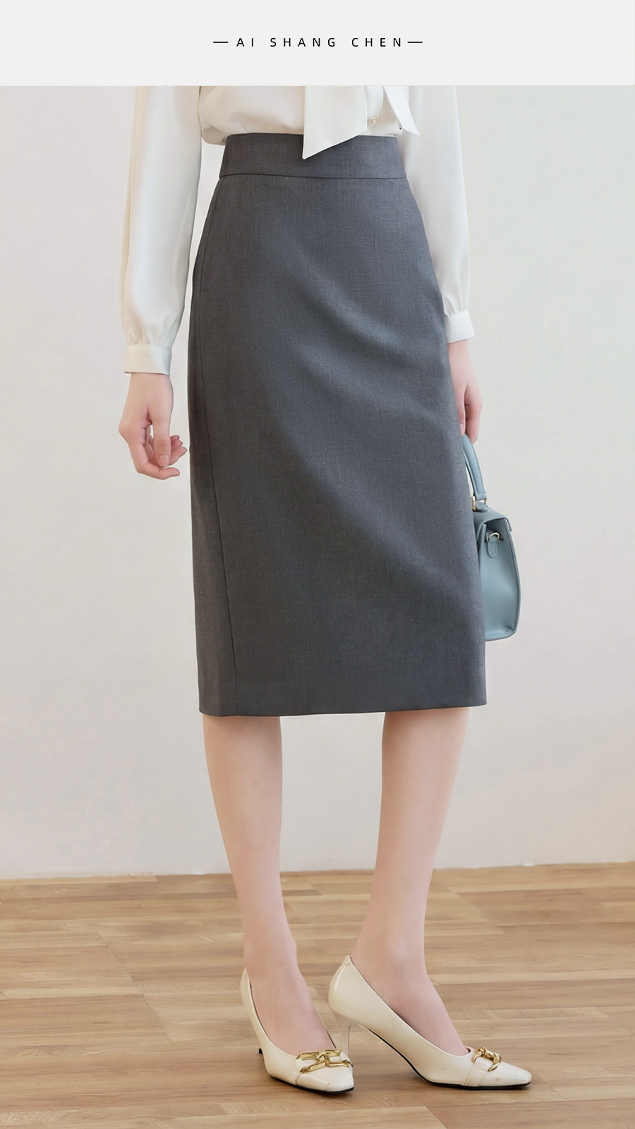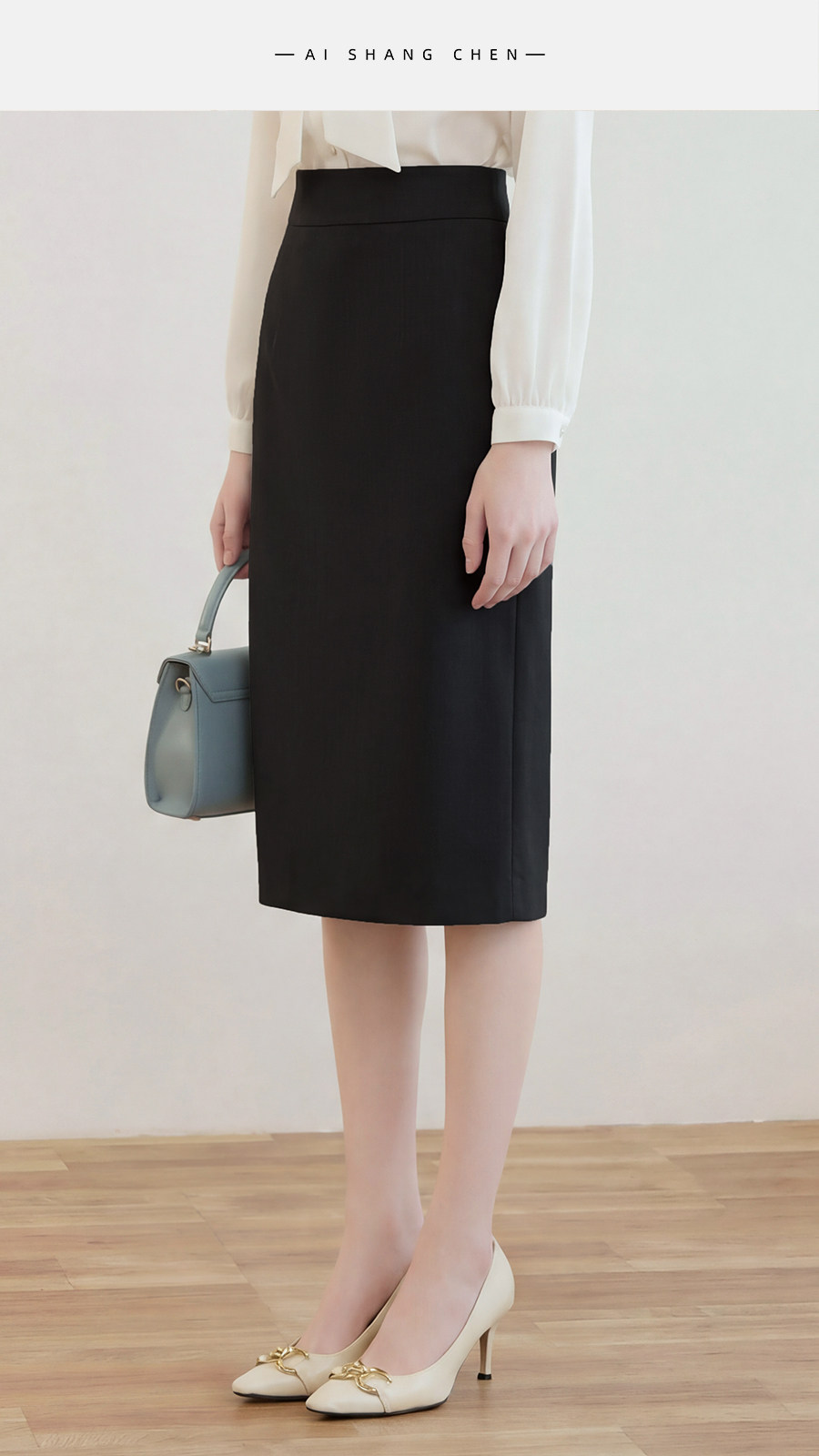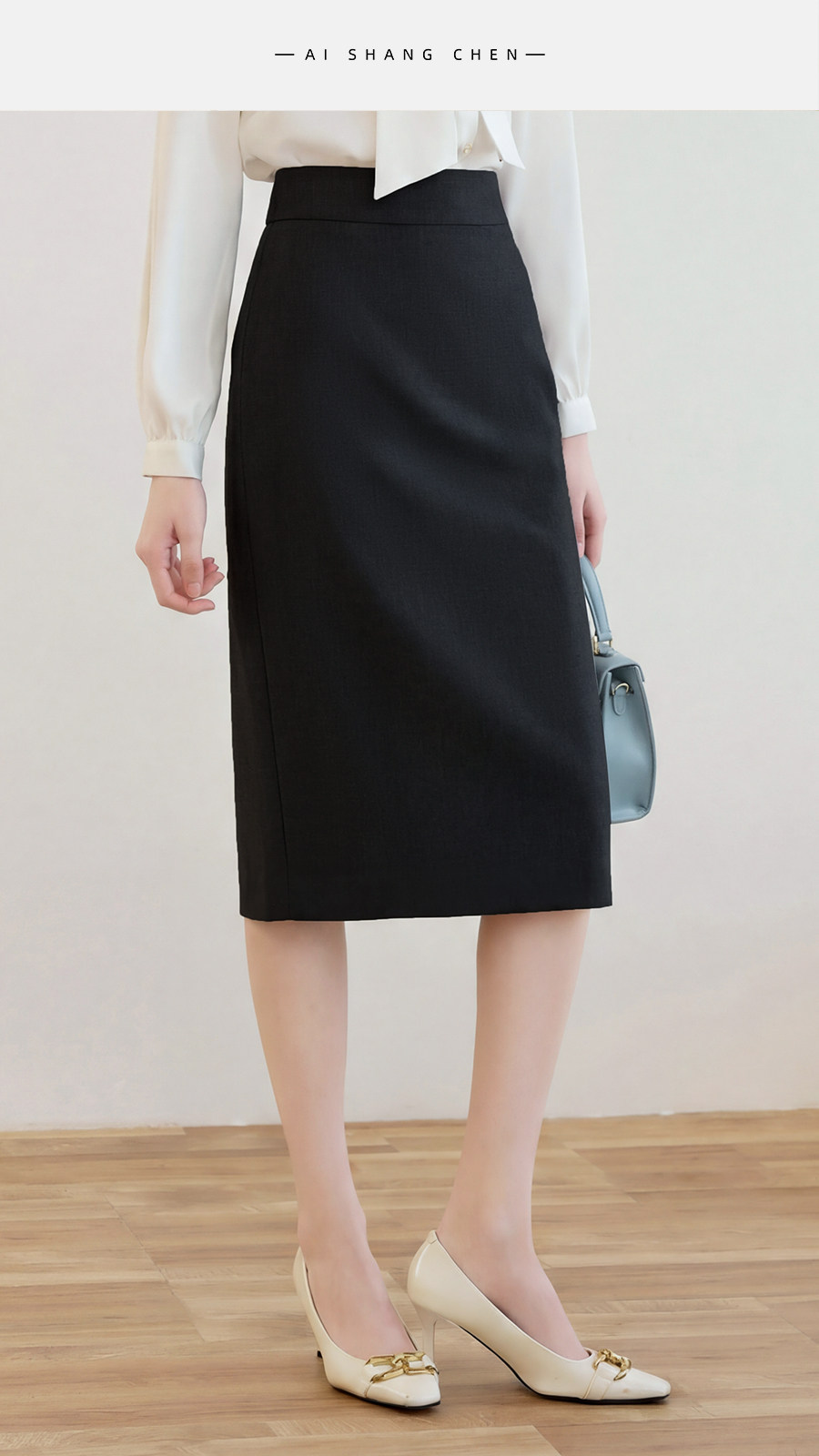 艾尚臣简约黑色半身裙女高腰包臀中长裙通勤职业一步裙面试直筒裙