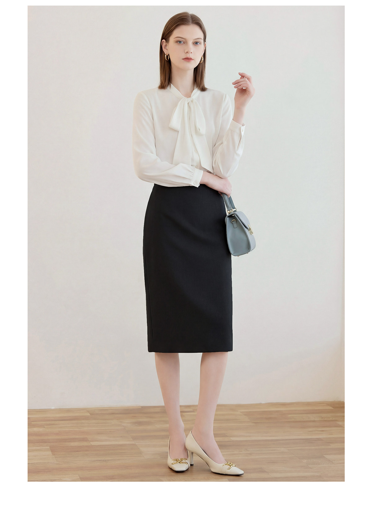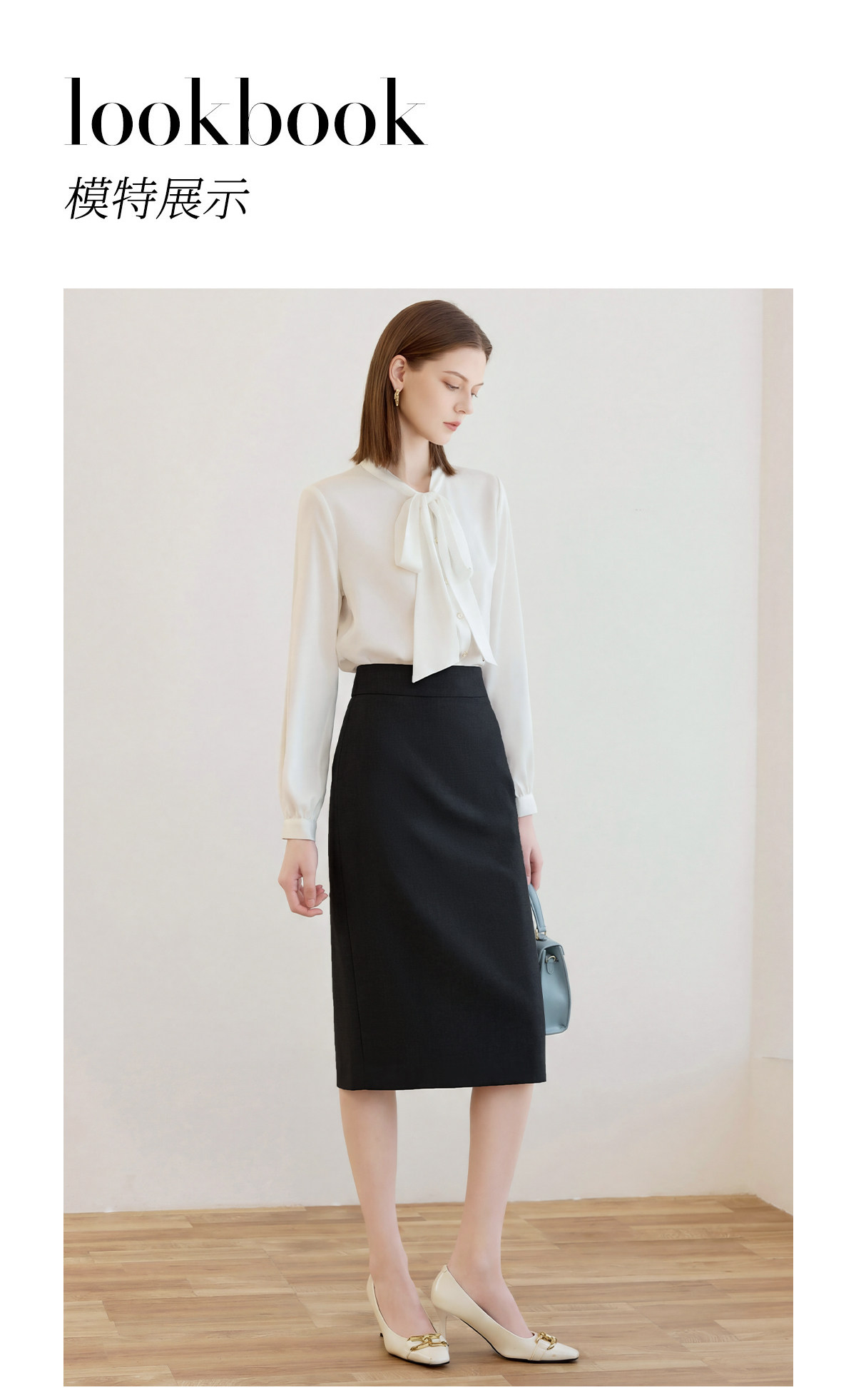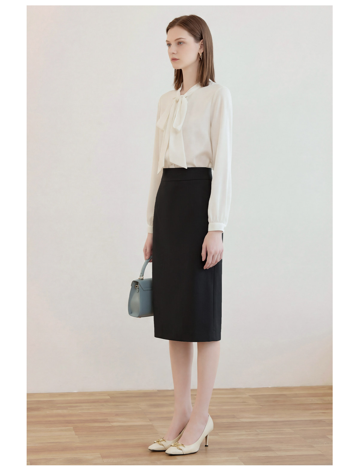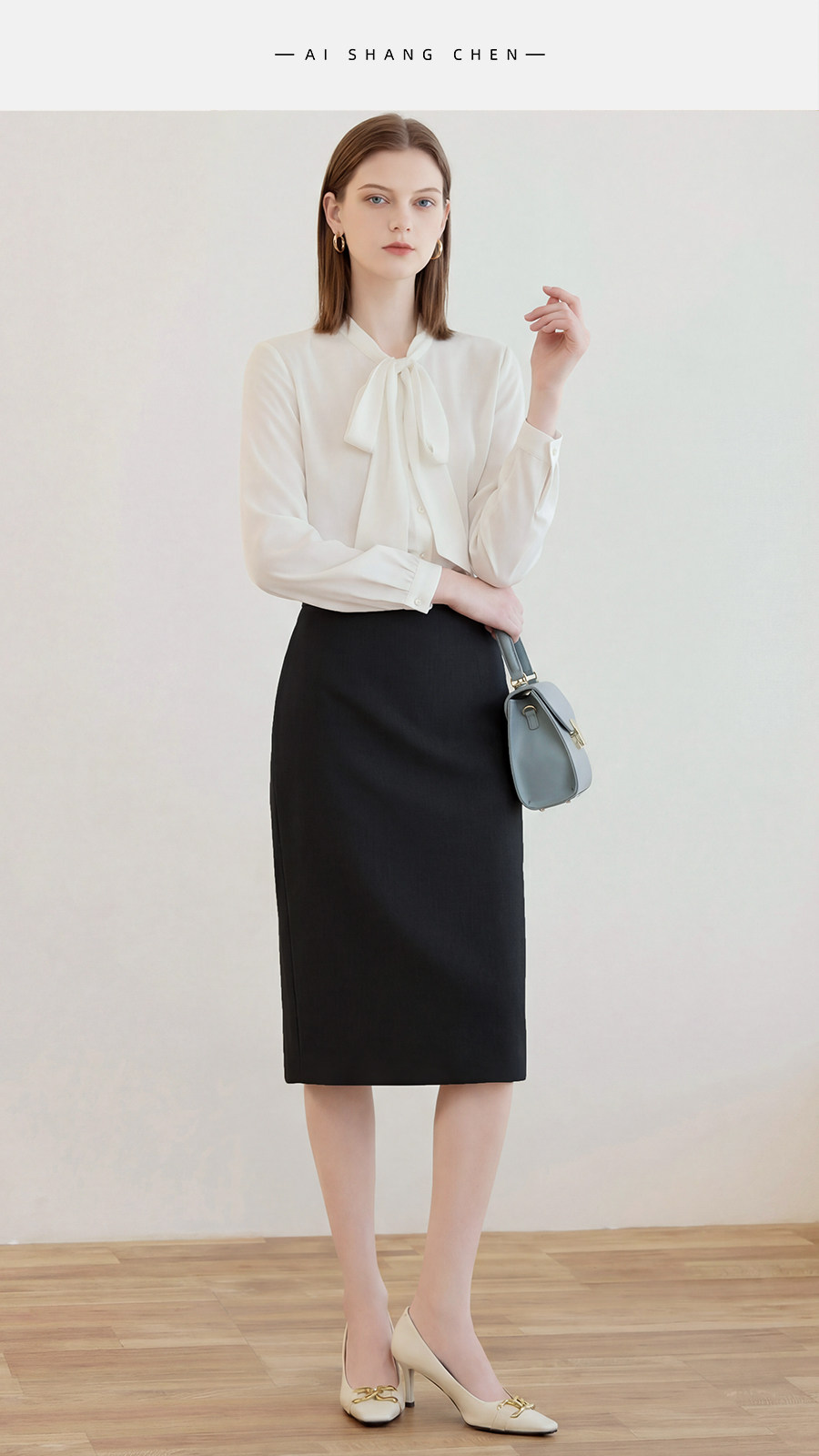 艾尚臣简约黑色半身裙女高腰包臀中长裙通勤职业一步裙面试直筒裙