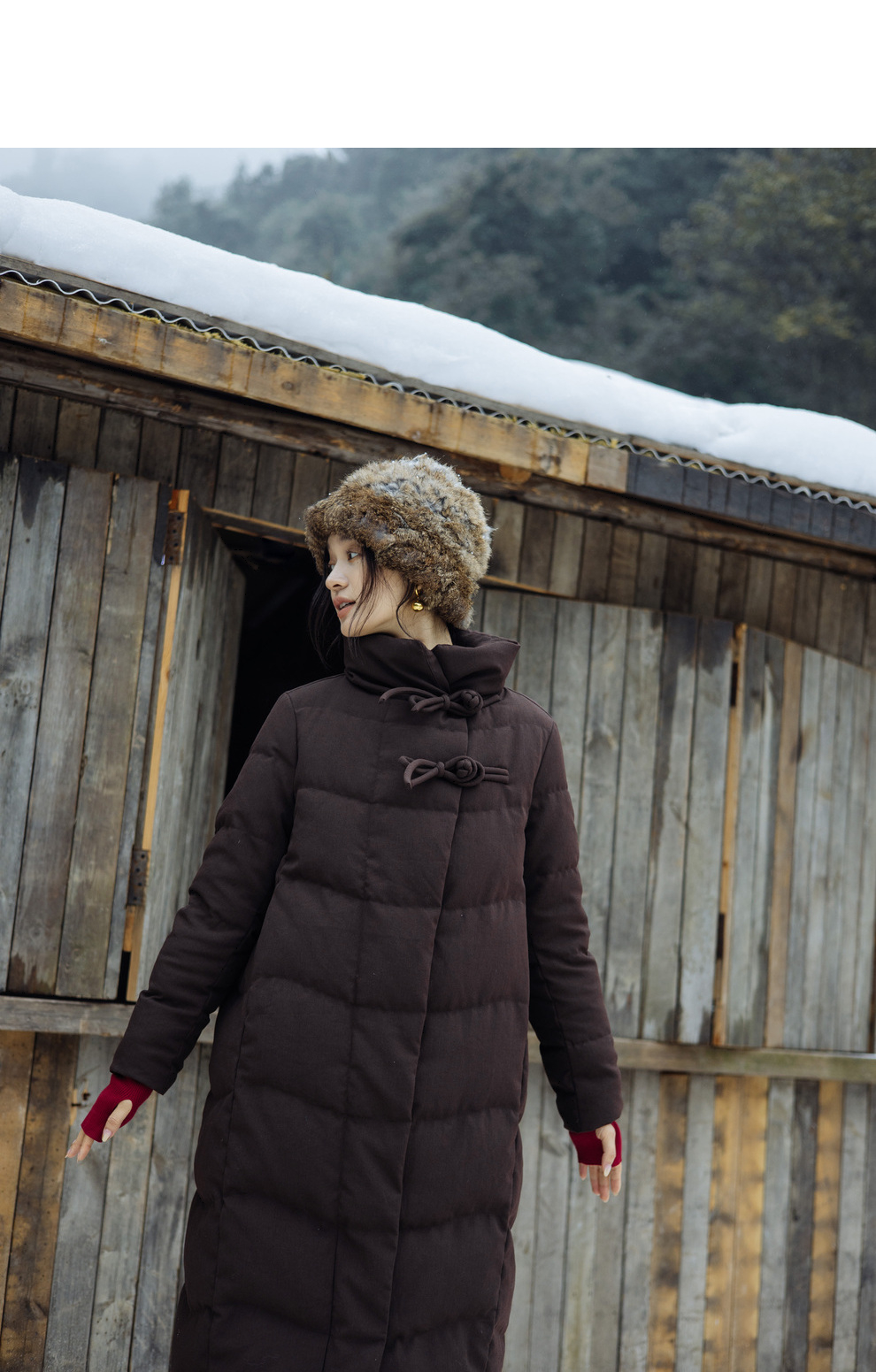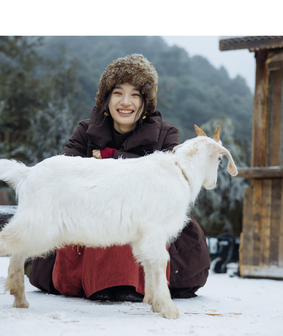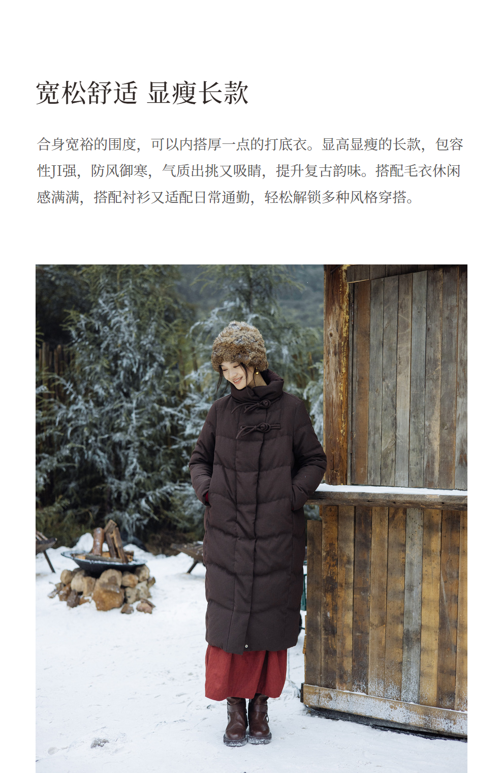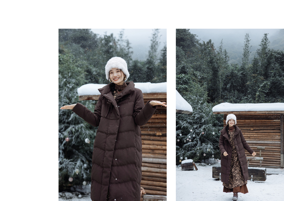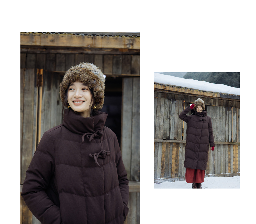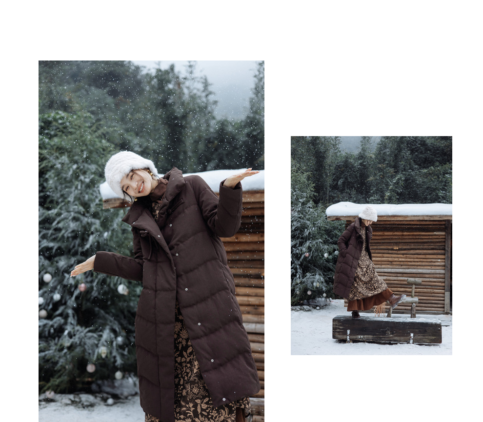 绽放868朵/冬季95白鹅绒中式盘扣磨砂质感立领长款中空纱羽绒服