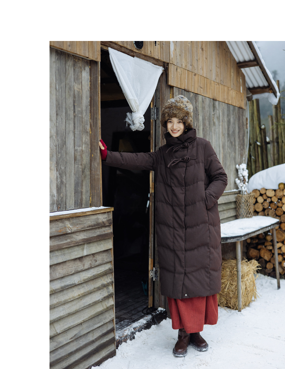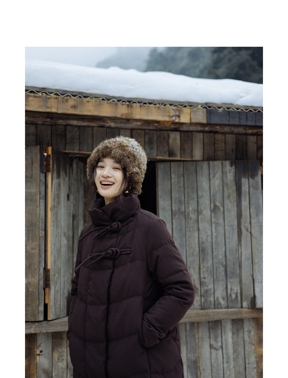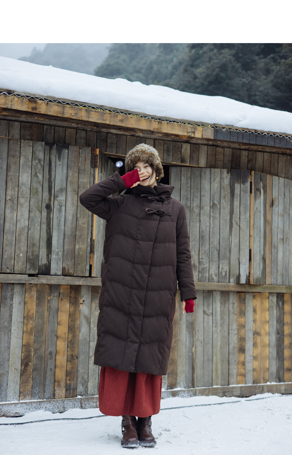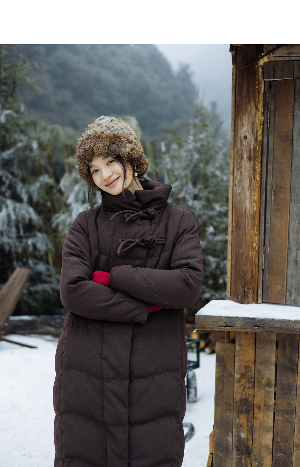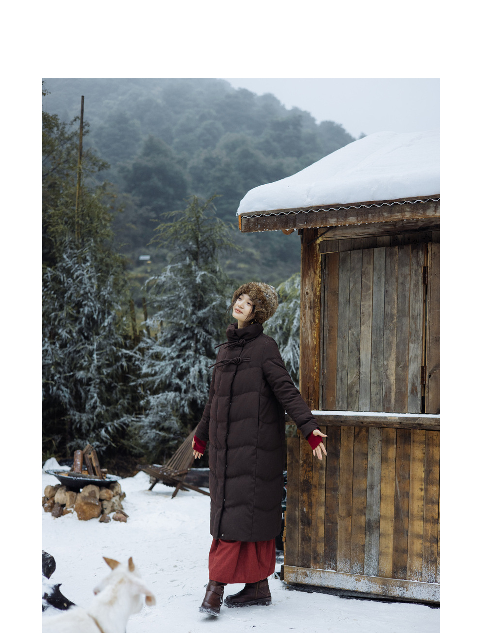 绽放868朵/冬季95白鹅绒中式盘扣磨砂质感立领长款中空纱羽绒服