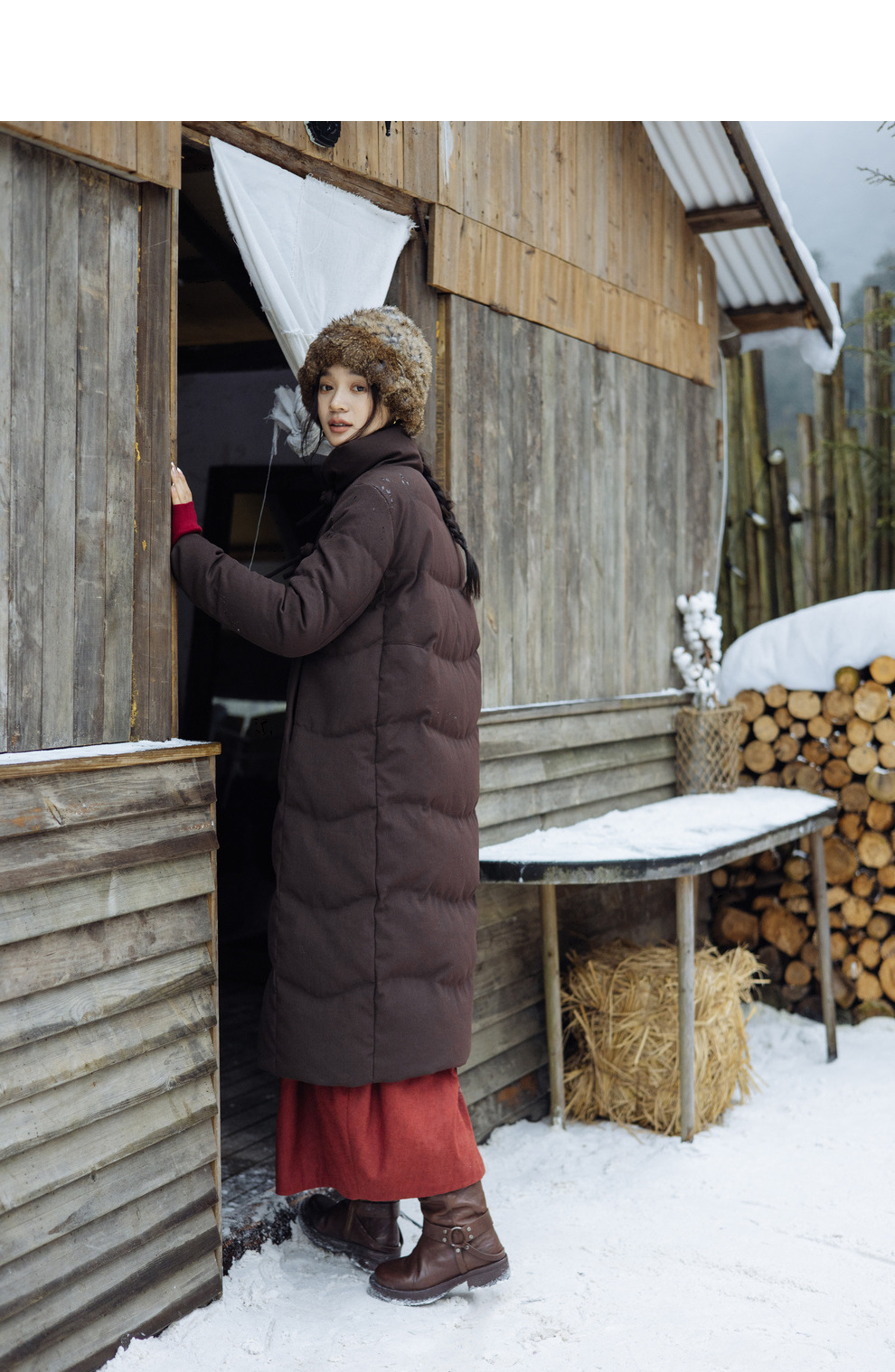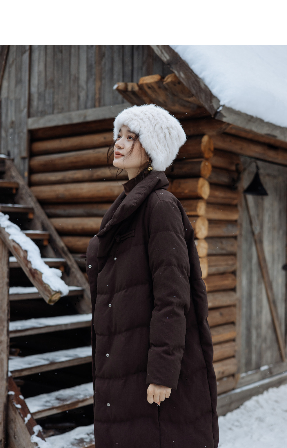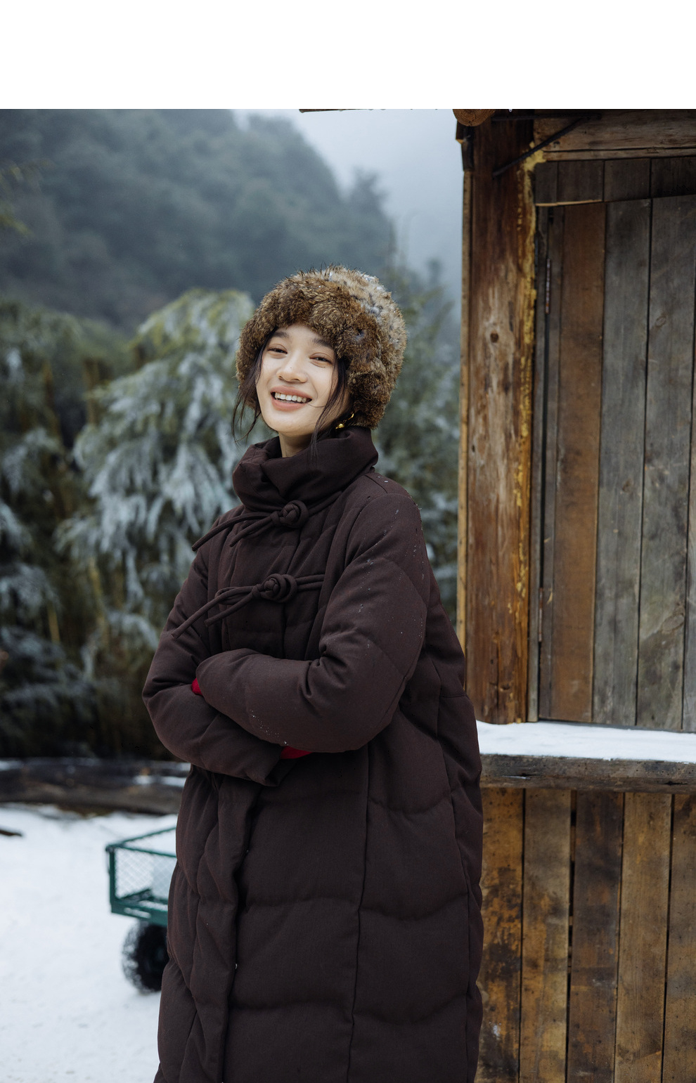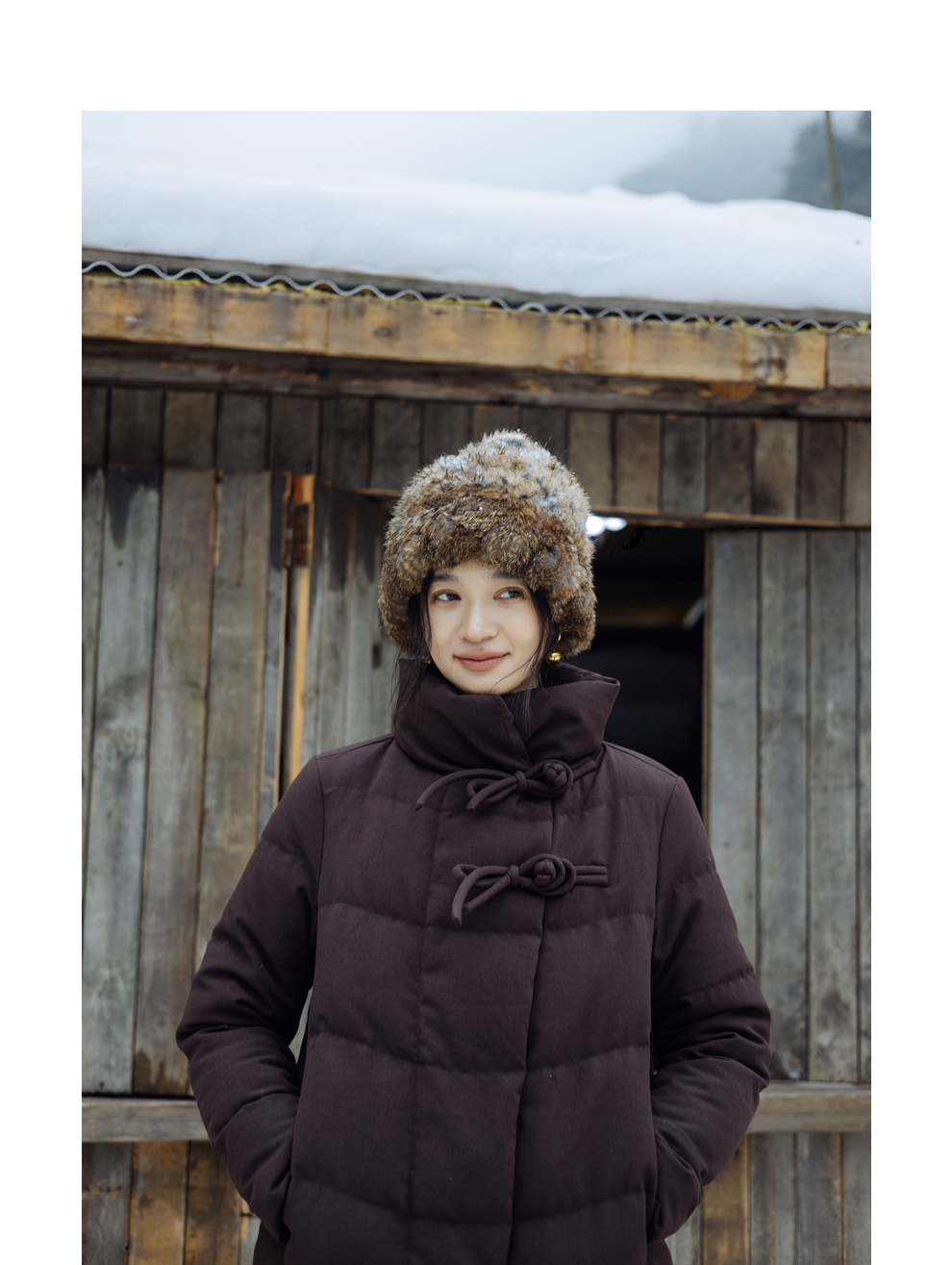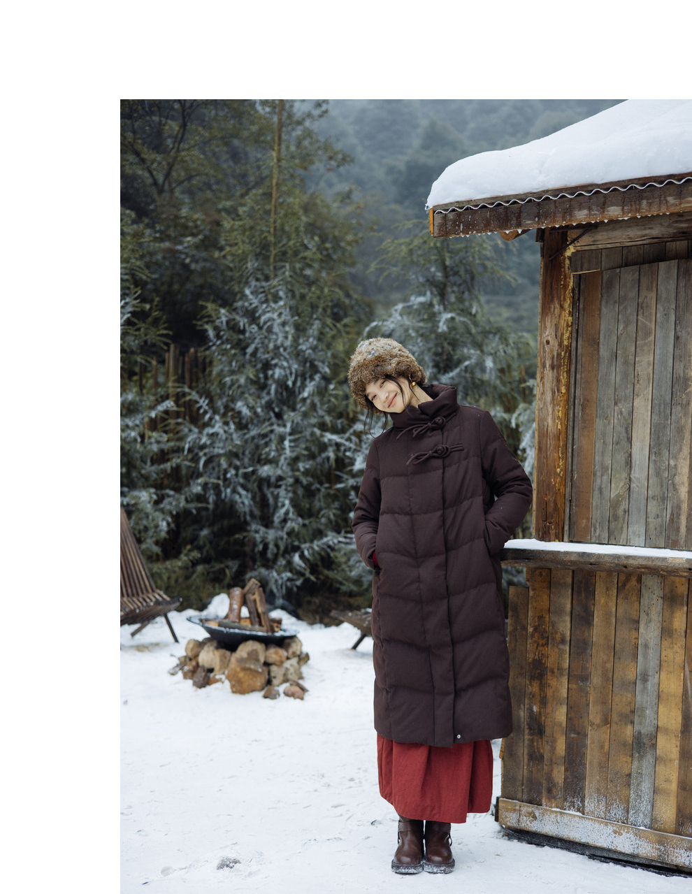 绽放868朵/冬季95白鹅绒中式盘扣磨砂质感立领长款中空纱羽绒服
