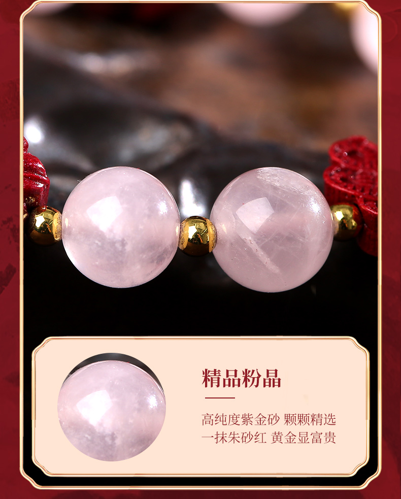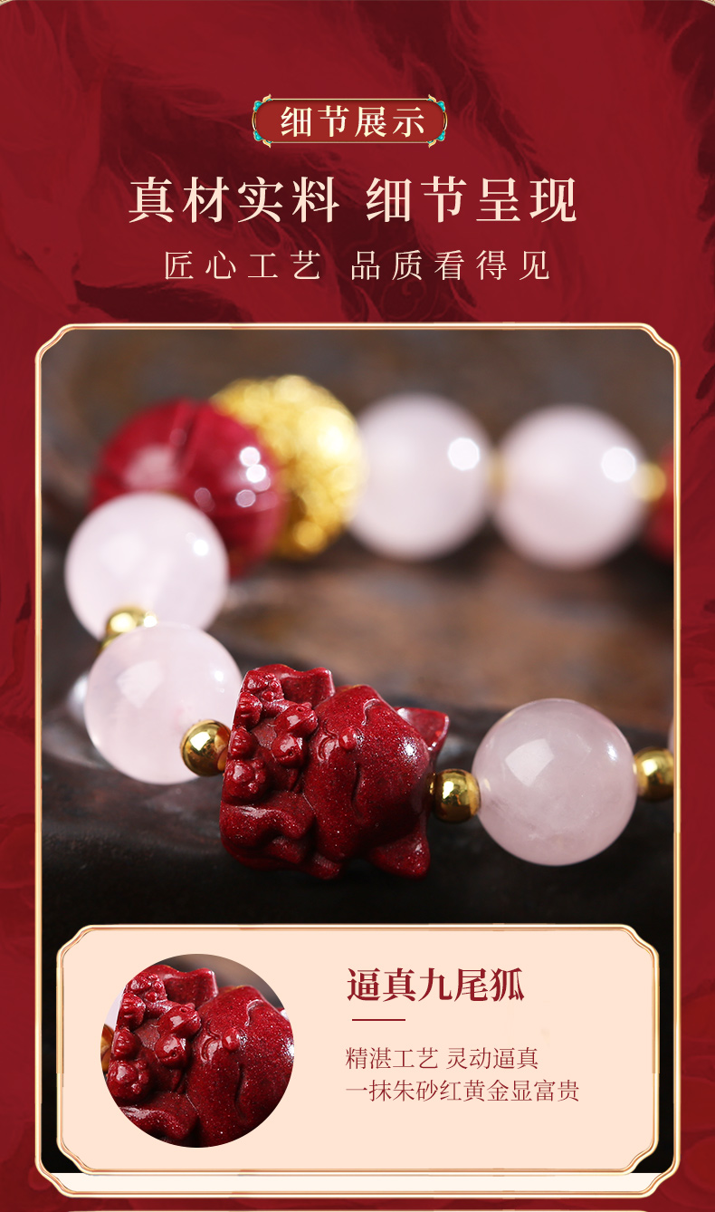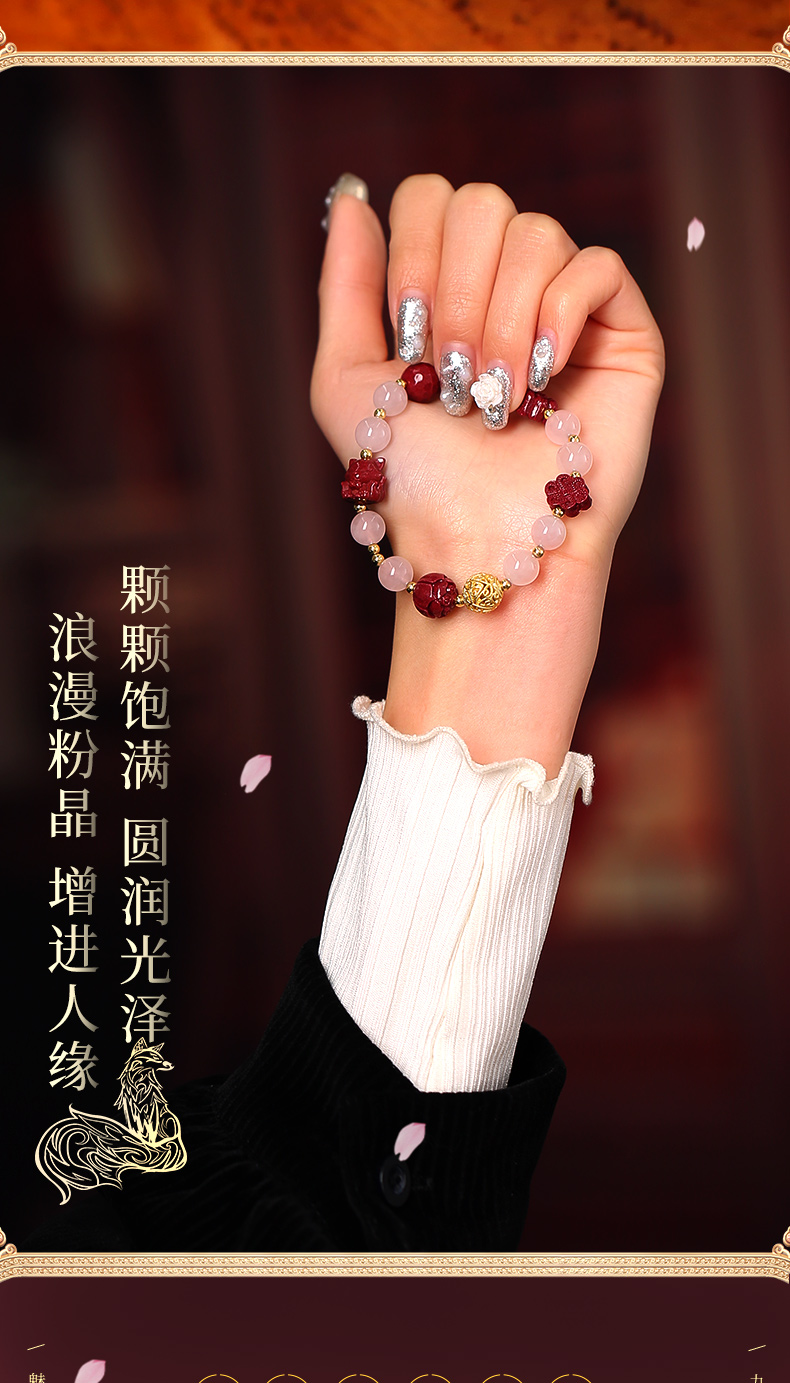 灵机生活馆桃花粉水晶手链水晶手串九尾狐朱砂手串