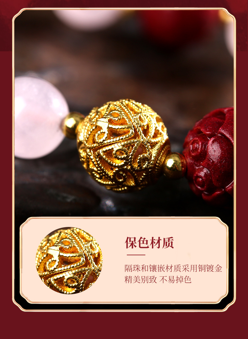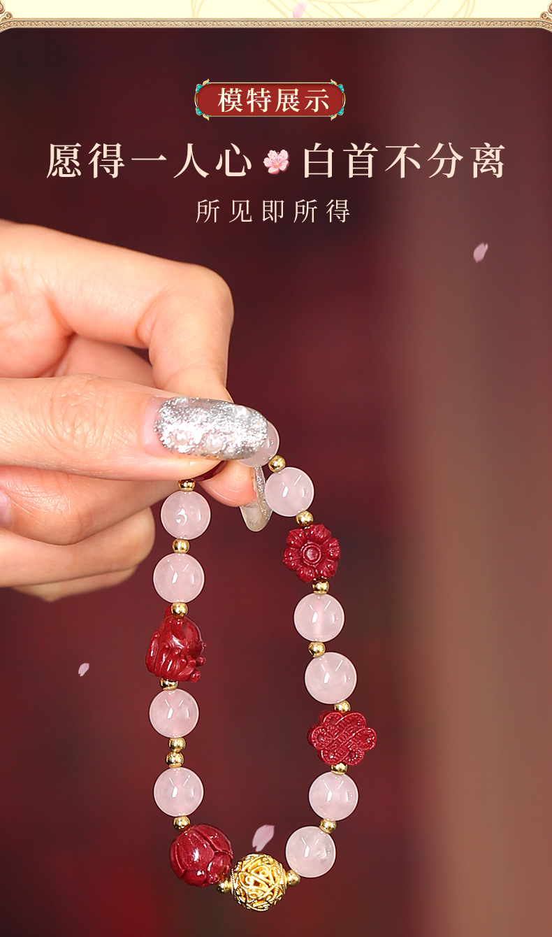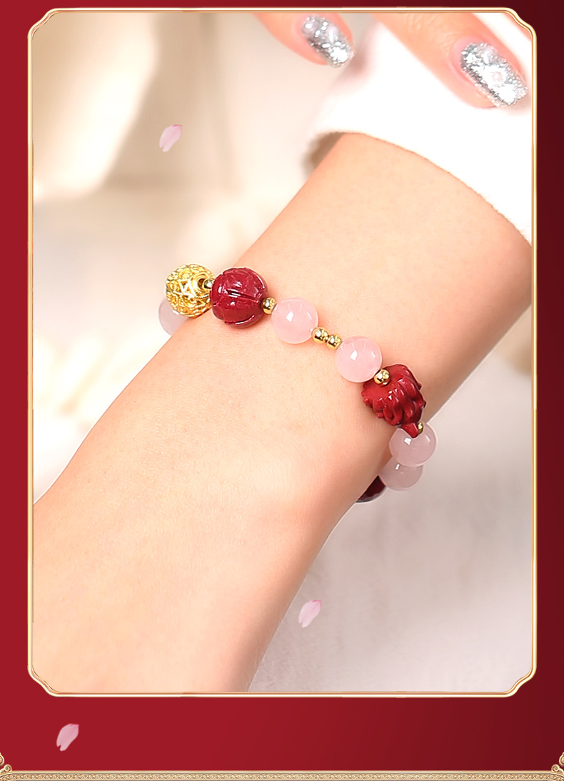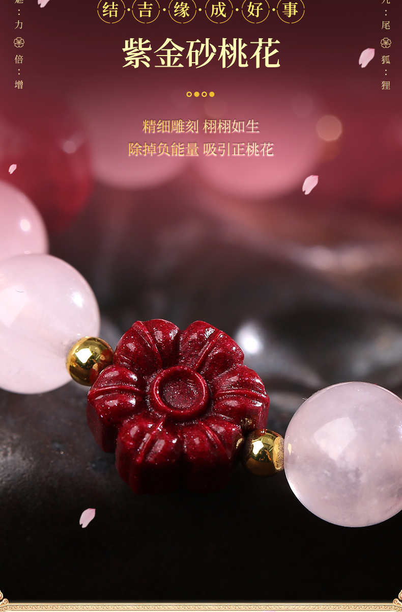 灵机生活馆桃花粉水晶手链水晶手串九尾狐朱砂手串