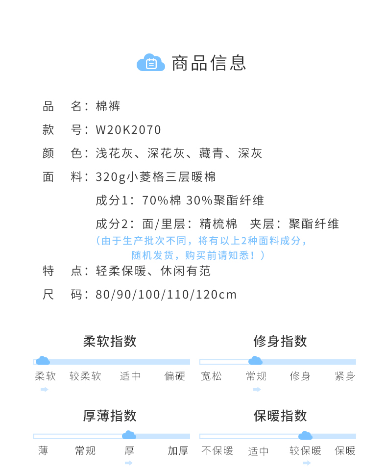 春秋新品男童婴幼裤装宝宝保暖棉裤儿童裤子休闲长裤W20K2070