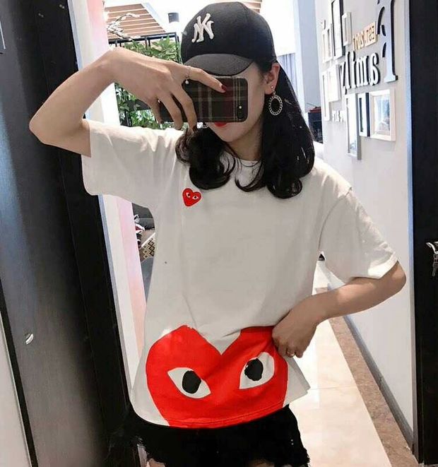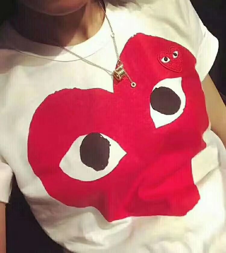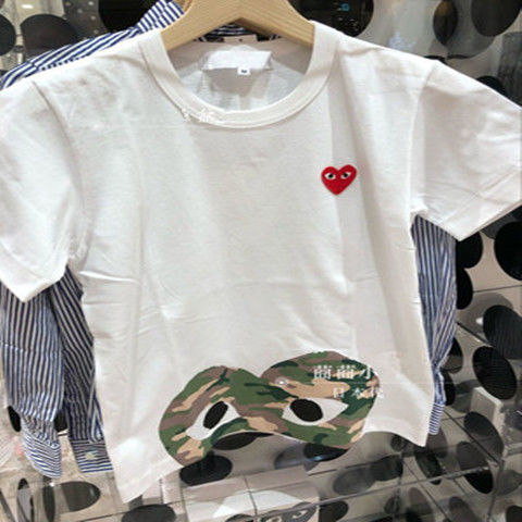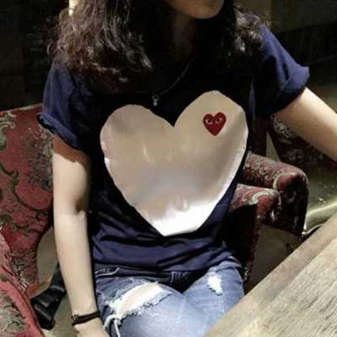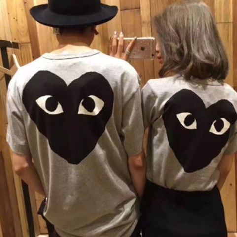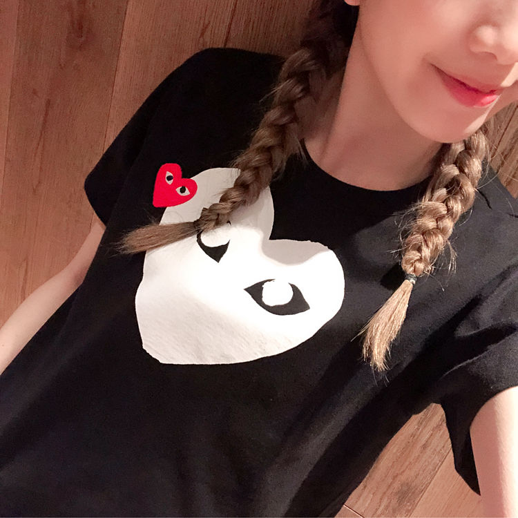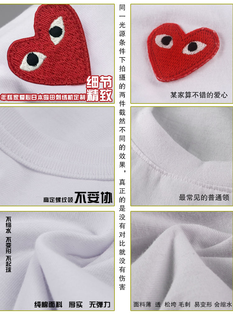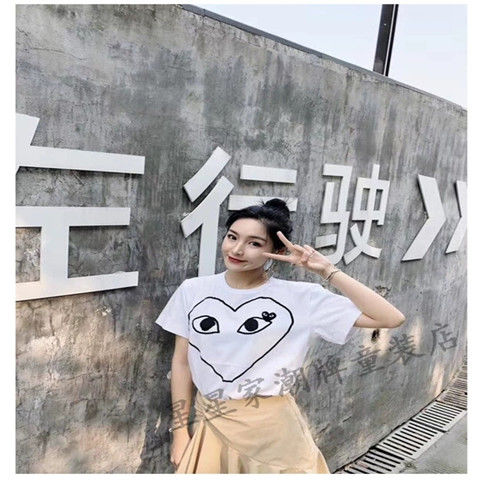 川久潮牌T恤play女明星同款爱心刺绣保龄纯棉短袖男情侣装亲子装