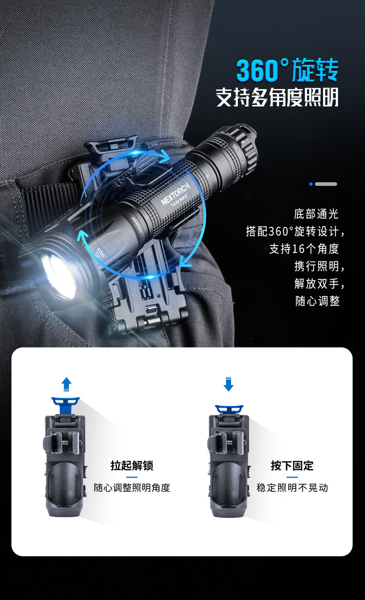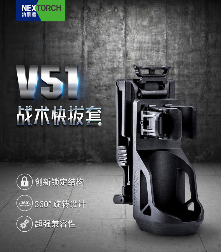 纳丽德(NEXTORCH)V51战术快拔电筒套360度旋转可锁定腰部便携通用夹