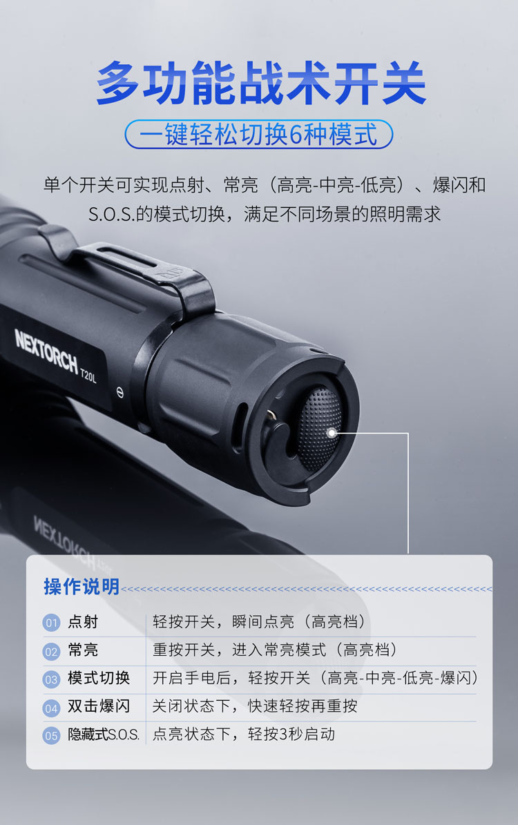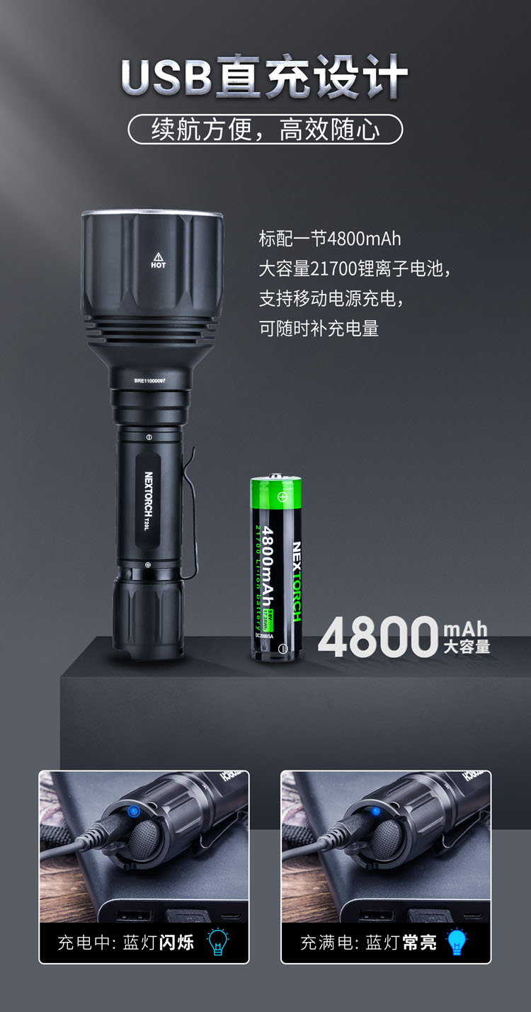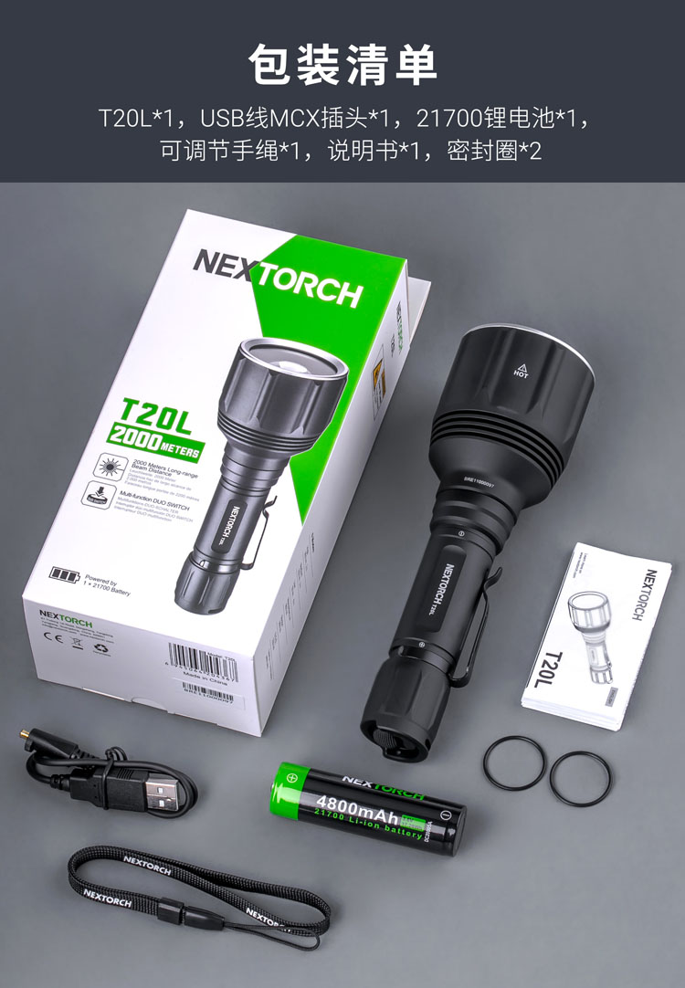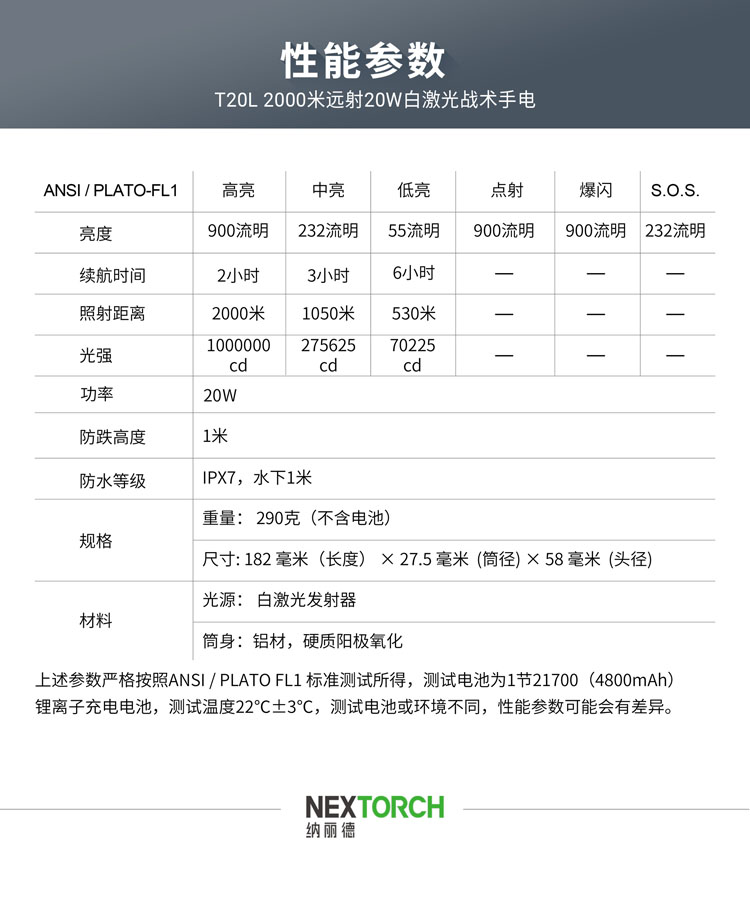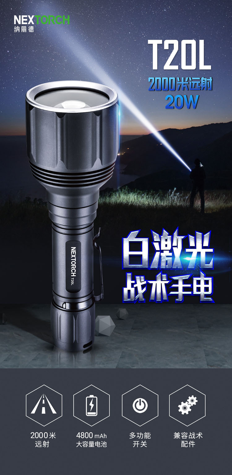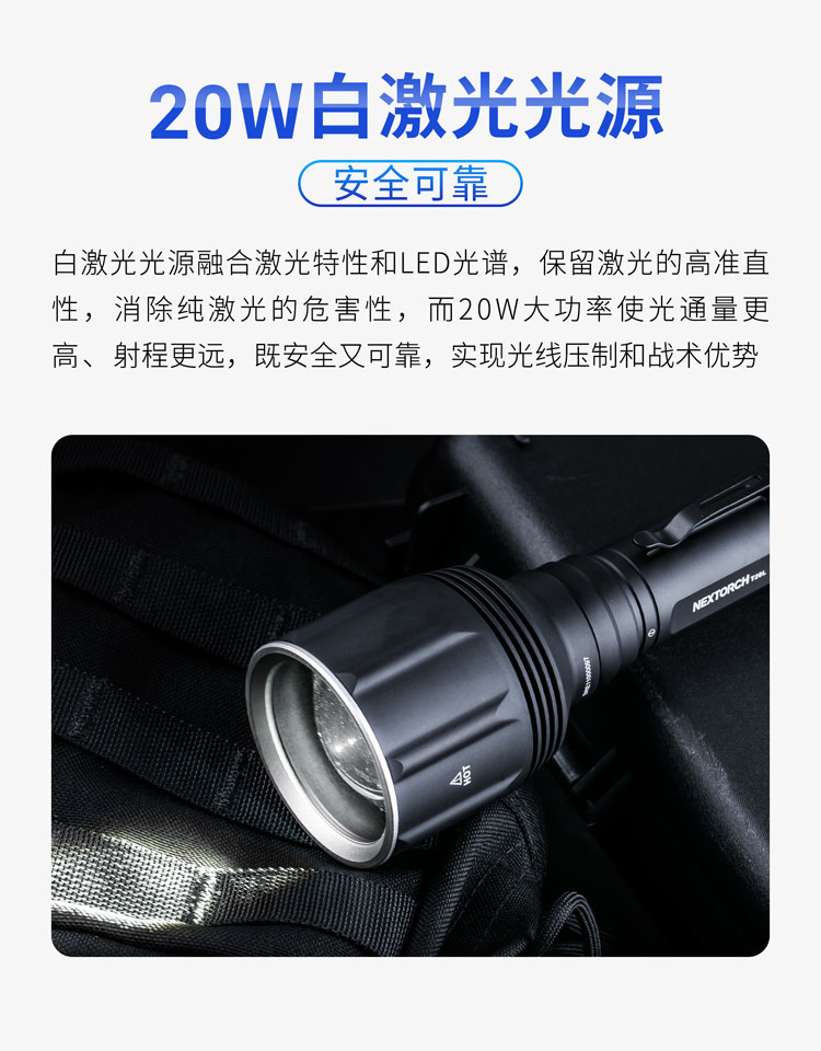 纳丽德(NEXTORCH)T20L白激光手电筒战术超亮聚光手电户外照明巡逻探照灯
