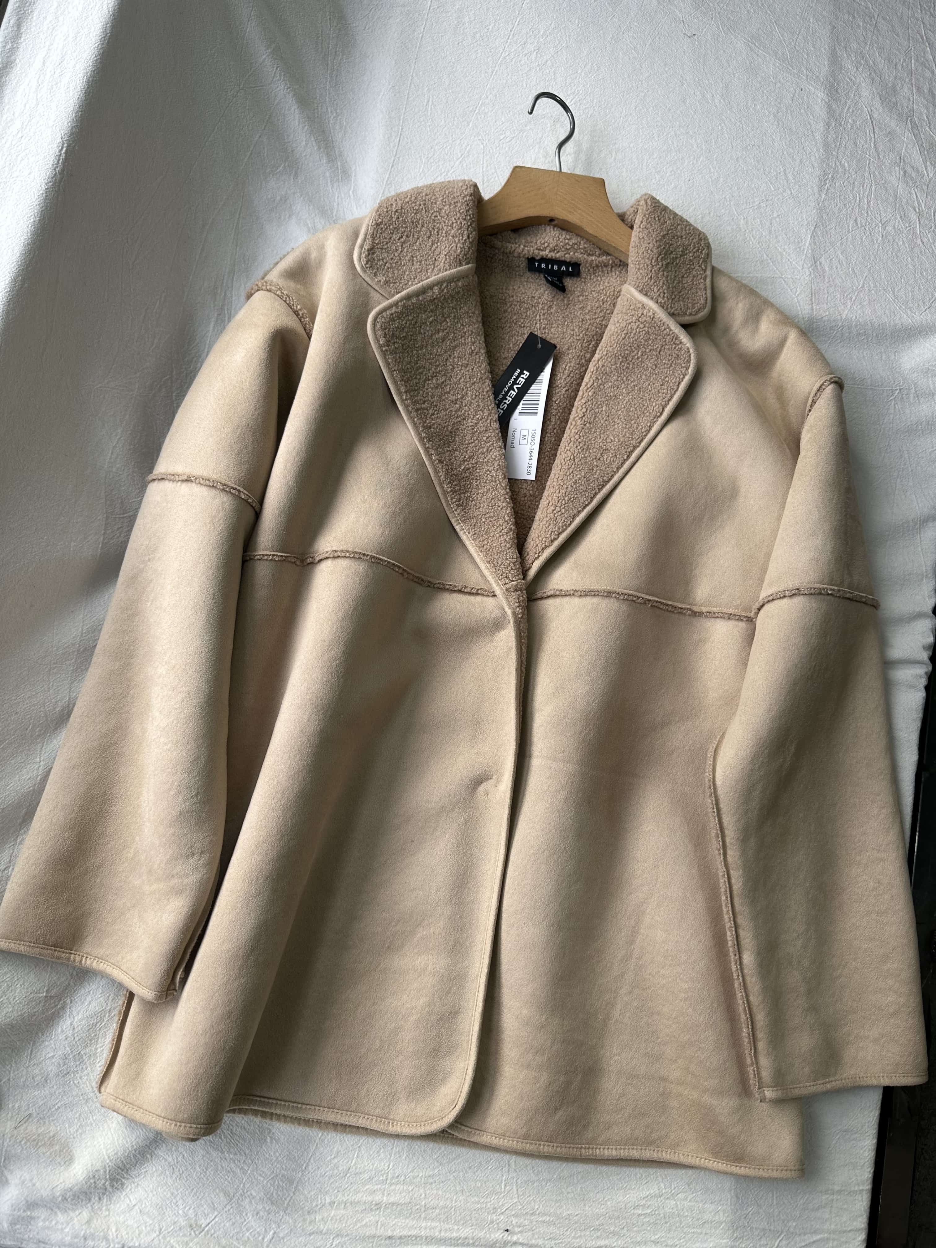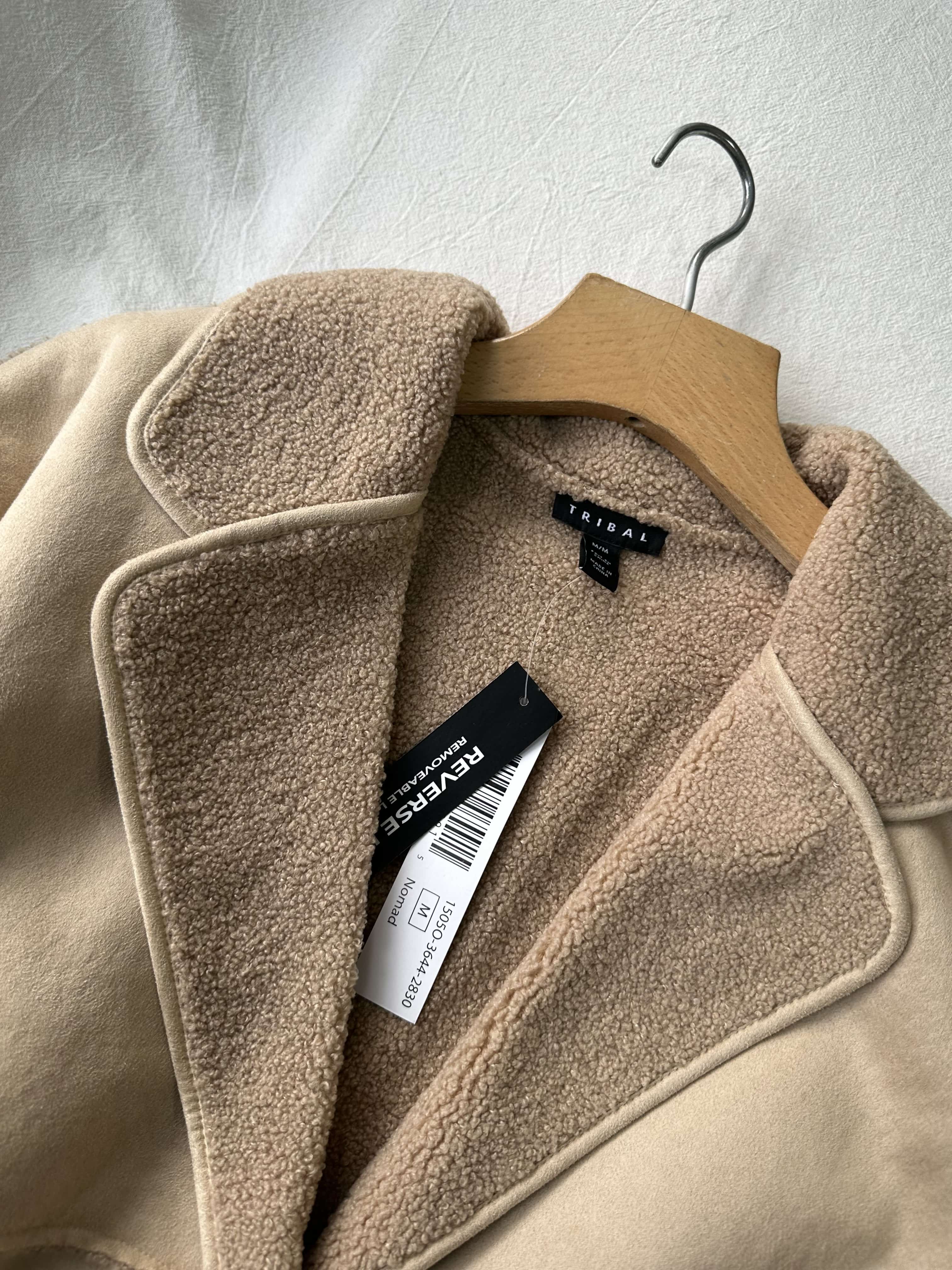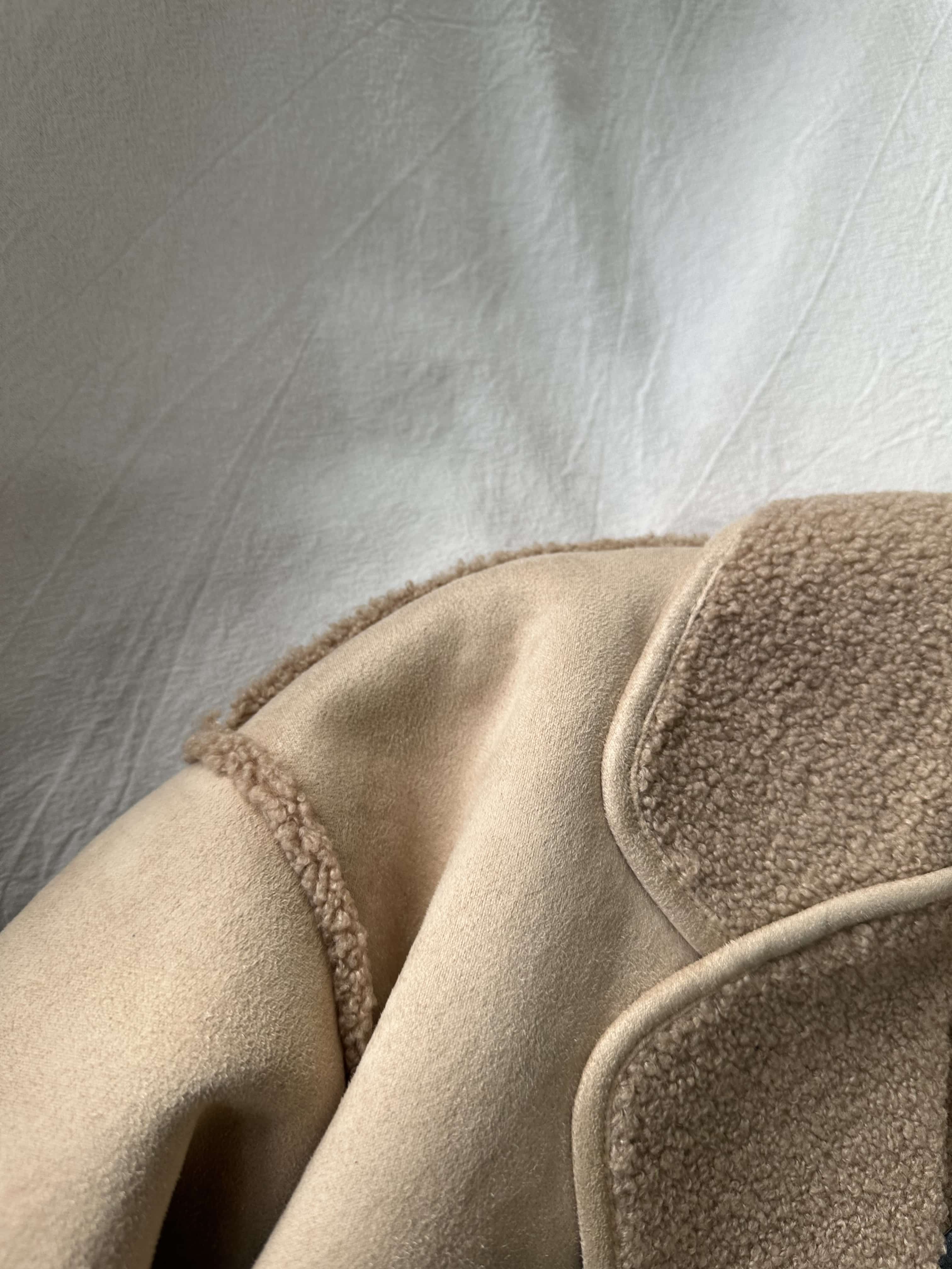 贝壳三 气质通勤翻领内里加绒外套仿羊羔毛保暖拼接夹克C120522