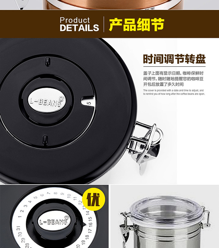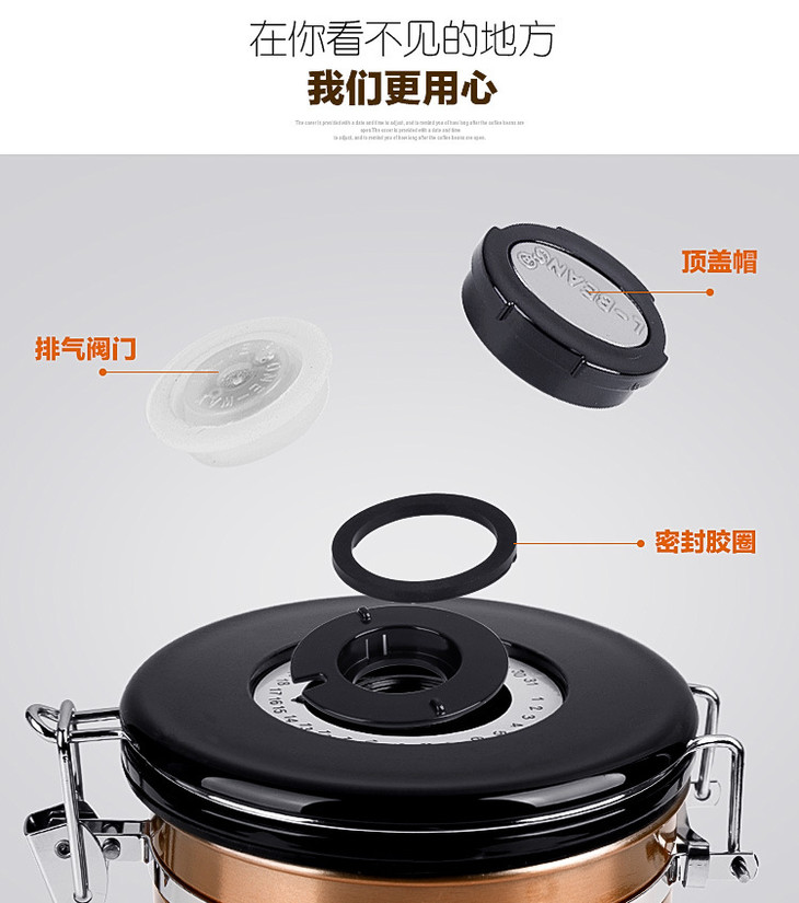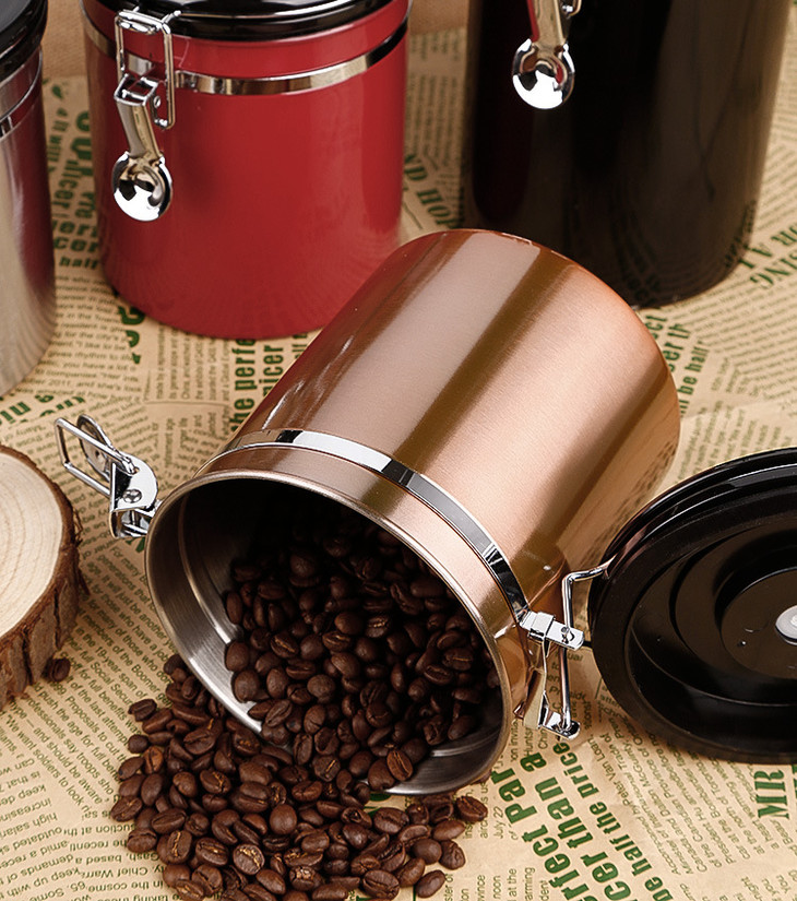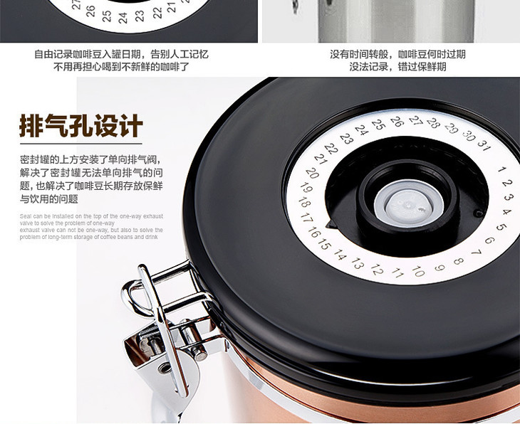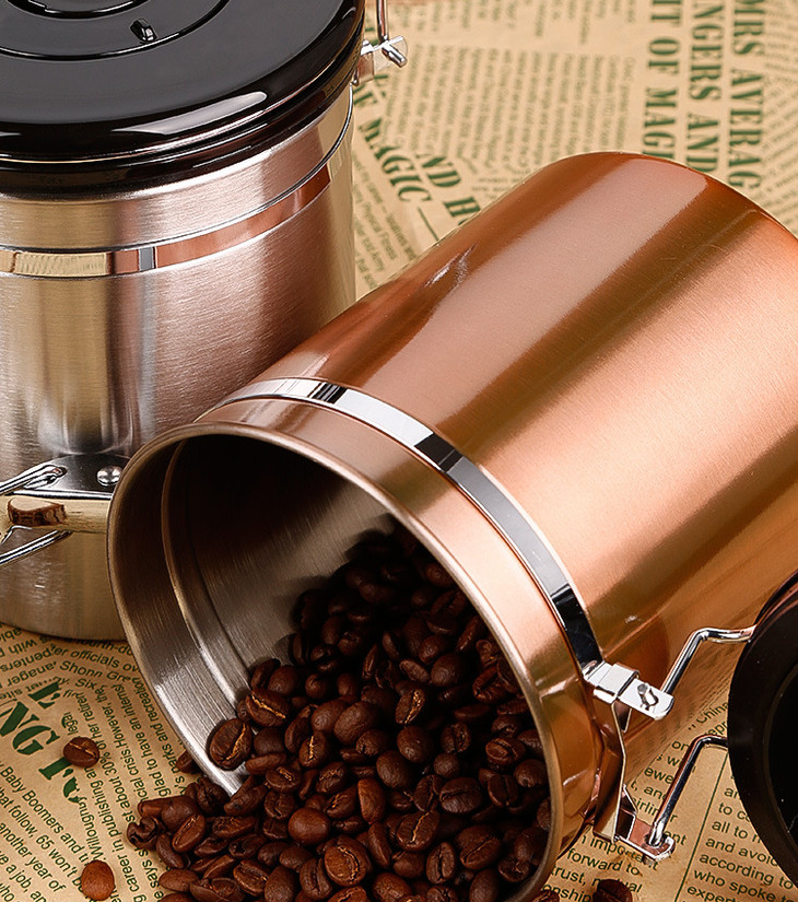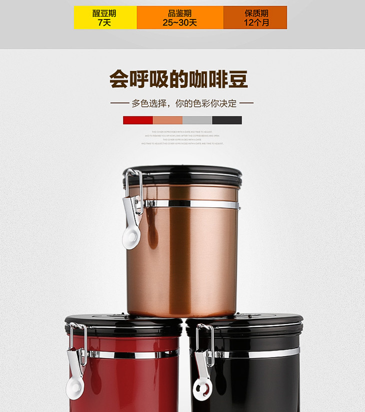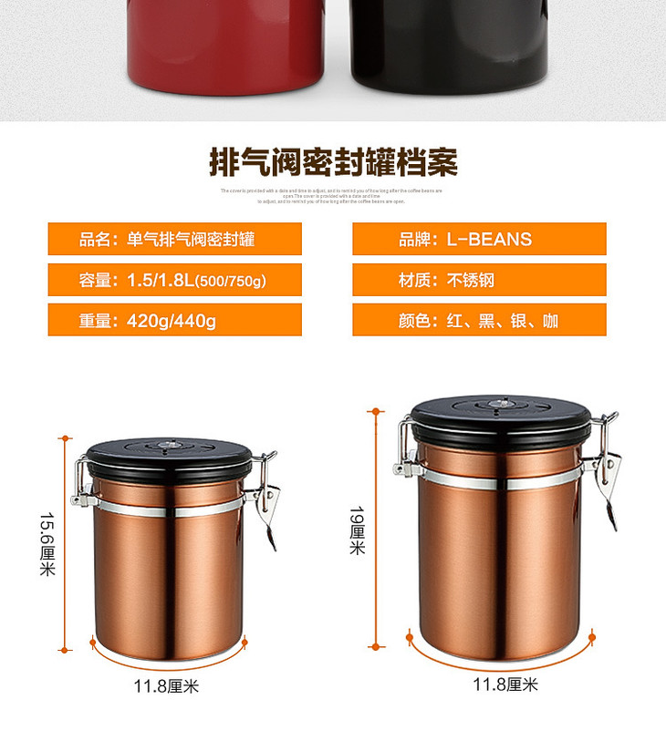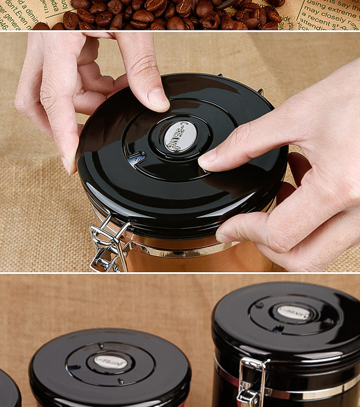 【厨房配件】带排气阀304不锈钢密封罐咖啡豆储存罐干果茶叶罐