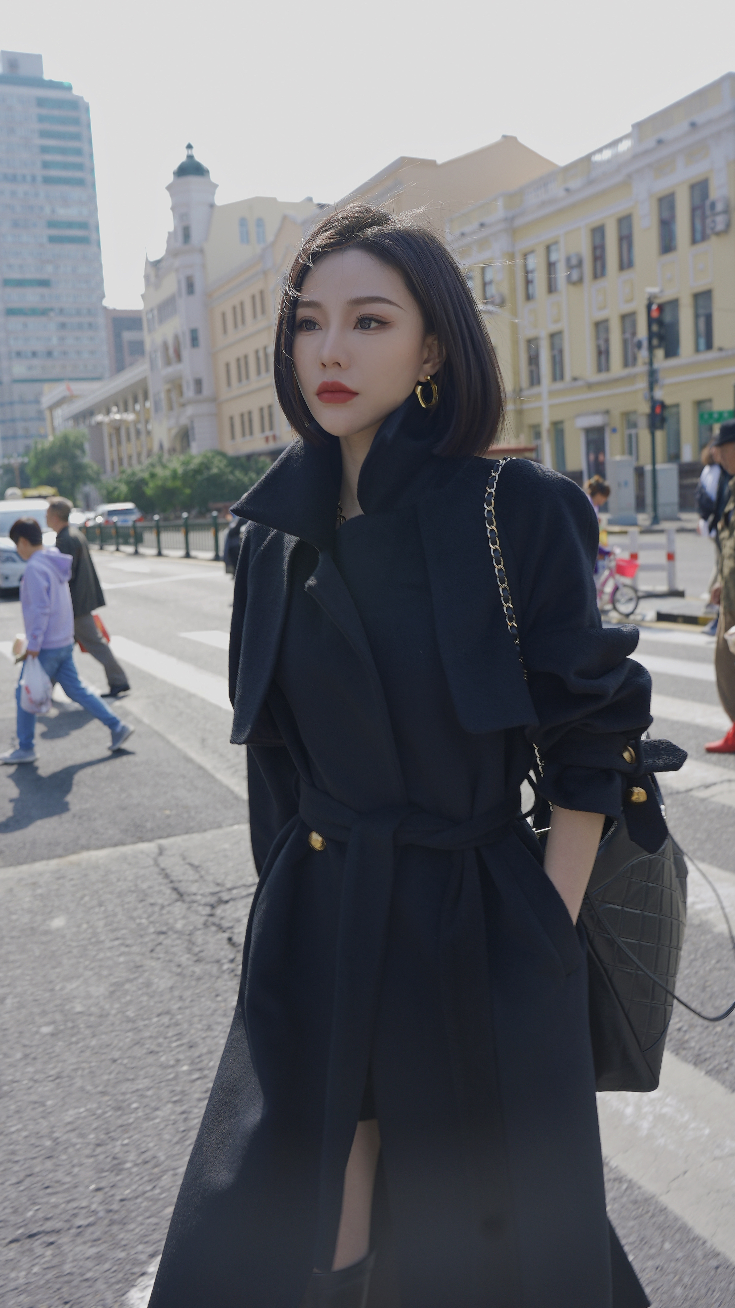 都市力量、热力感穿搭、至简新潮、大翻领英伦风长款大衣2306014