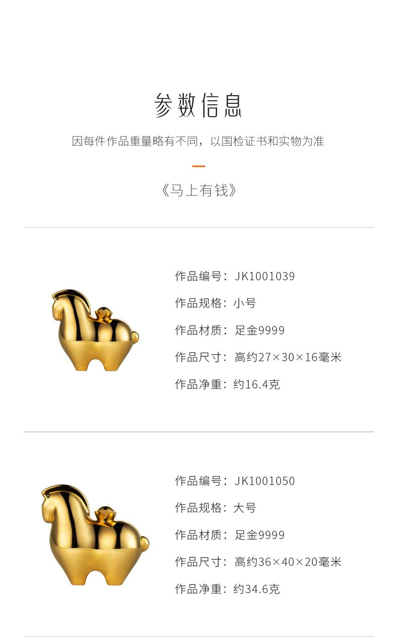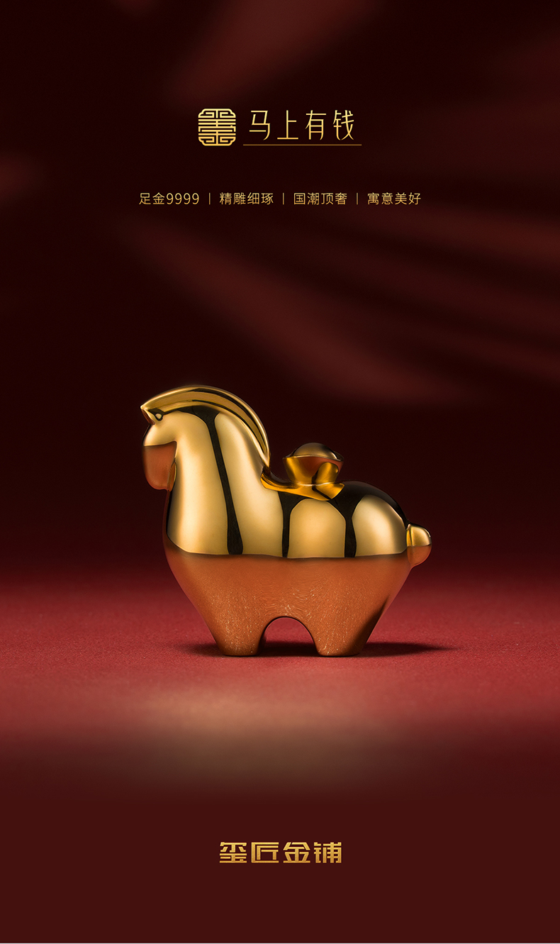 玺匠金铺《马上有钱》足金9999 生肖马挂件吉祥物 新年礼物